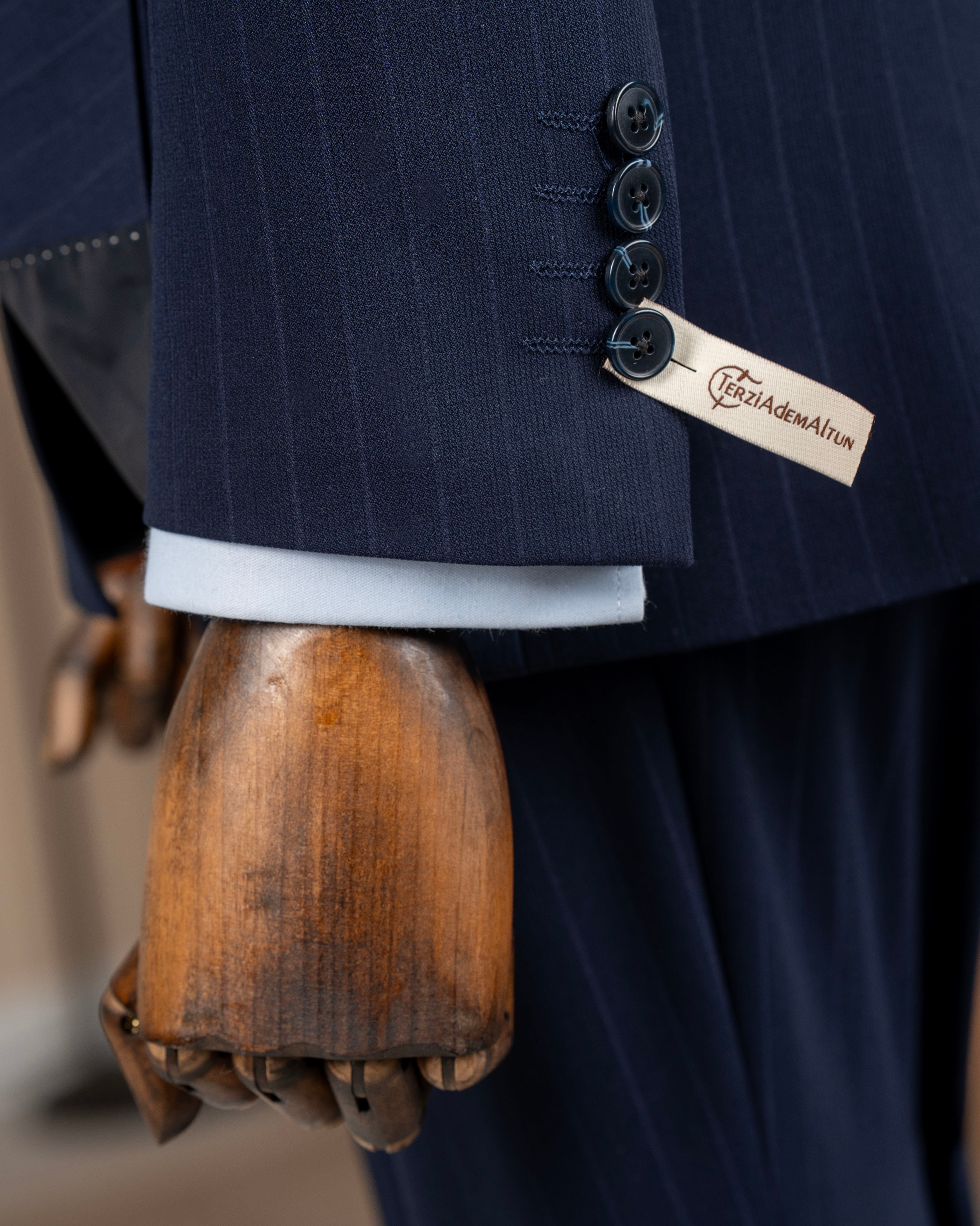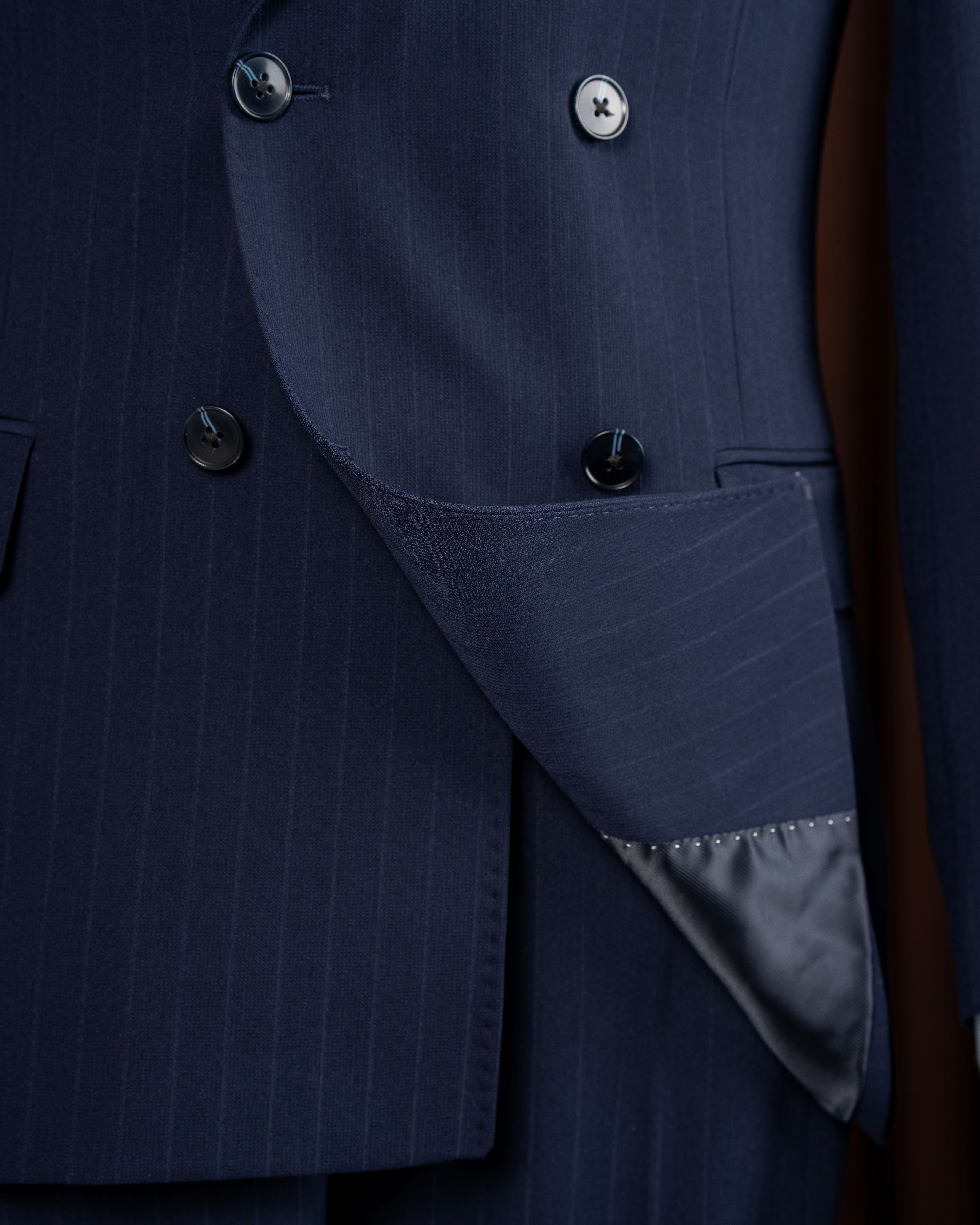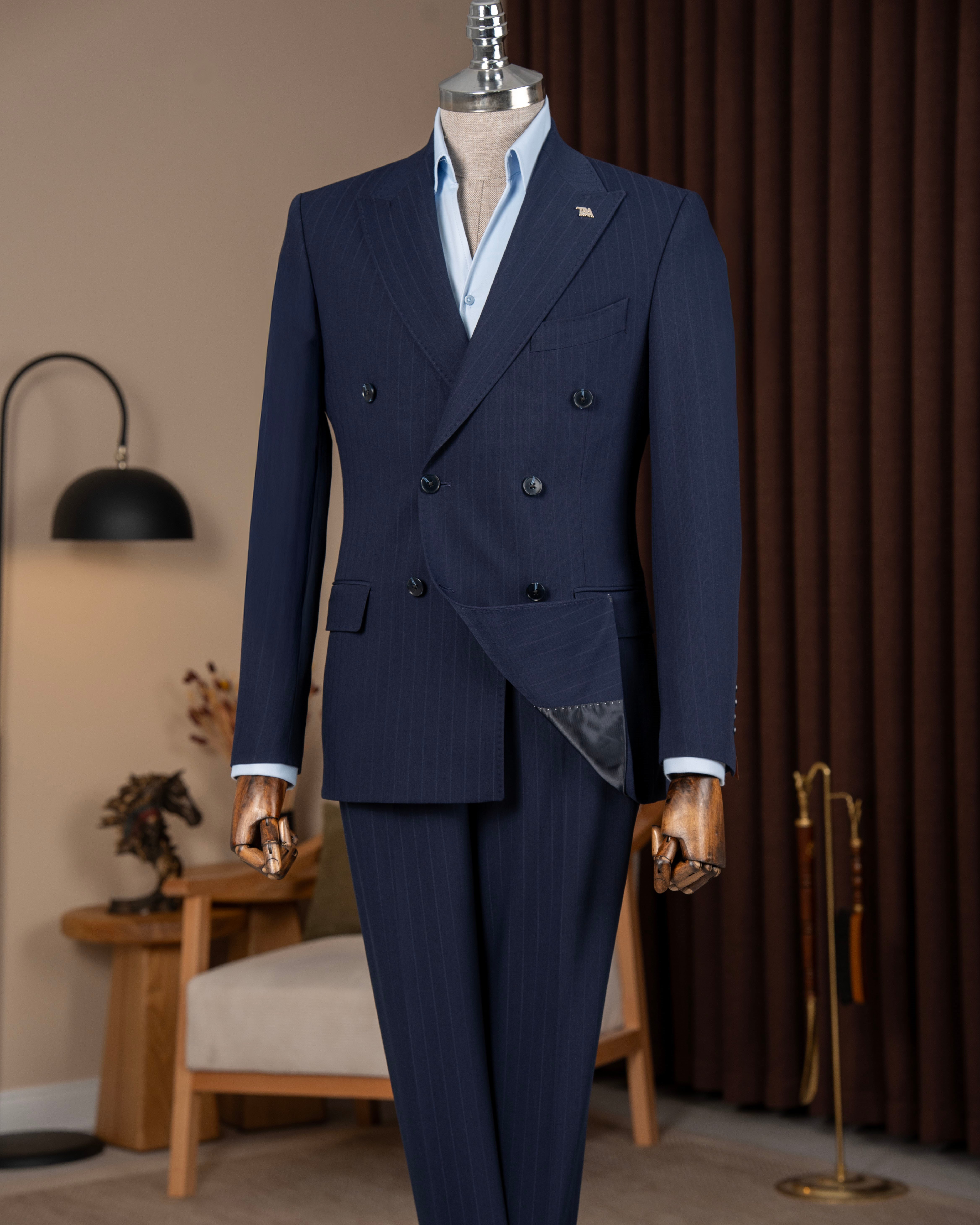 İtalyan stil erkek kruvaze sivri yaka ceket pantolon takım elbise lacivert T20062-02