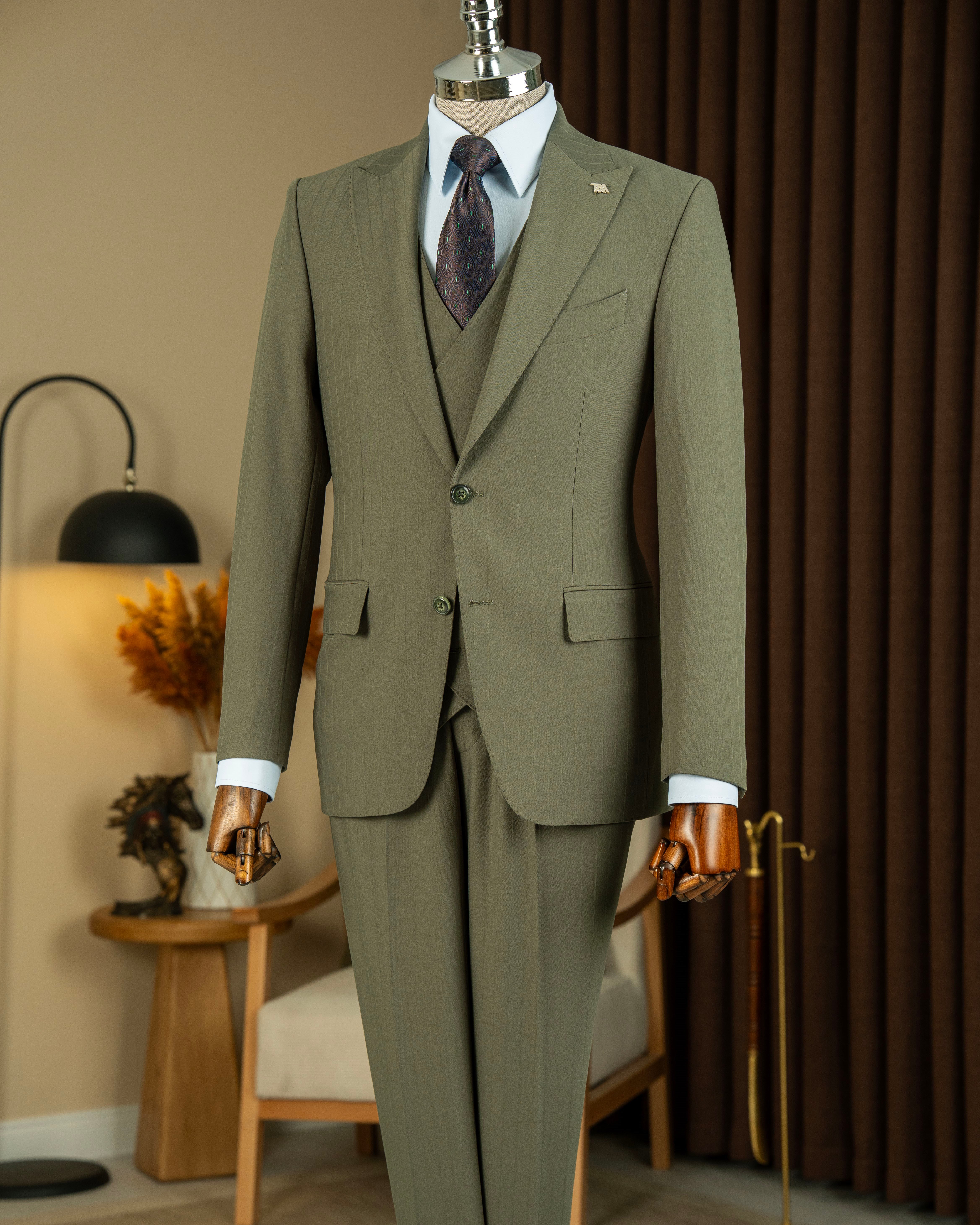 İtalyan stil erkek sivri yaka ceket yelek pantolon takım elbise yeşil T20068-28