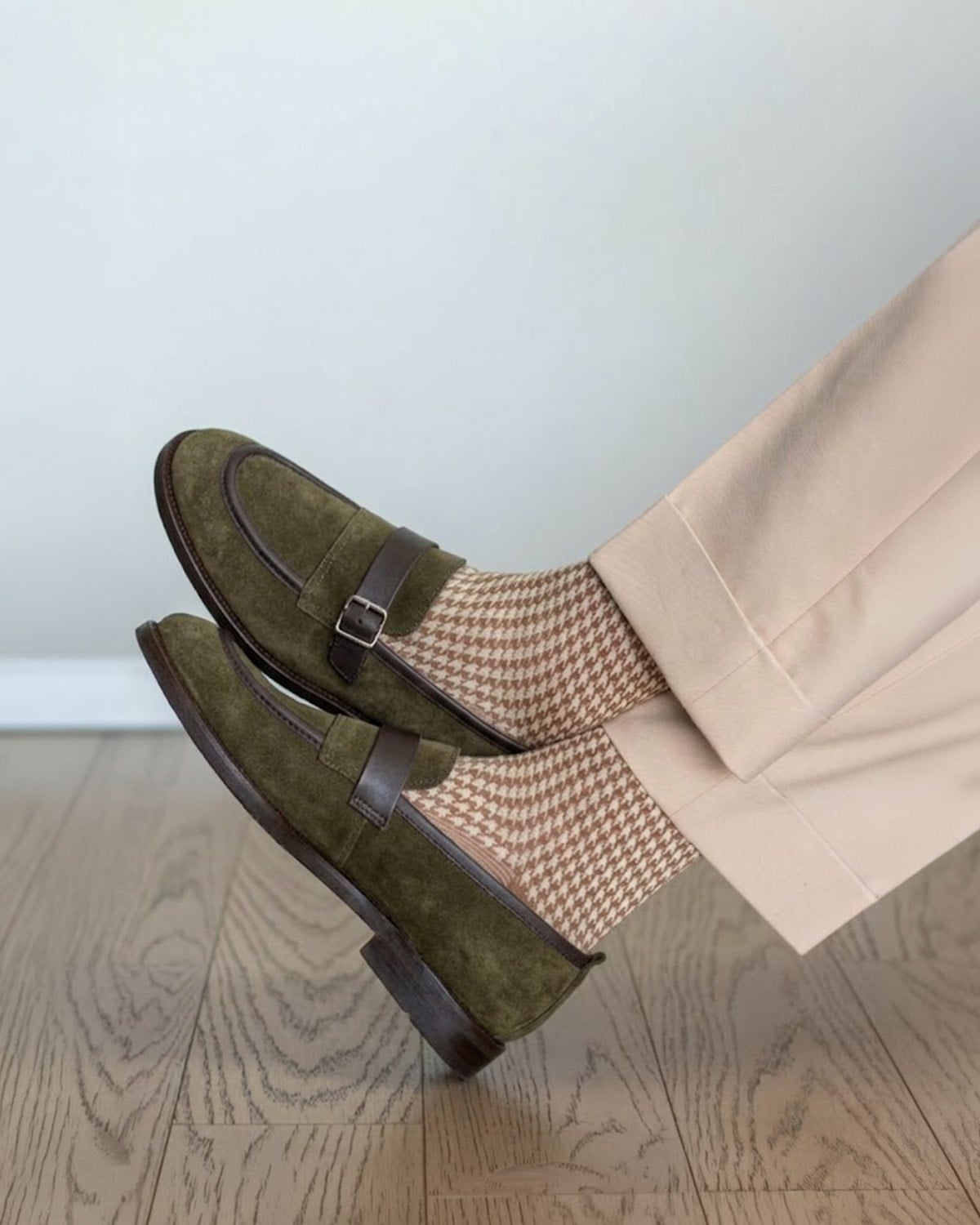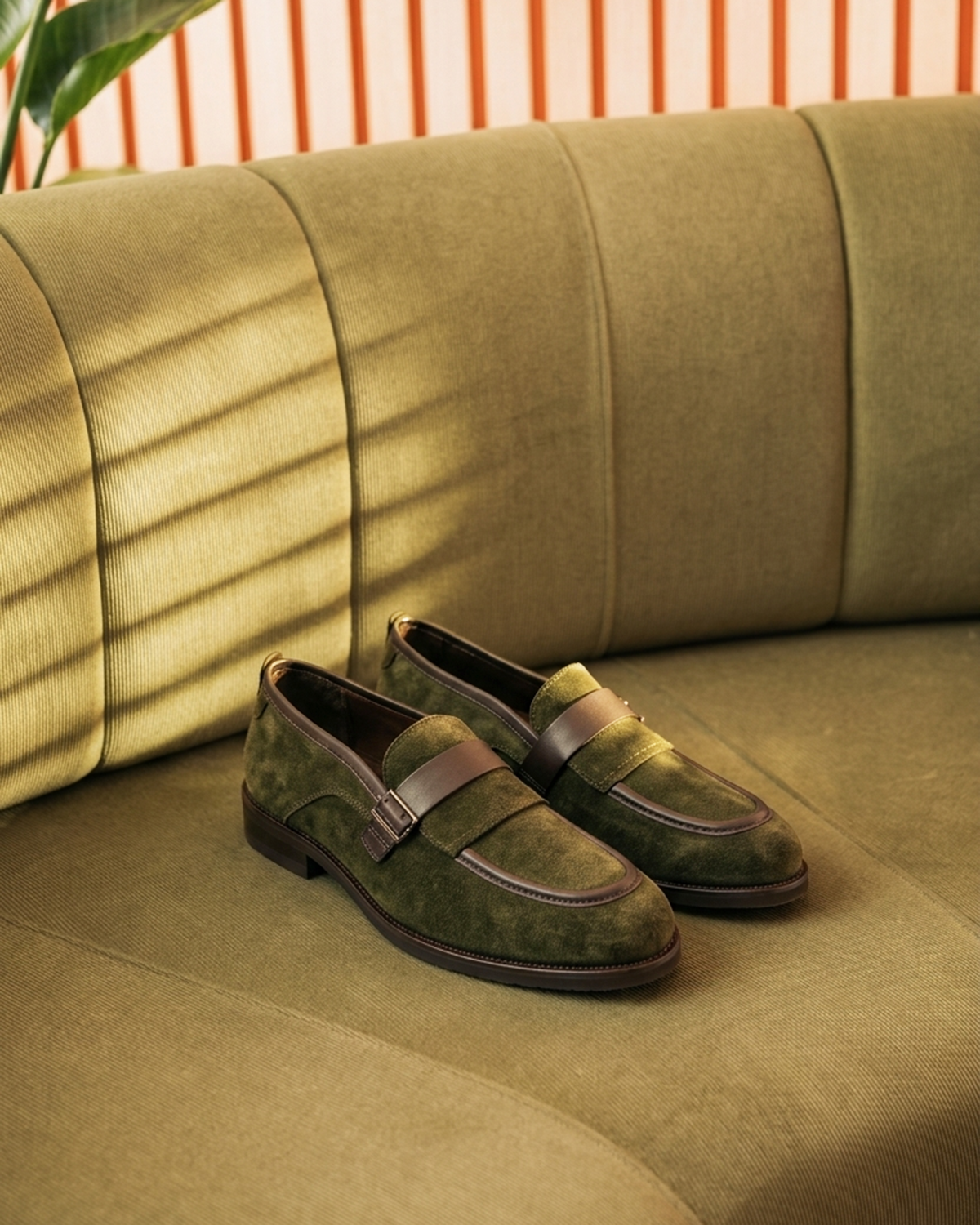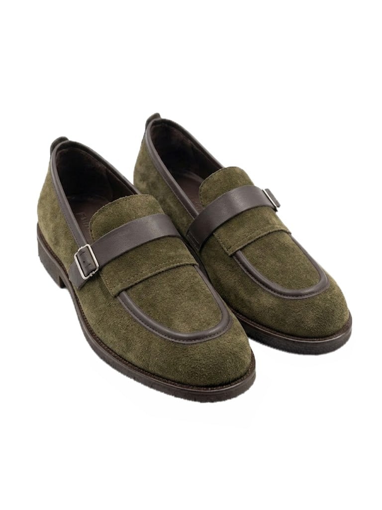 İtalyan stil iç dış naturel deri süet antik tokalı erkek ayakkabı haki T15210-06