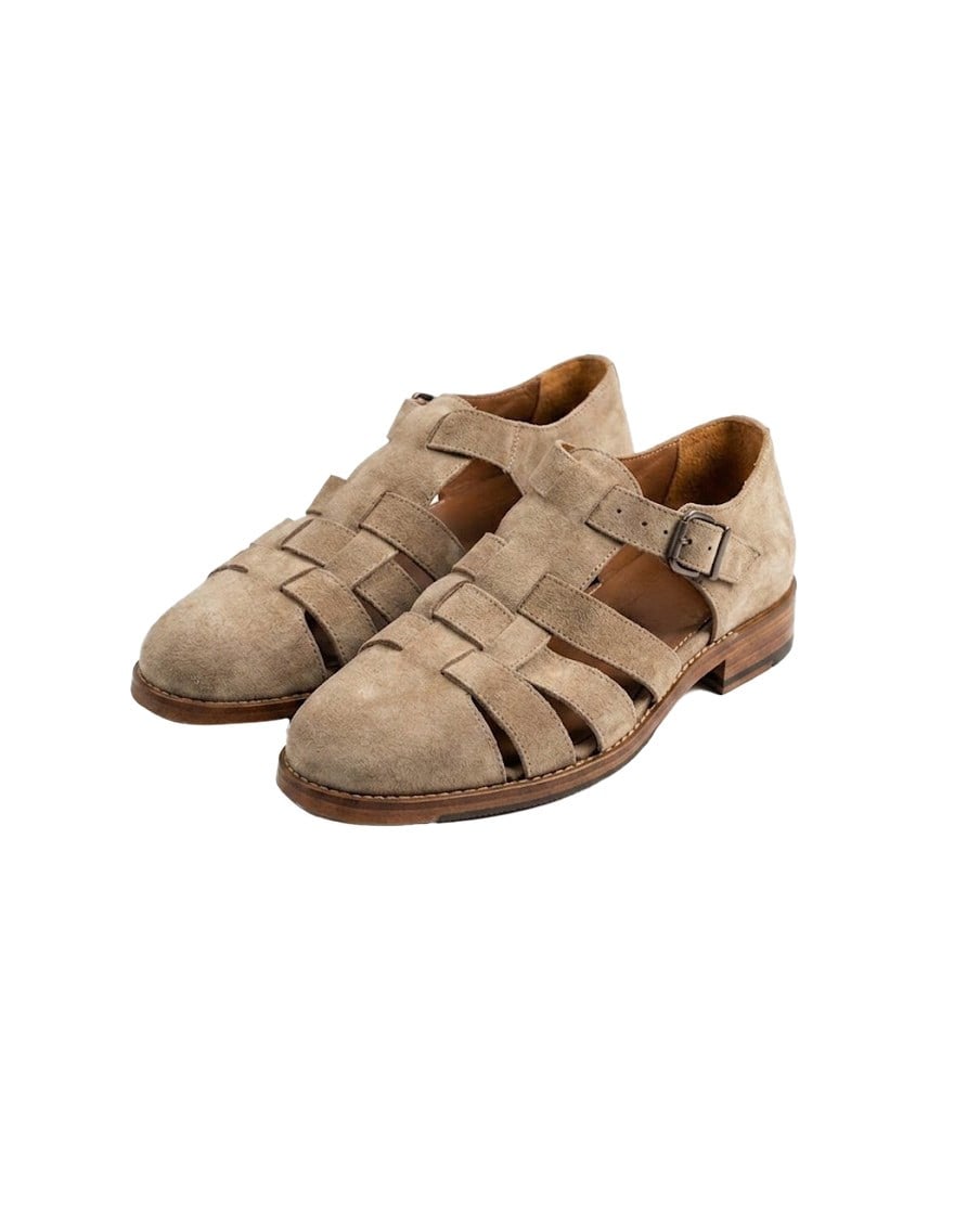 İtalyan stil iç dış naturel deri süet erkek sandalet bej T15214-09