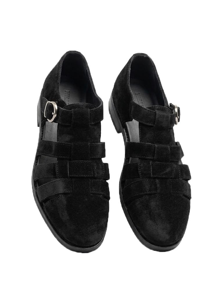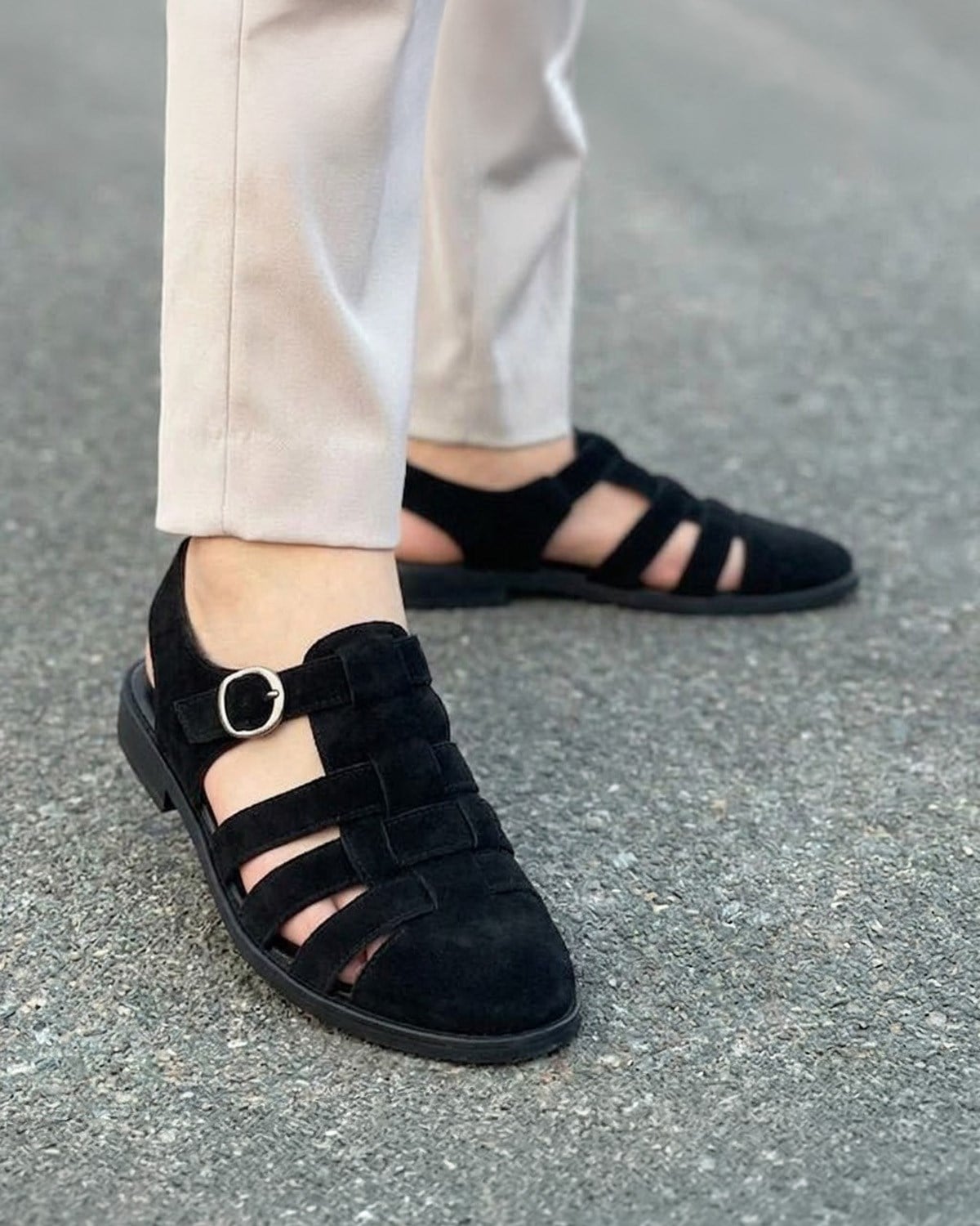 İtalyan stil iç dış naturel deri süet erkek sandalet siyah T15214-01