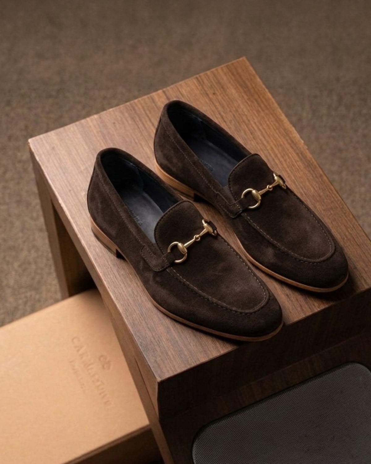 İtalyan stil iç dış naturel deri süet tokalı erkek ayakkabı kahverengi T15208-03