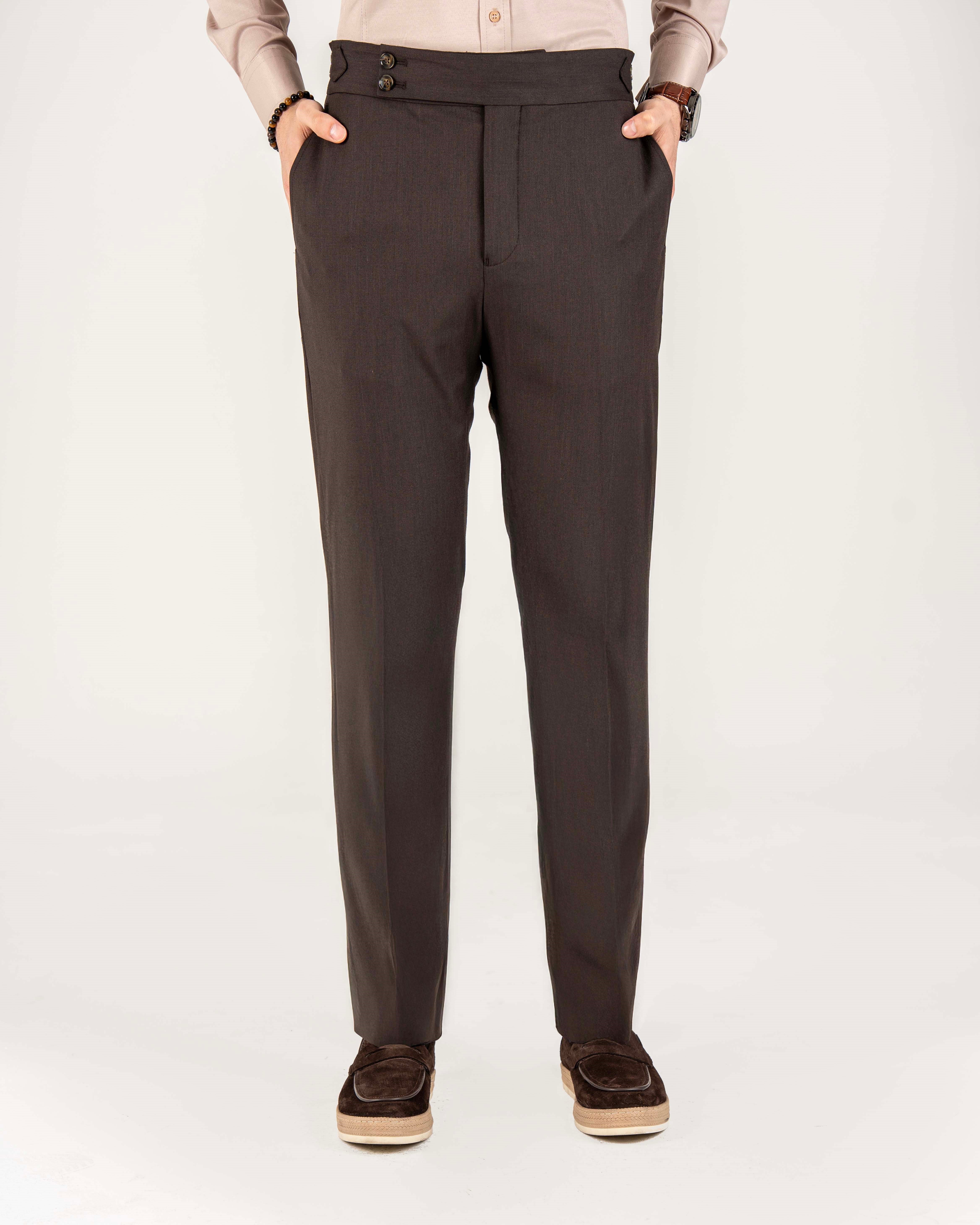 İtalyan stil slim fit bel detaylı erkek pantolon kahverengi T14564