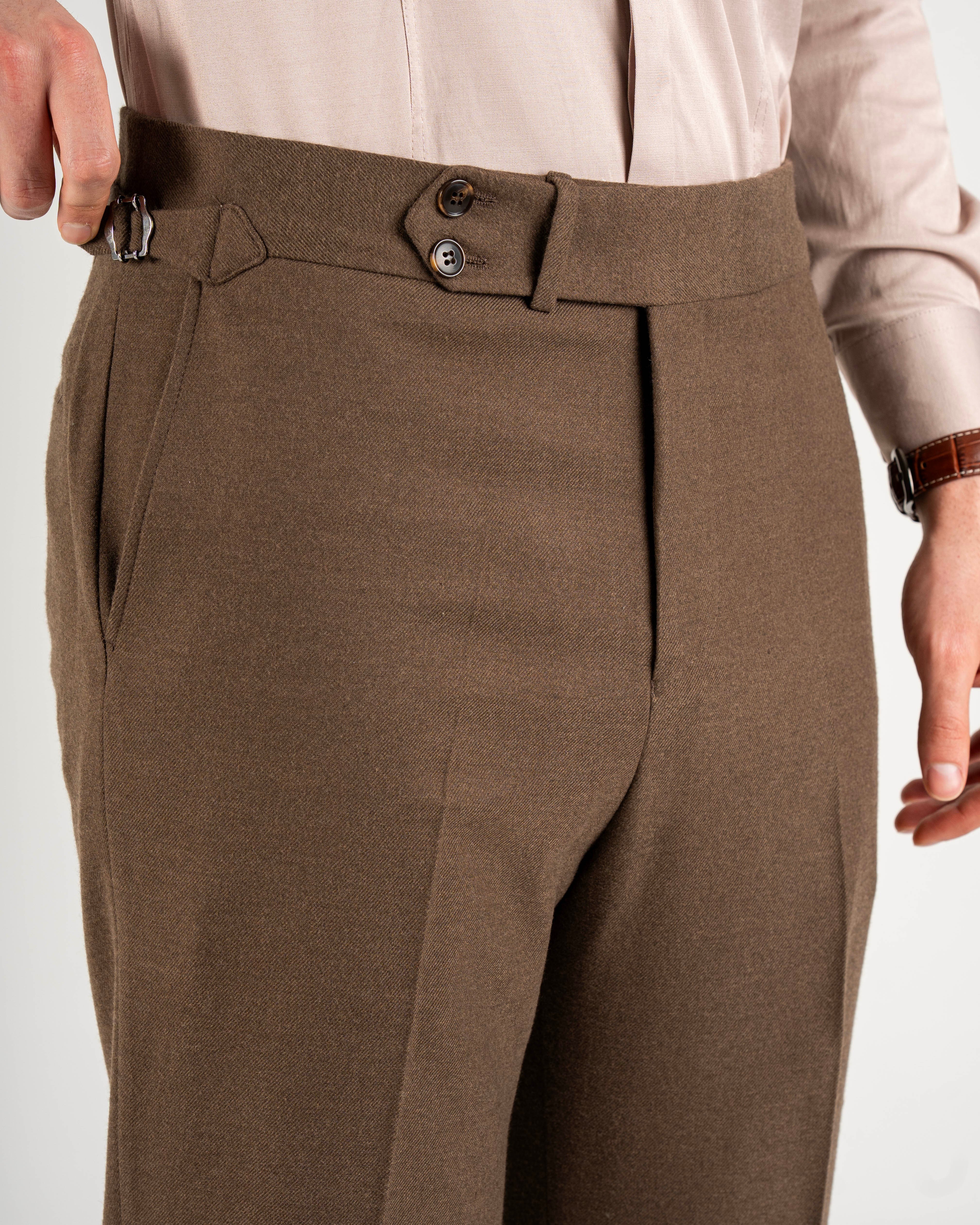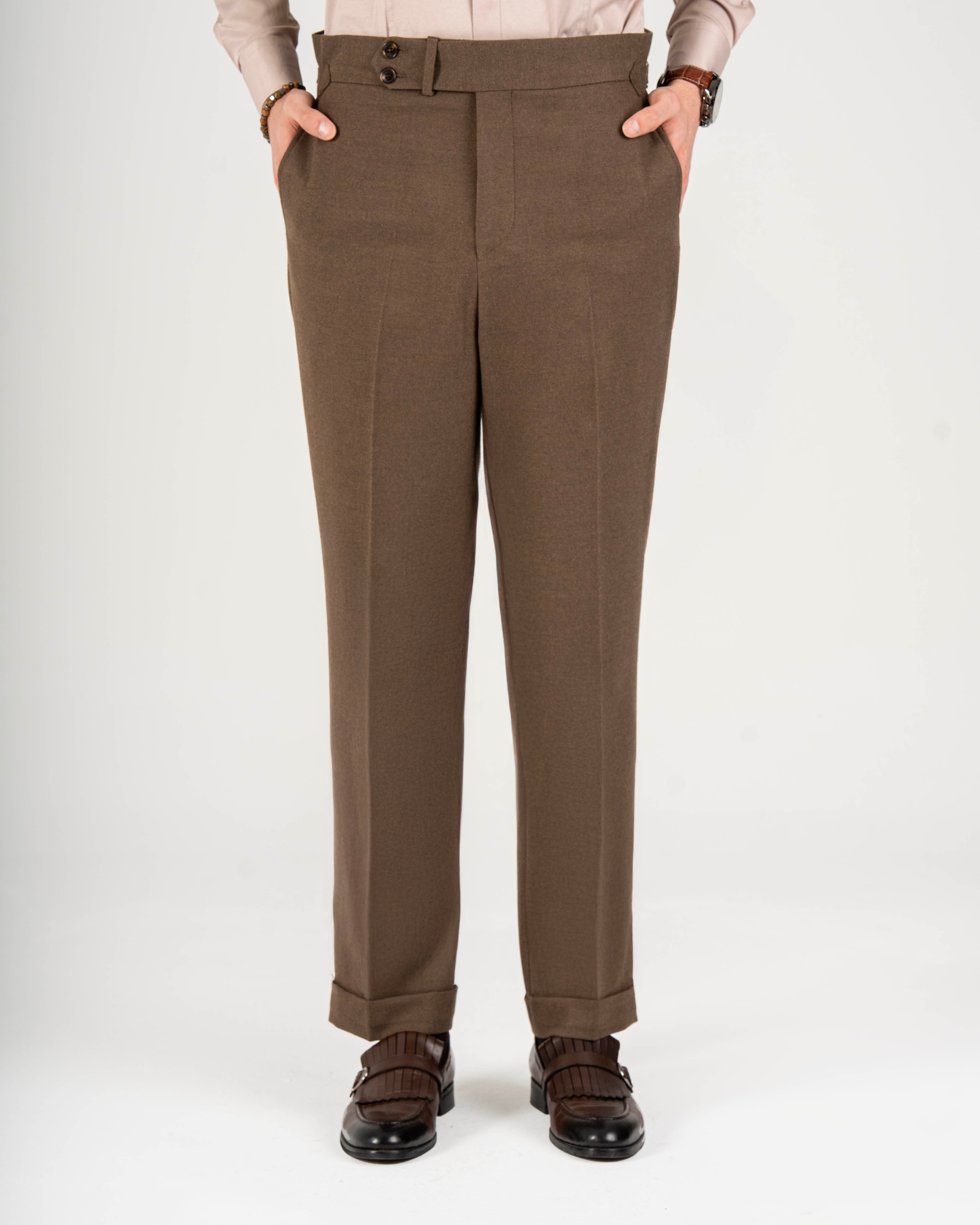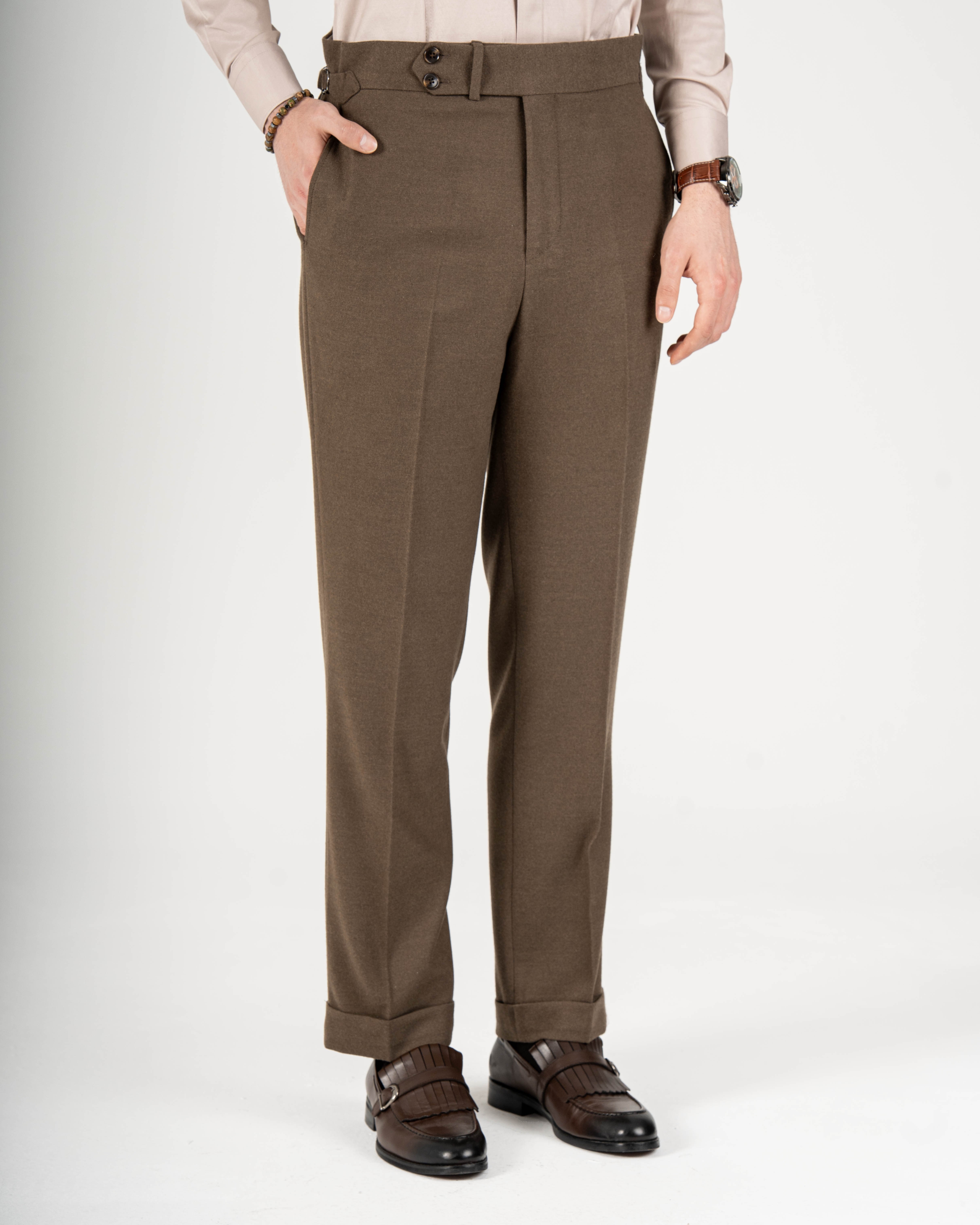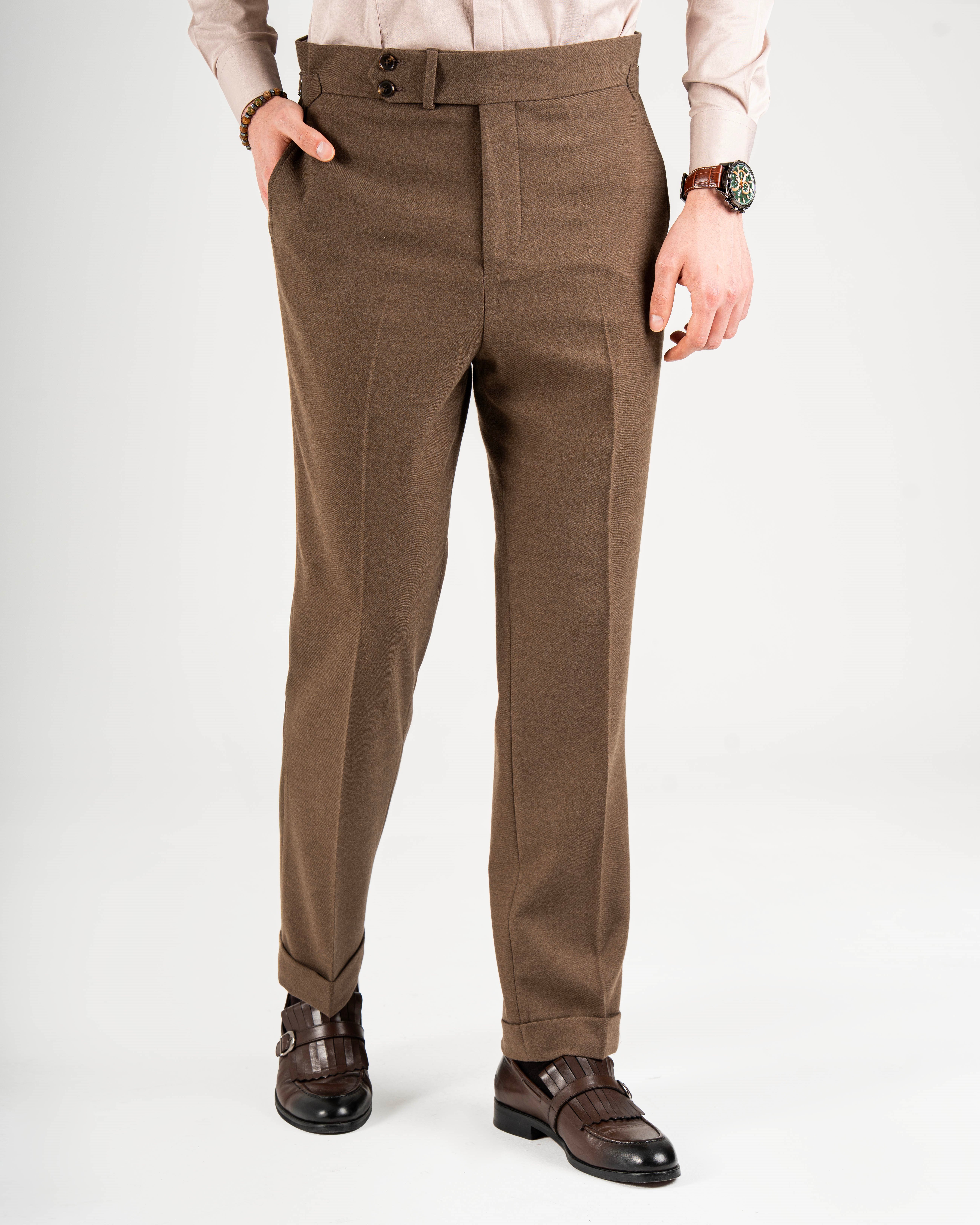 İtalyan stil slim fit bel detaylı erkek pantolon kahverengi T14823
