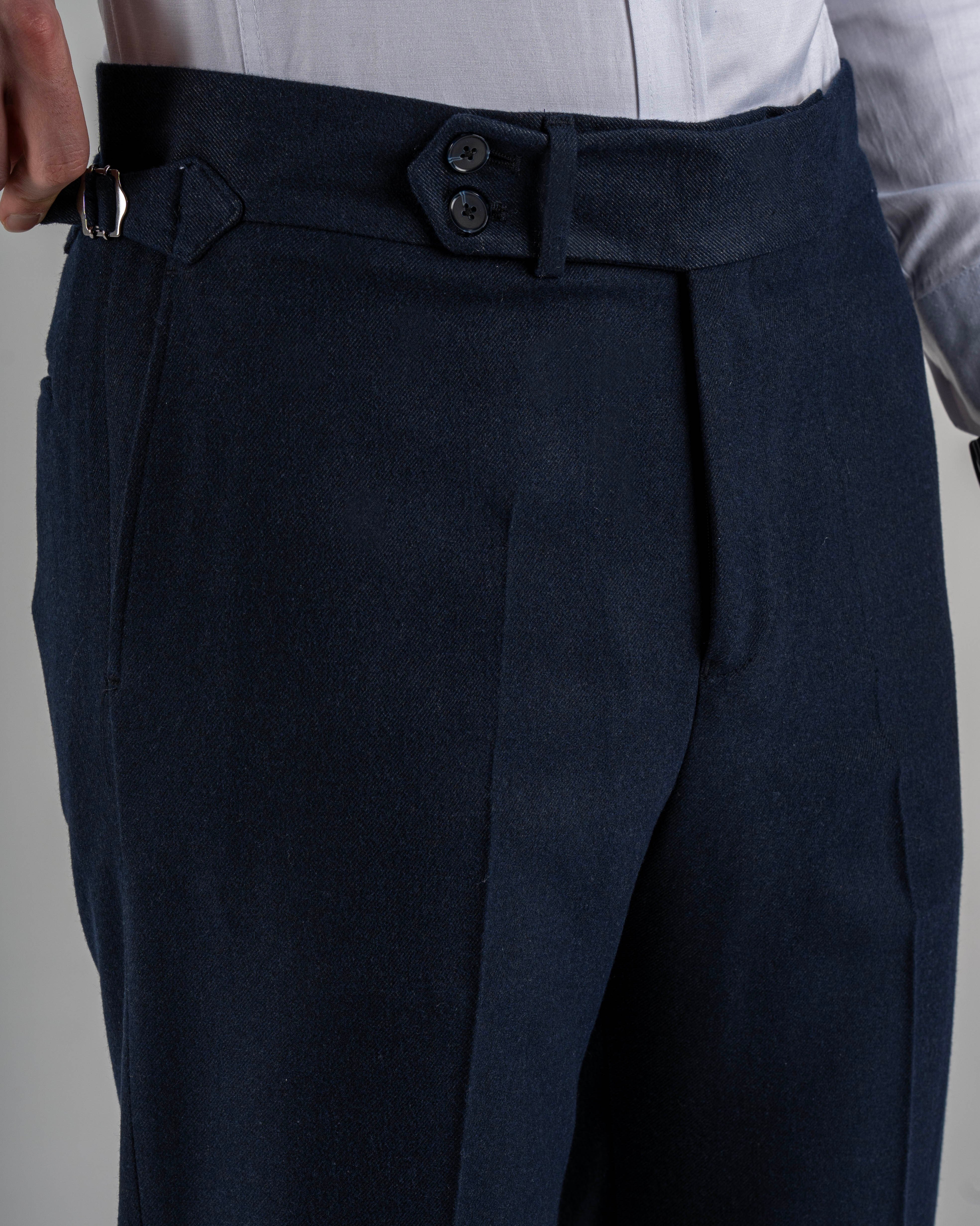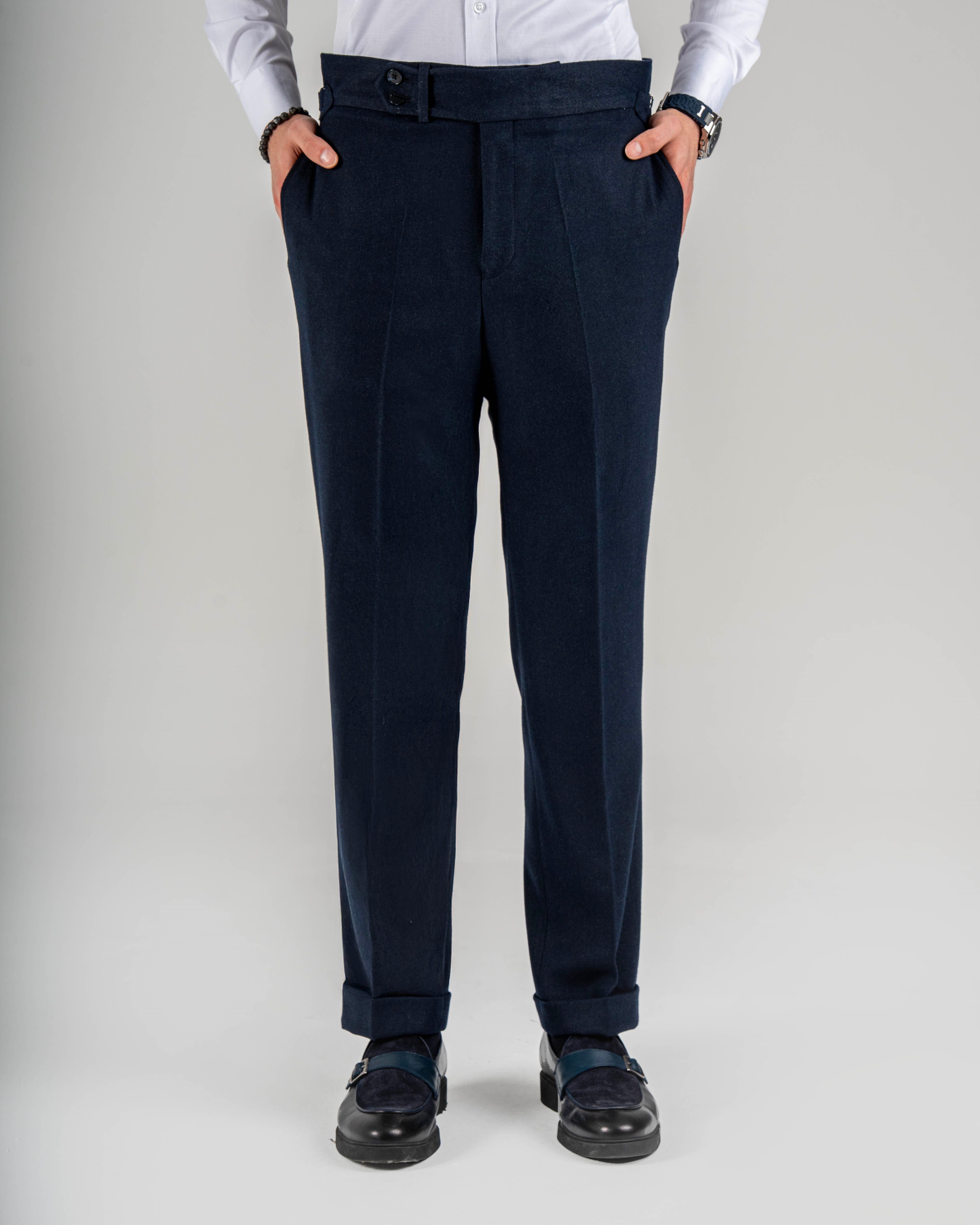 İtalyan stil slim fit bel detaylı erkek pantolon lacivert T14822