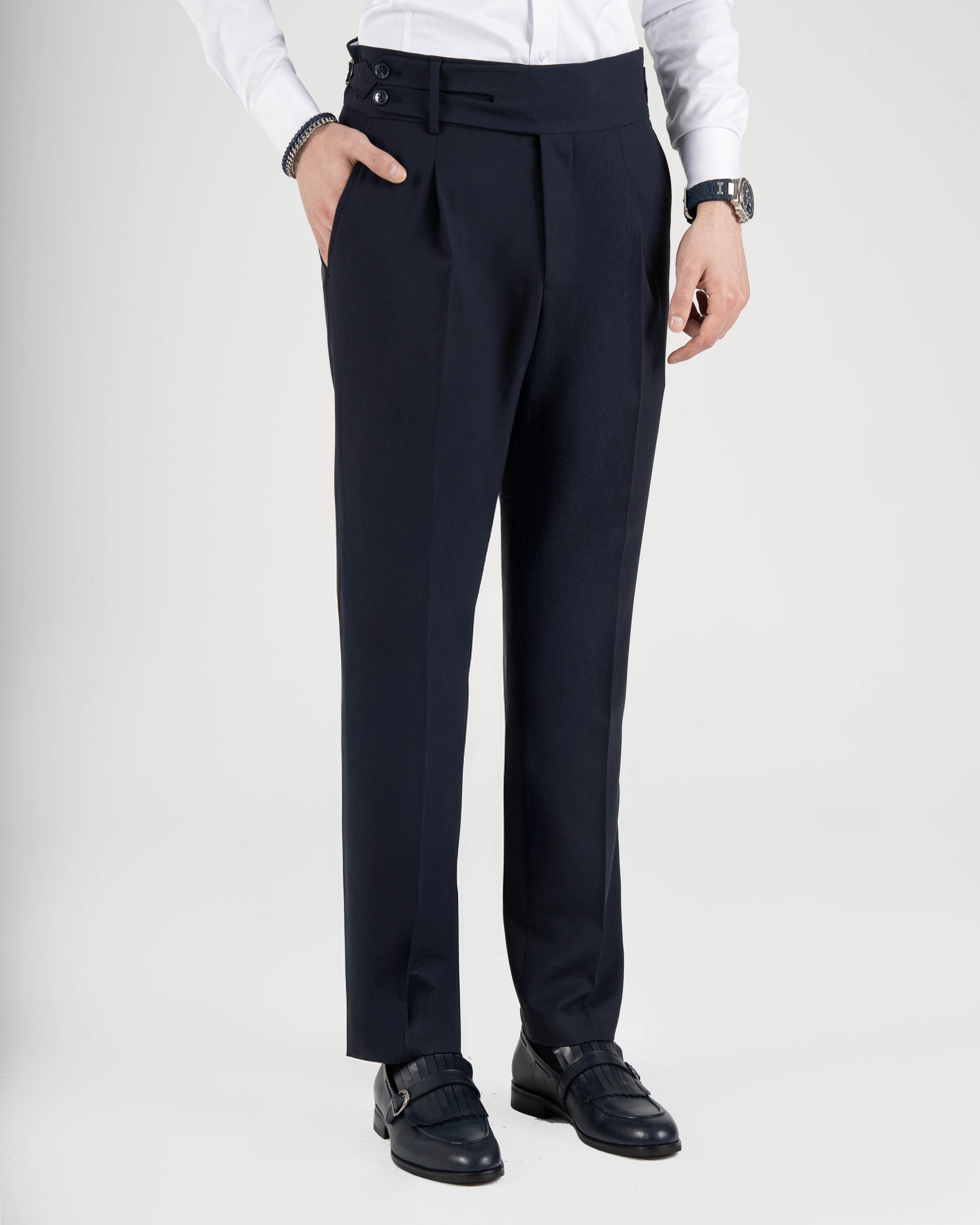 İtalyan stil slim fit bel detaylı erkek pantolon lacivert T14827