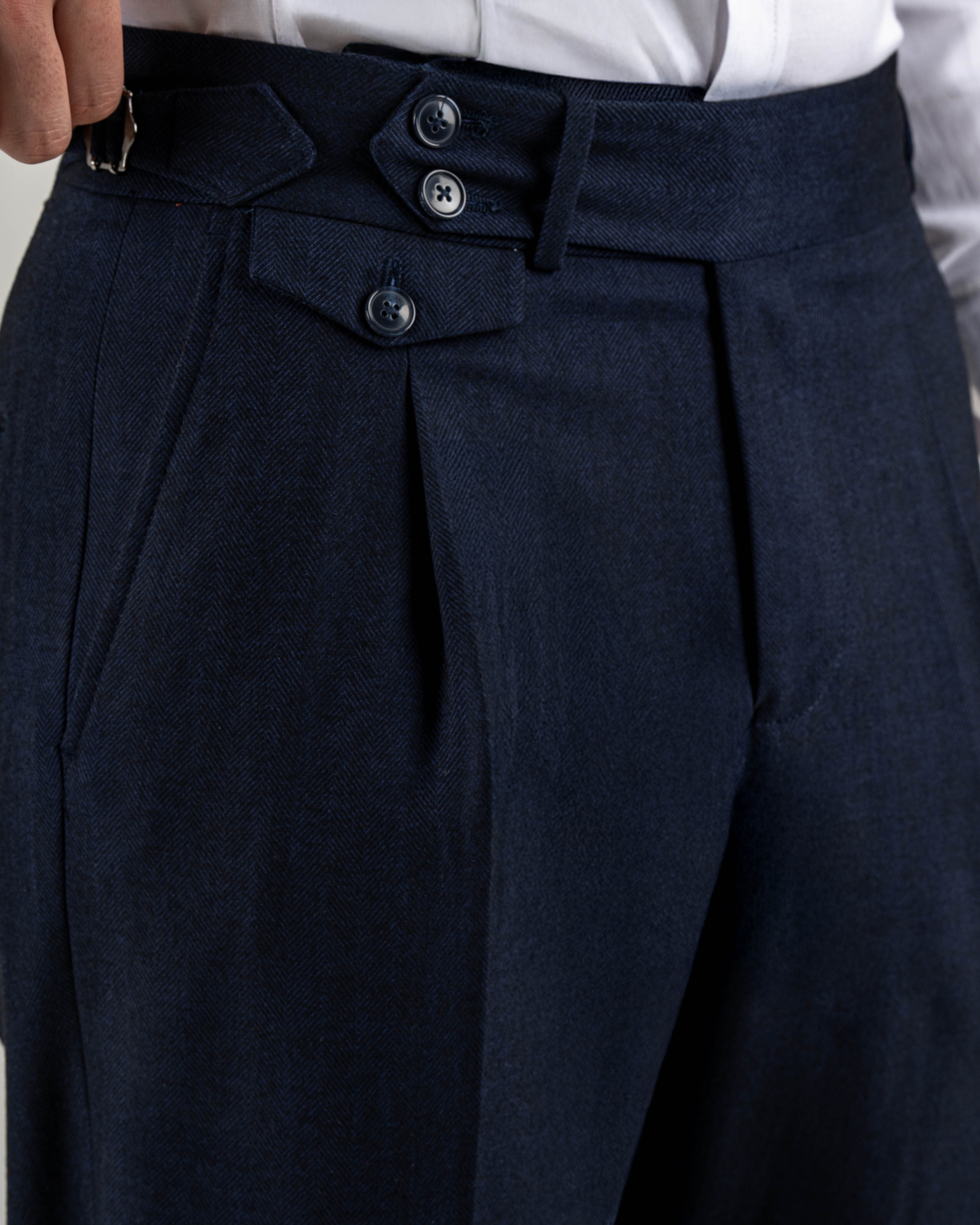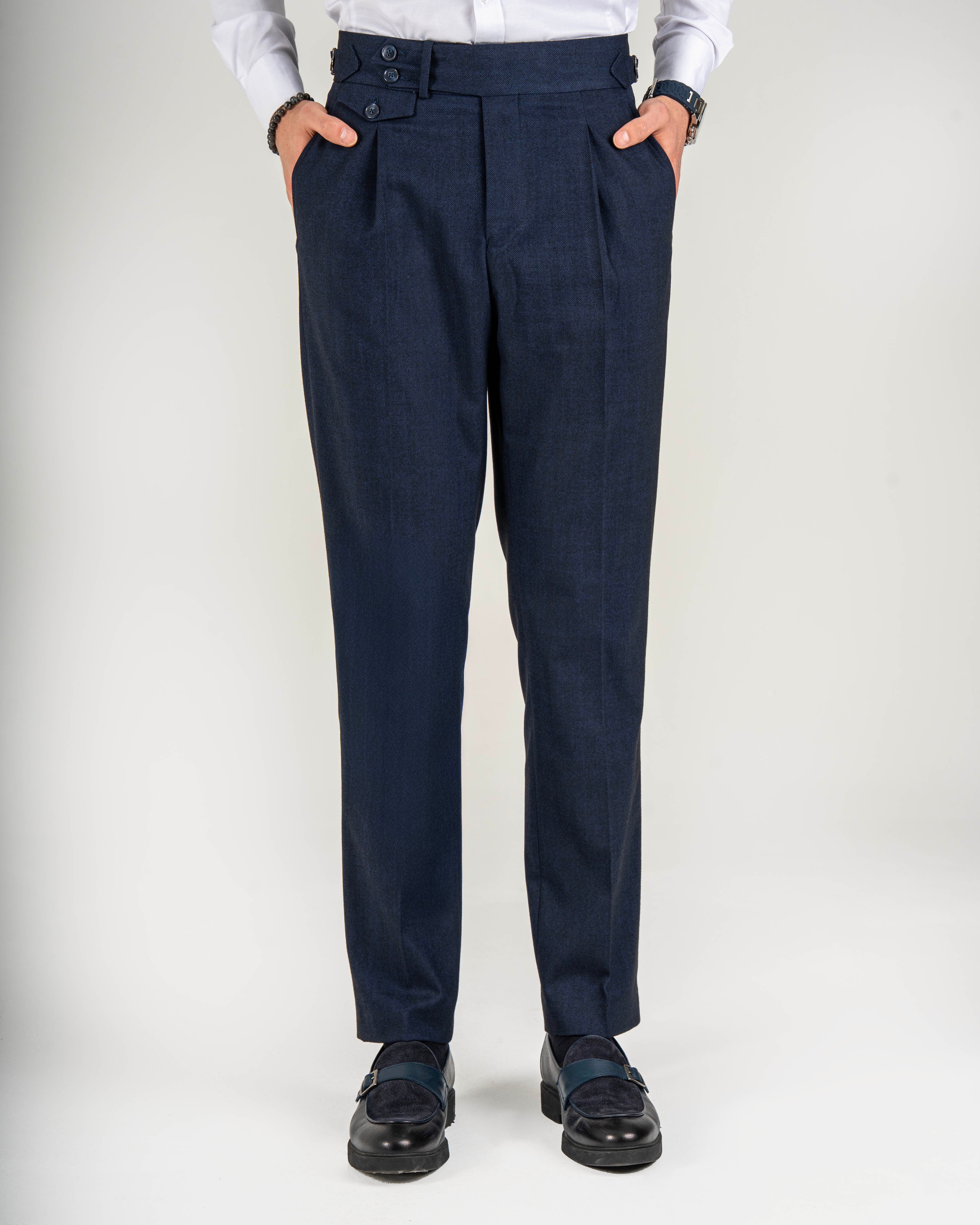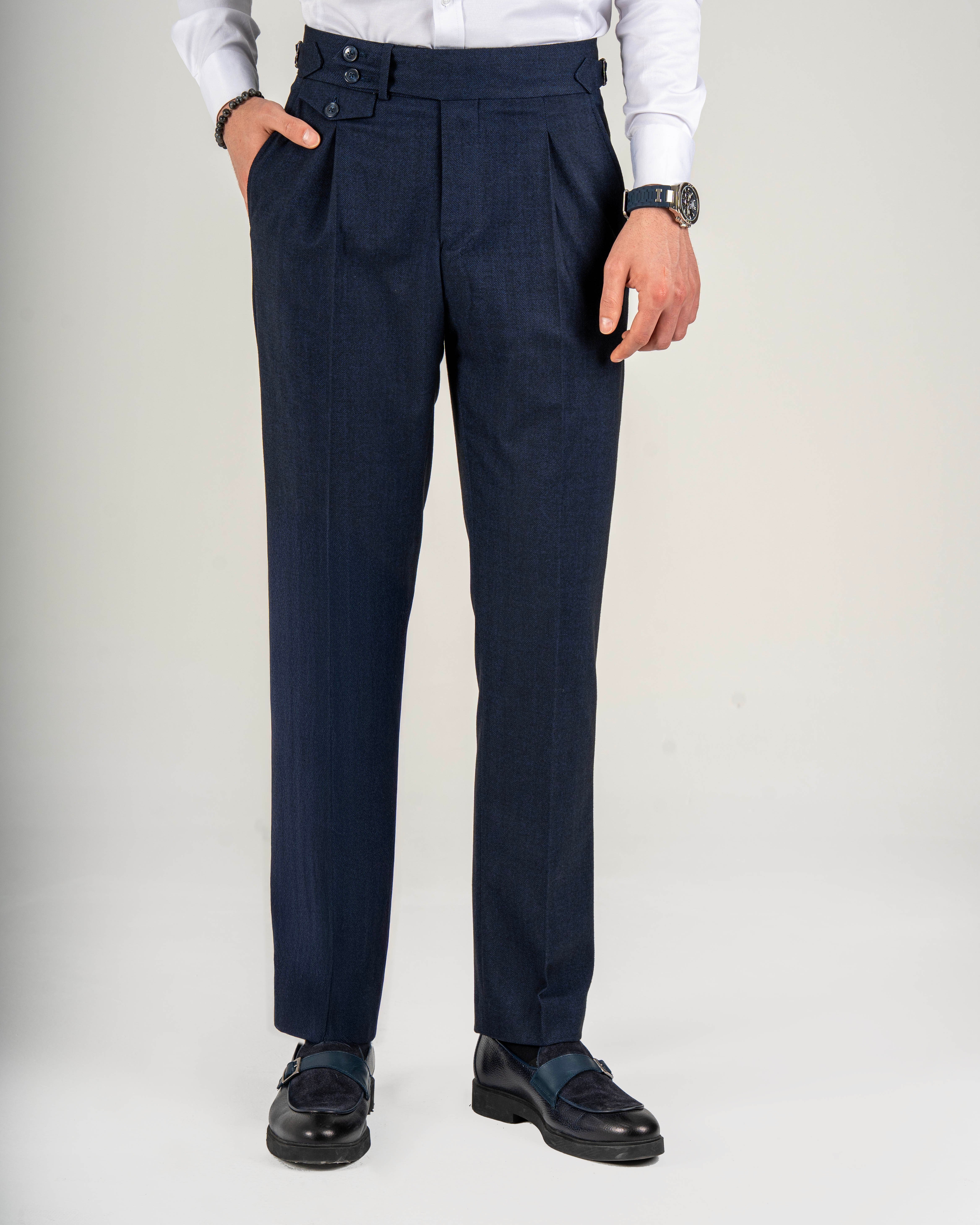 İtalyan stil slim fit bel detaylı erkek pantolon lacivert T14918
