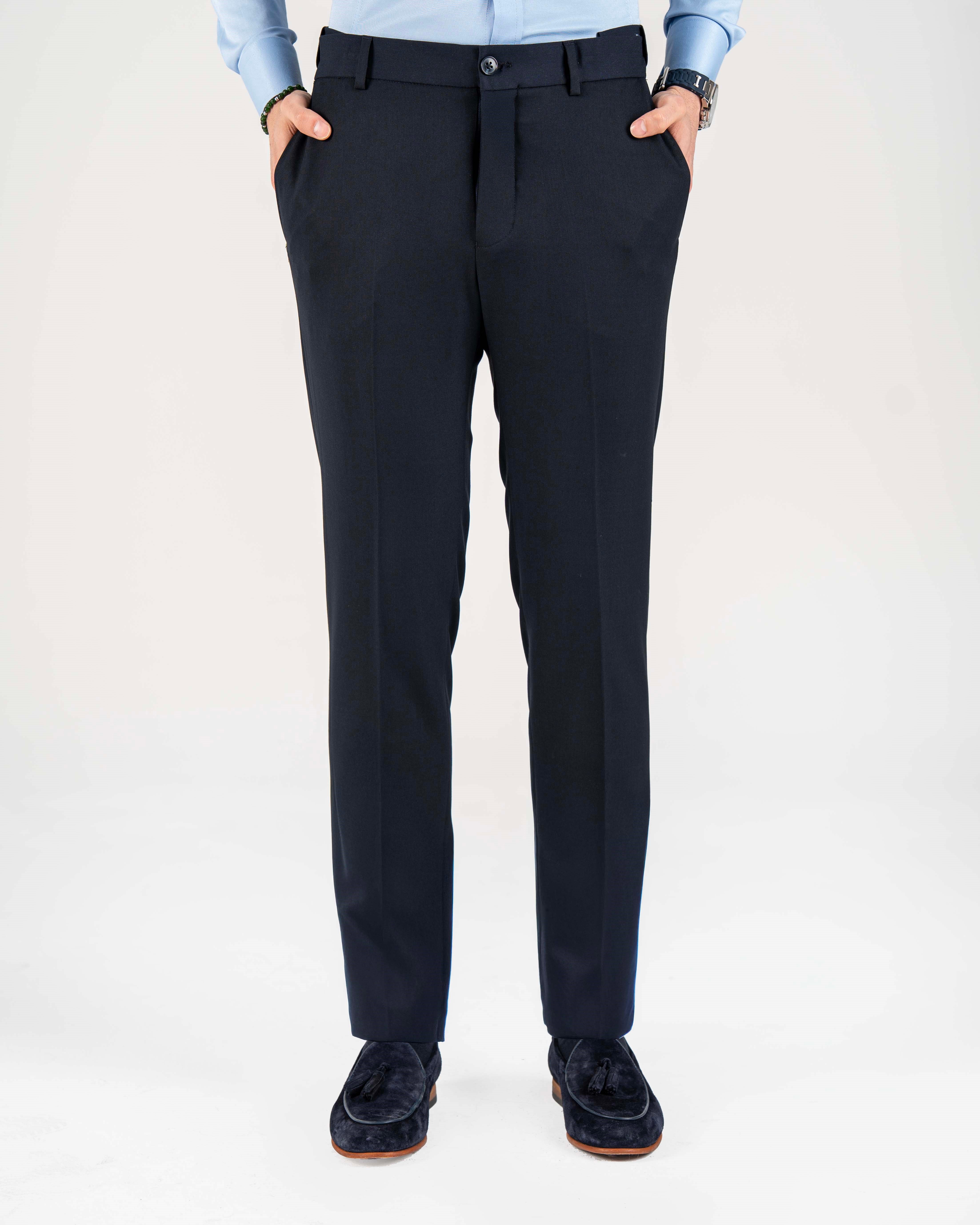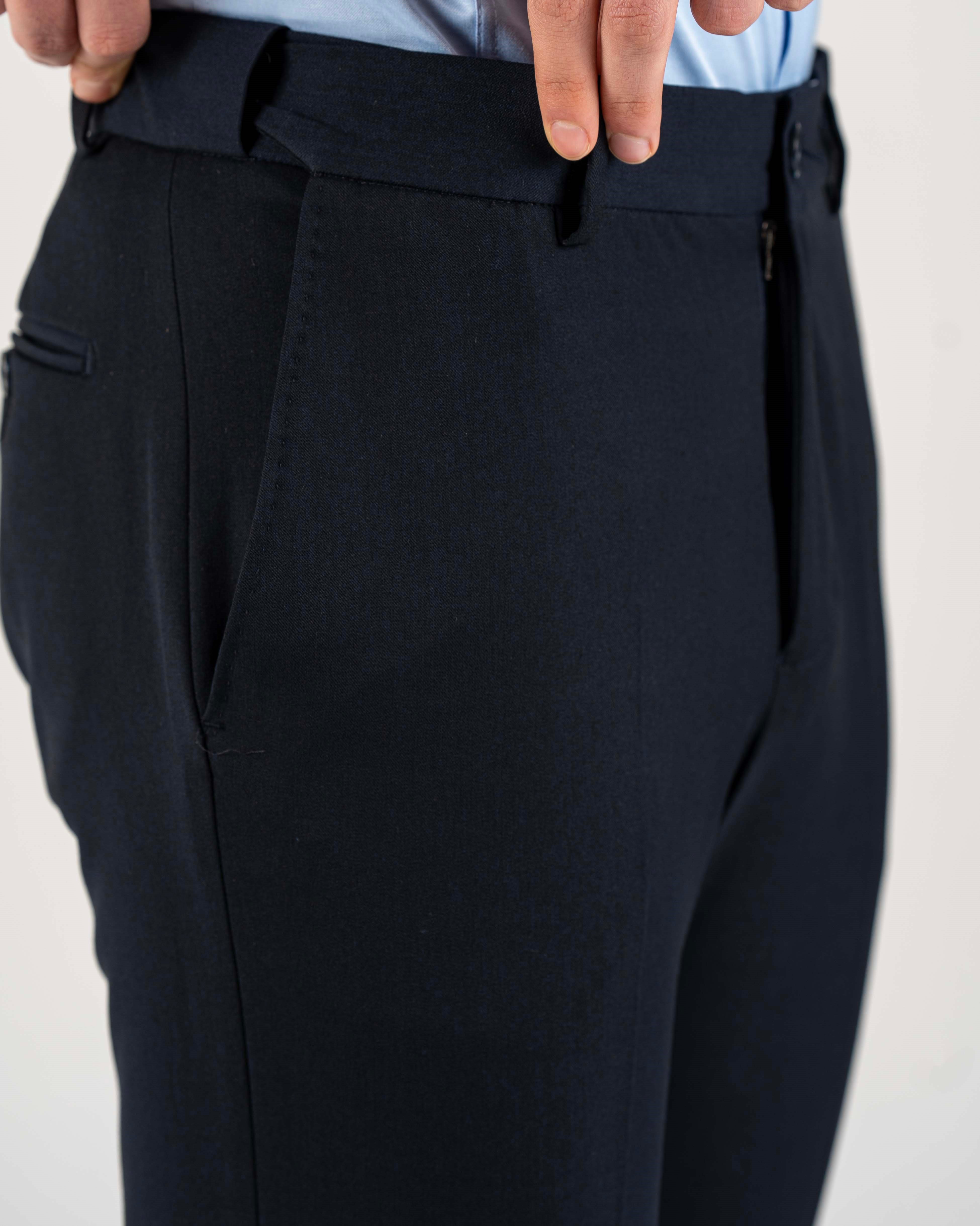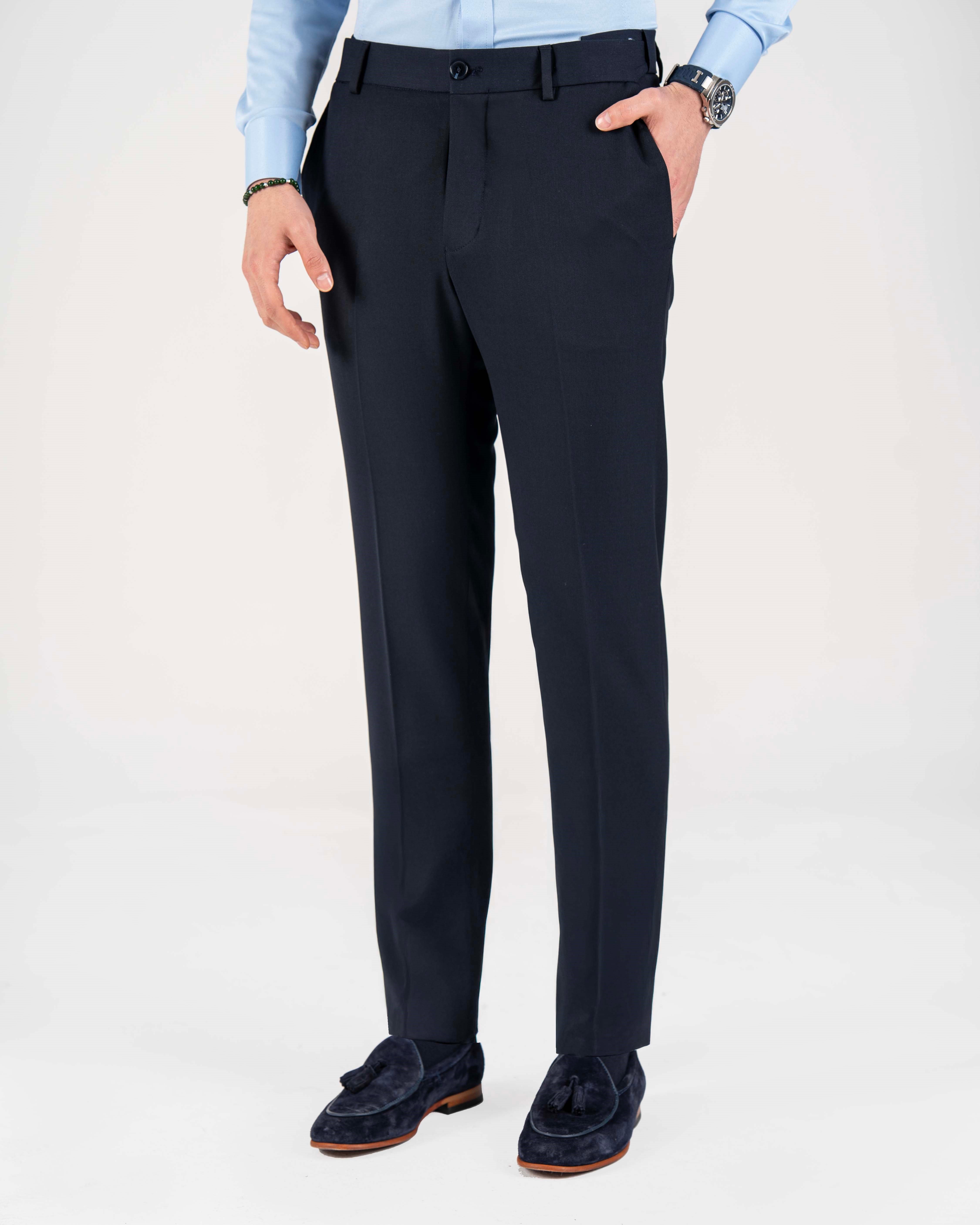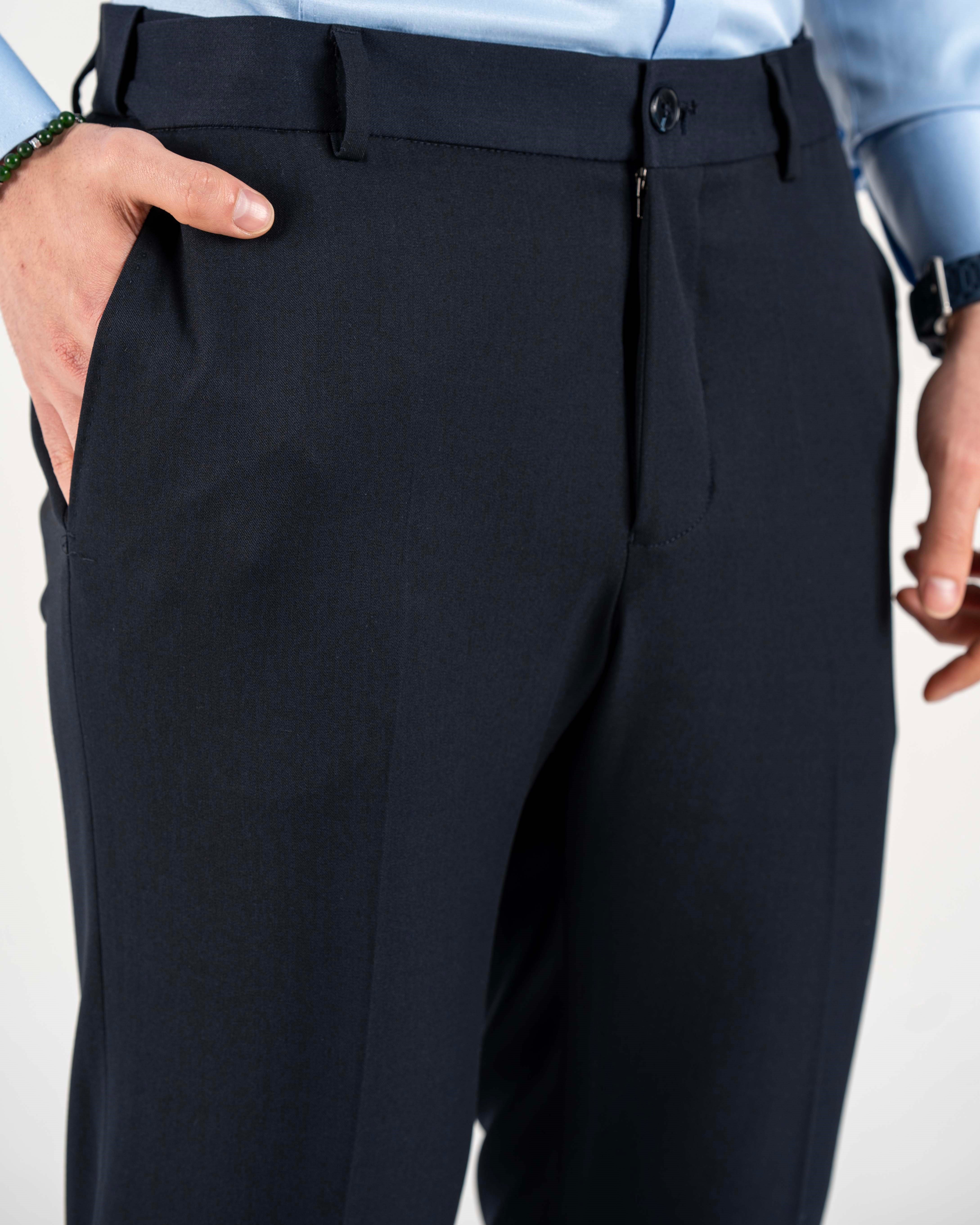 İtalyan stil slim fit bel detaylı erkek pantolon lacivert T20008-02
