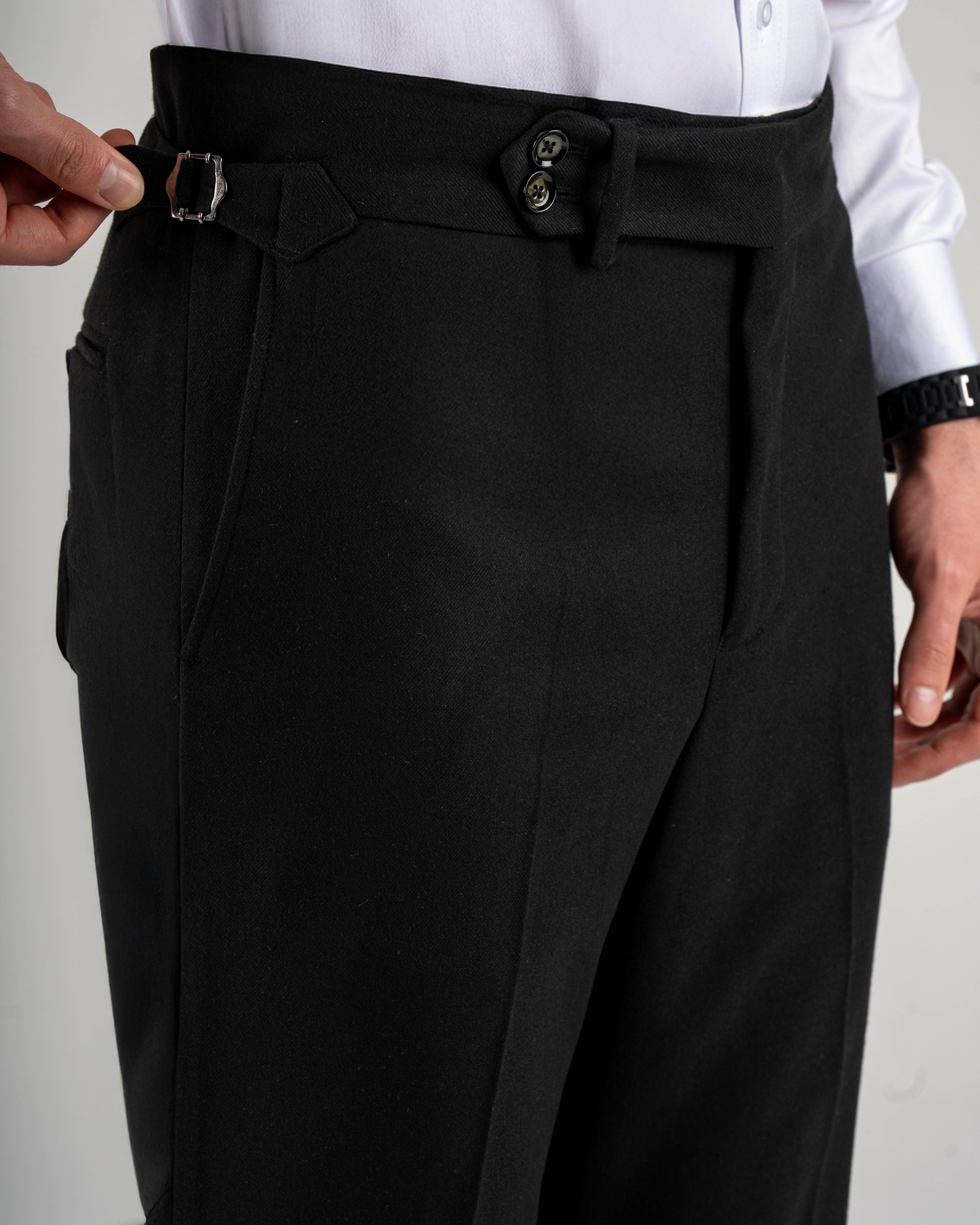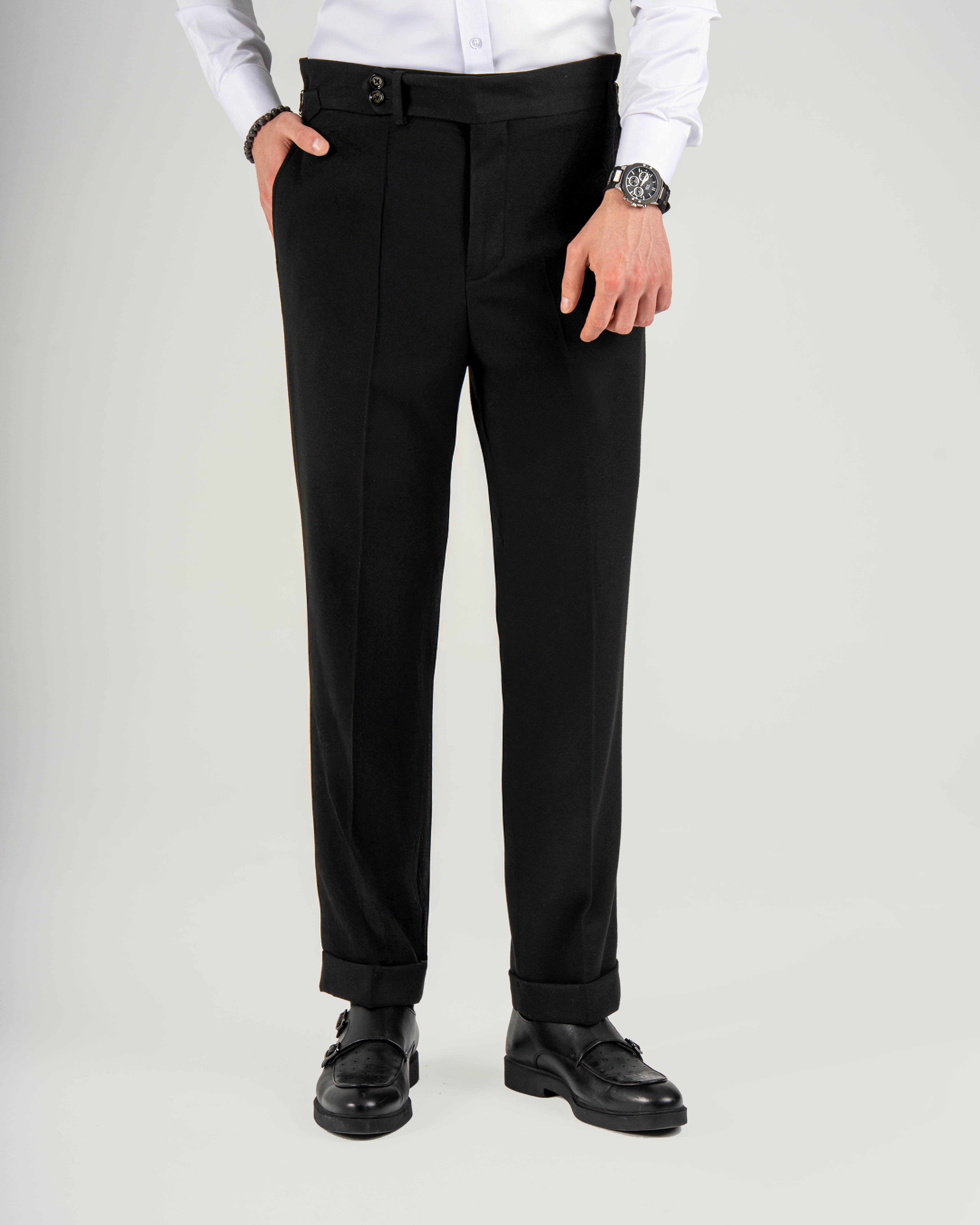 İtalyan stil slim fit bel detaylı erkek pantolon siyah T14821