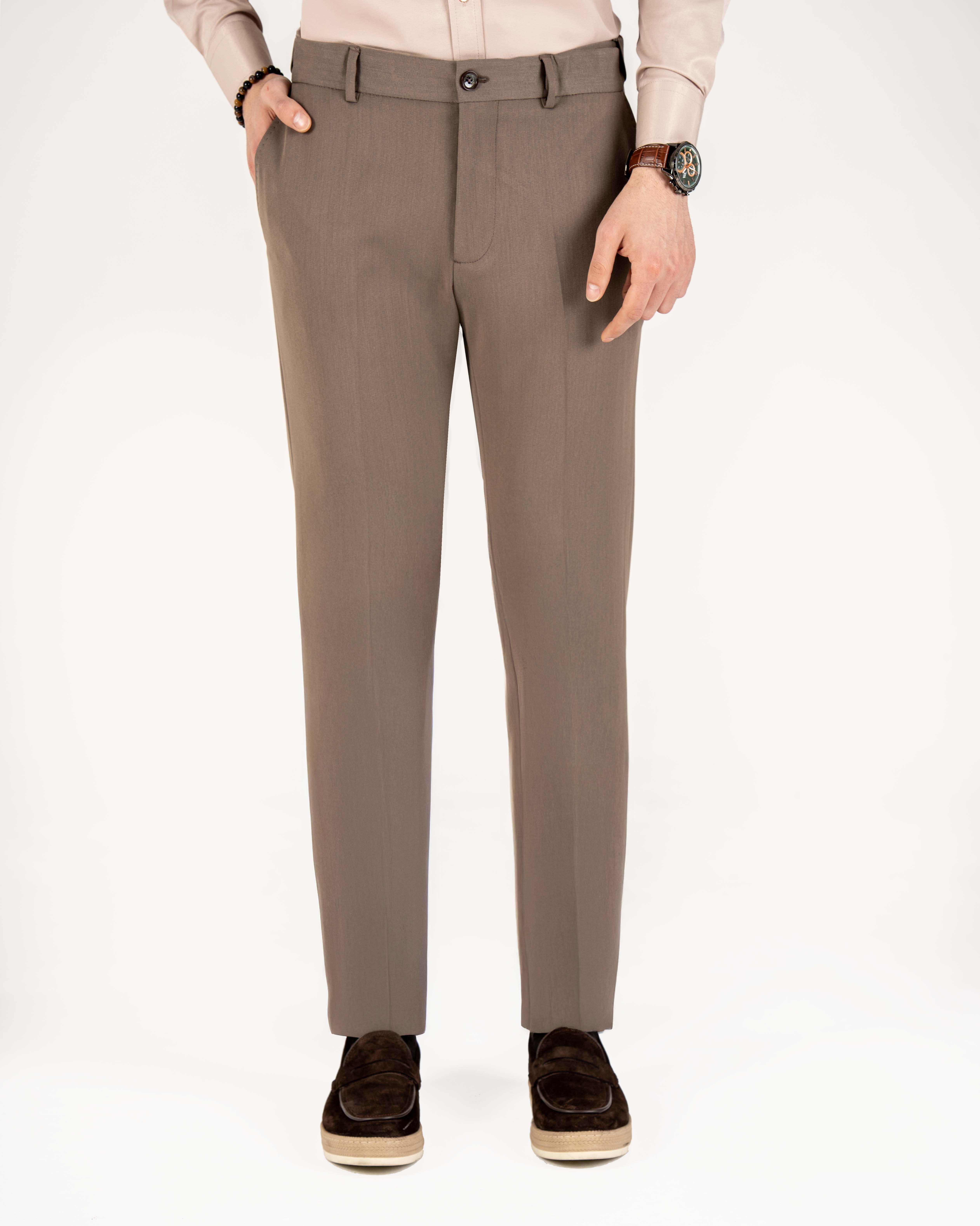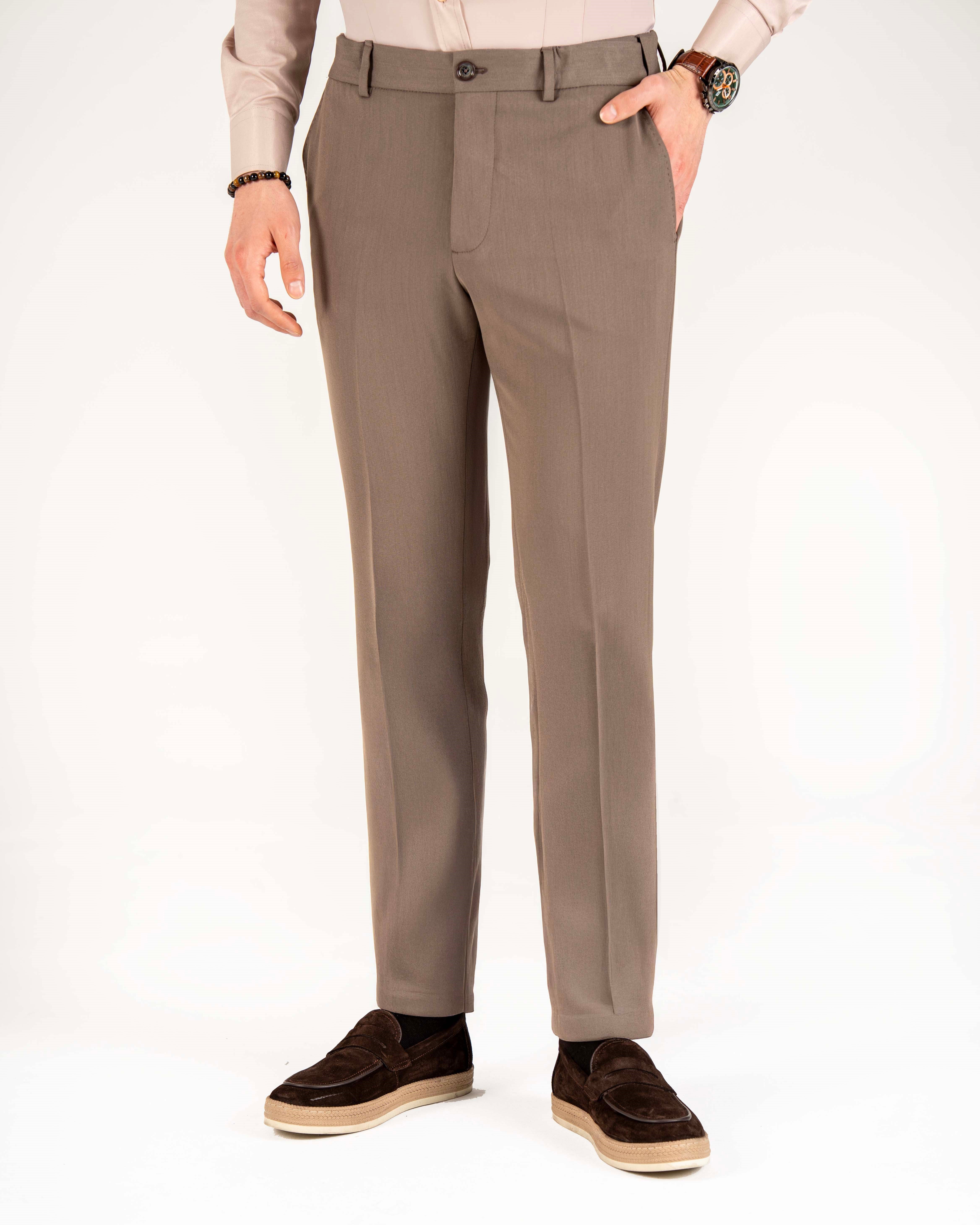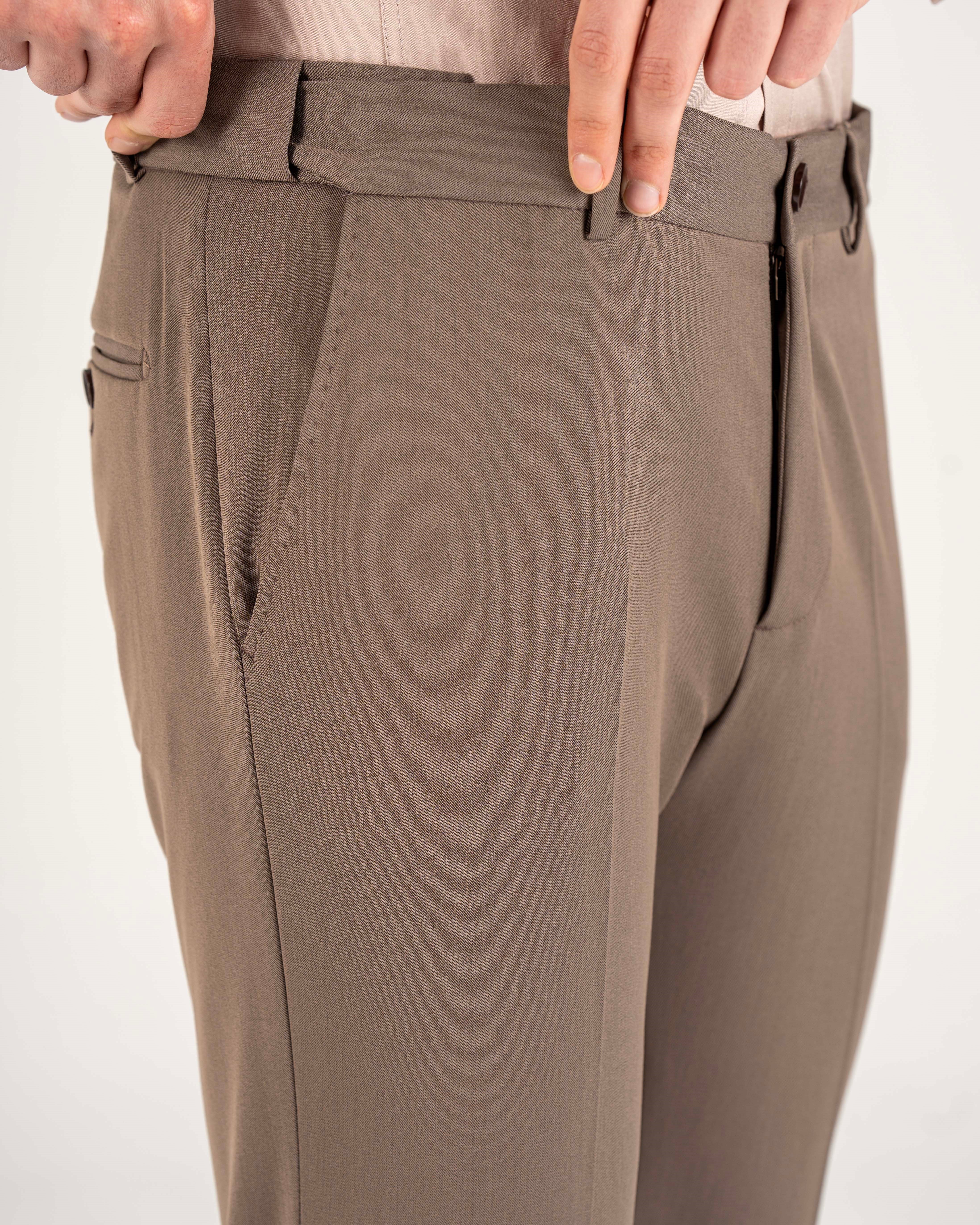 İtalyan stil slim fit bel detaylı erkek pantolon vizon T20008-26
