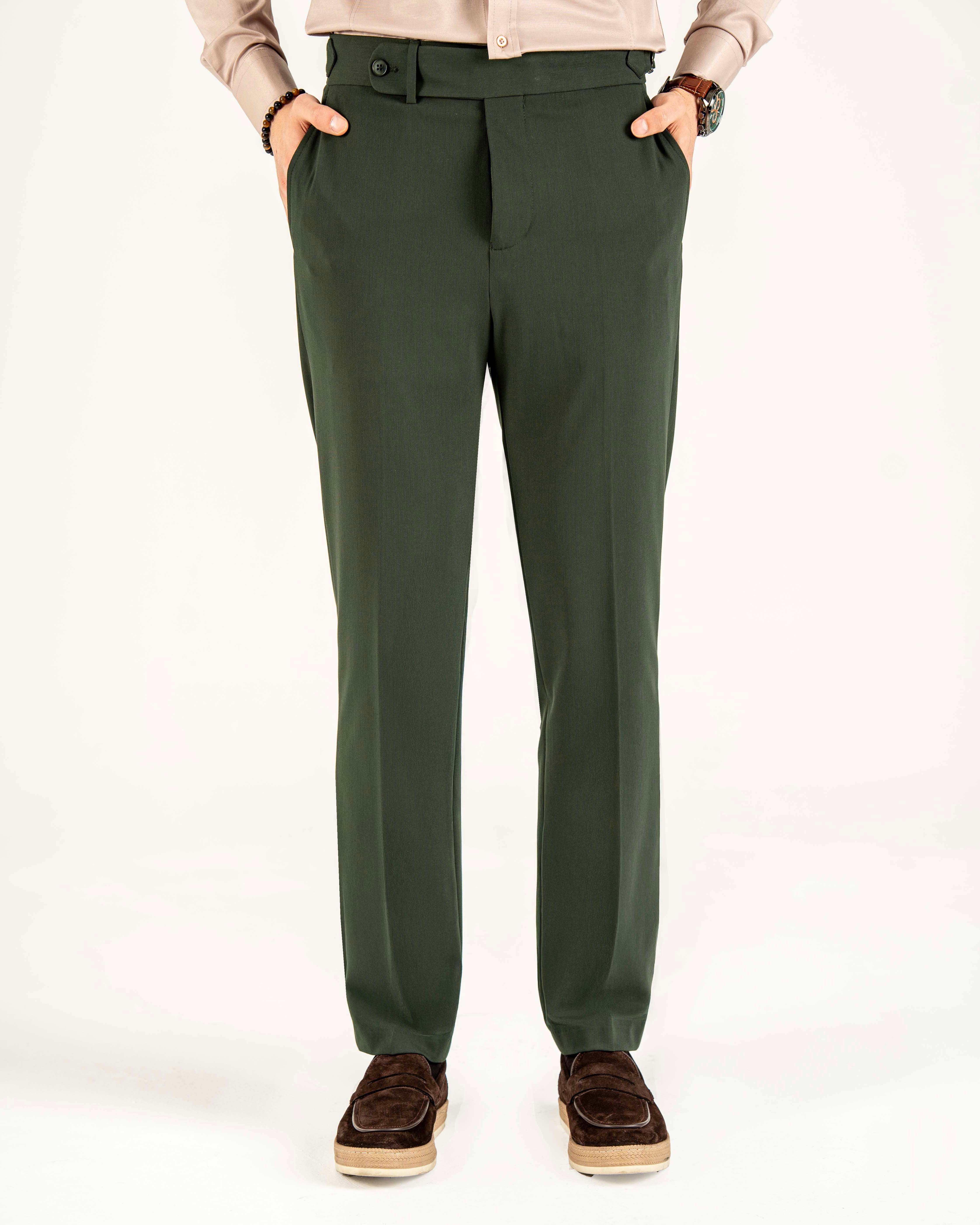 İtalyan stil slim fit bel detaylı erkek pantolon yeşil T14927