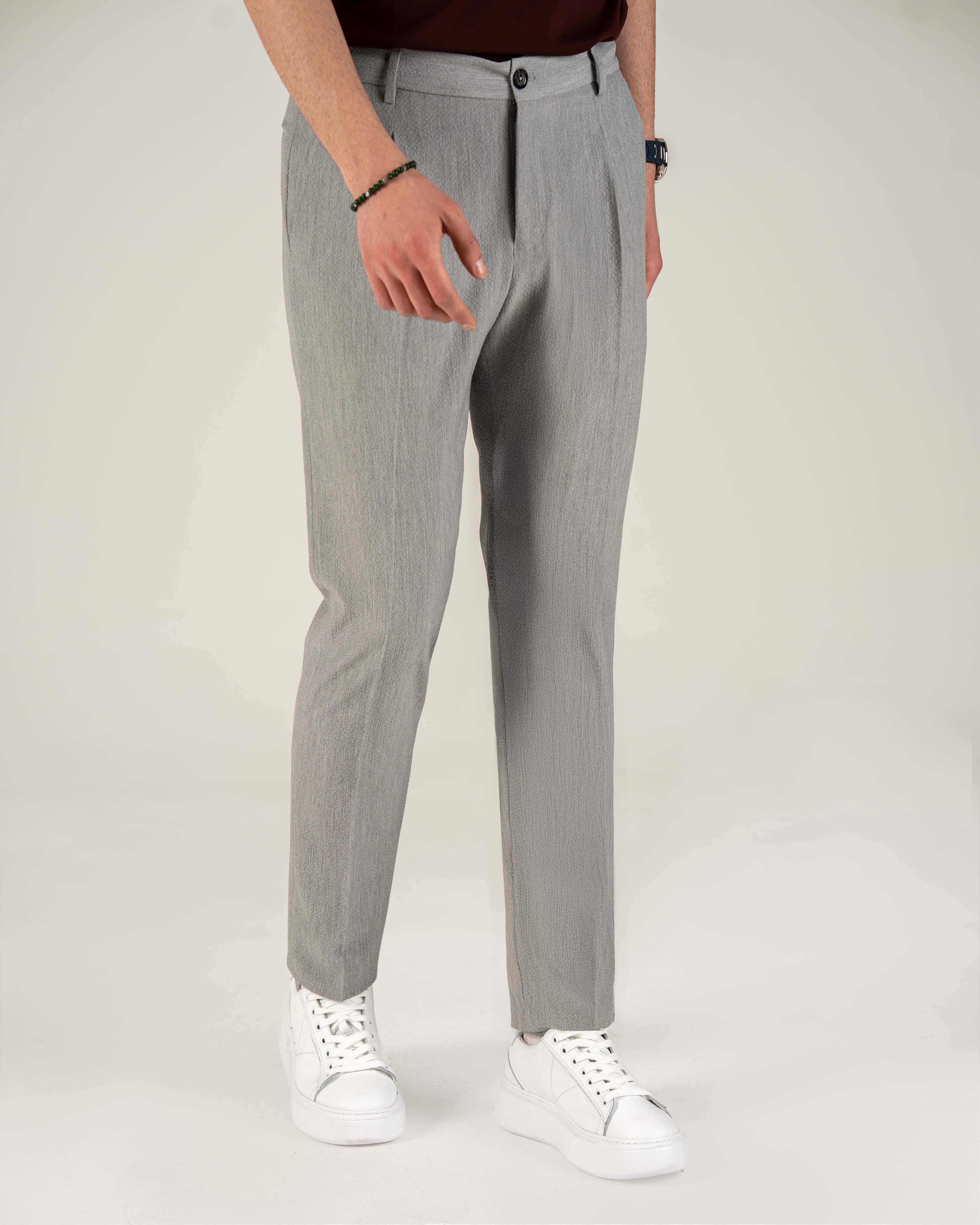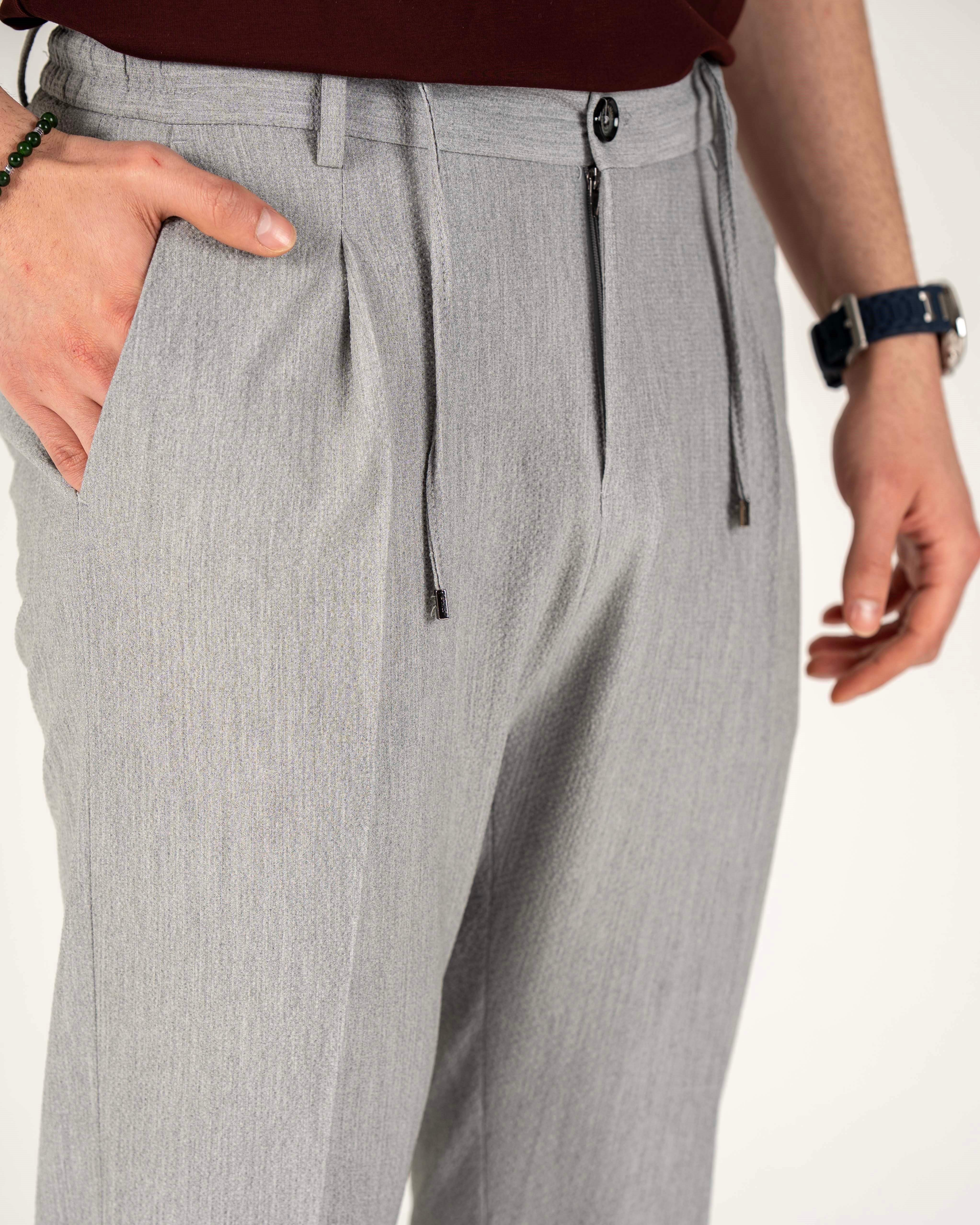 İtalyan stil slim fit erkek bel detaylı pantolon gri T20039-04