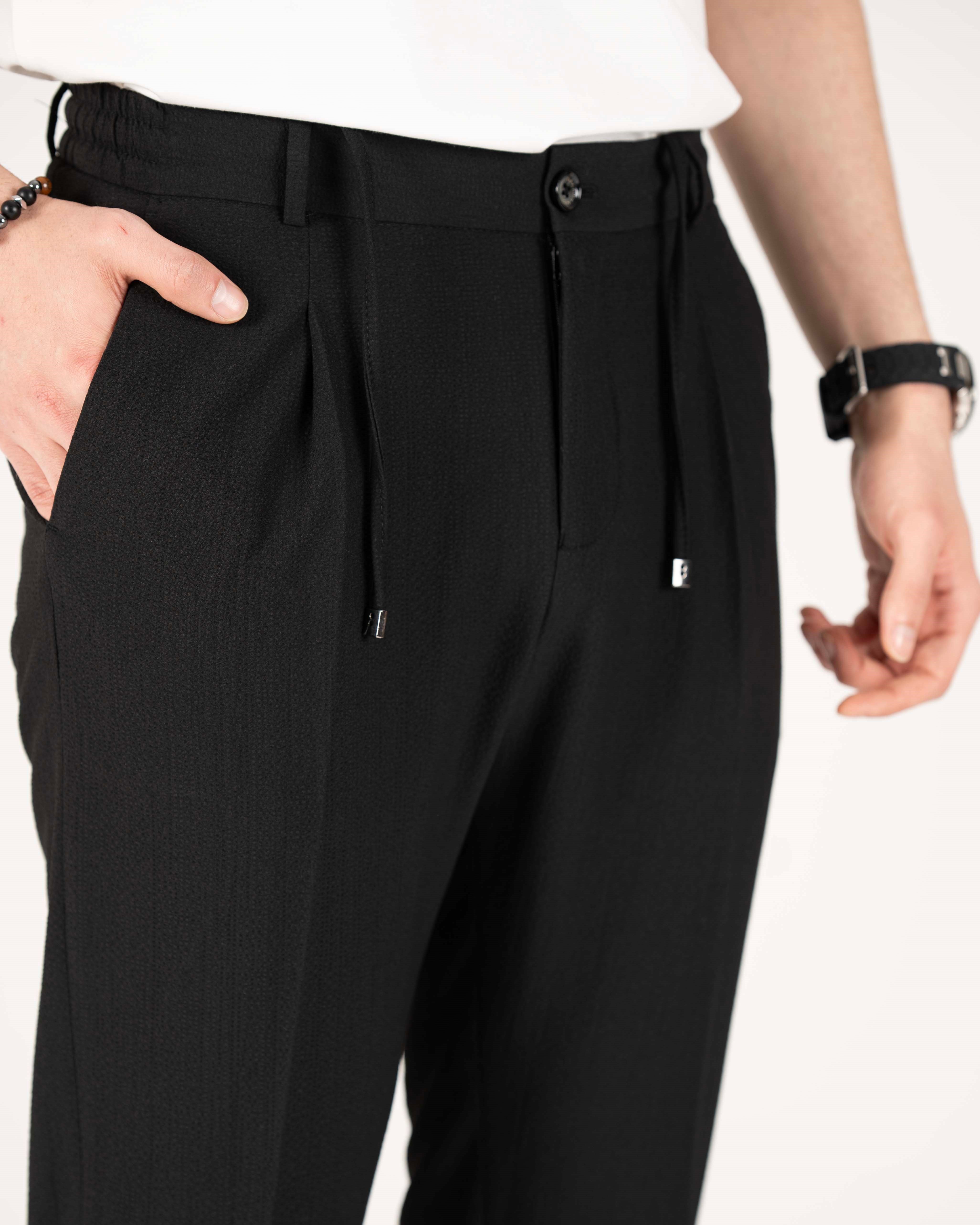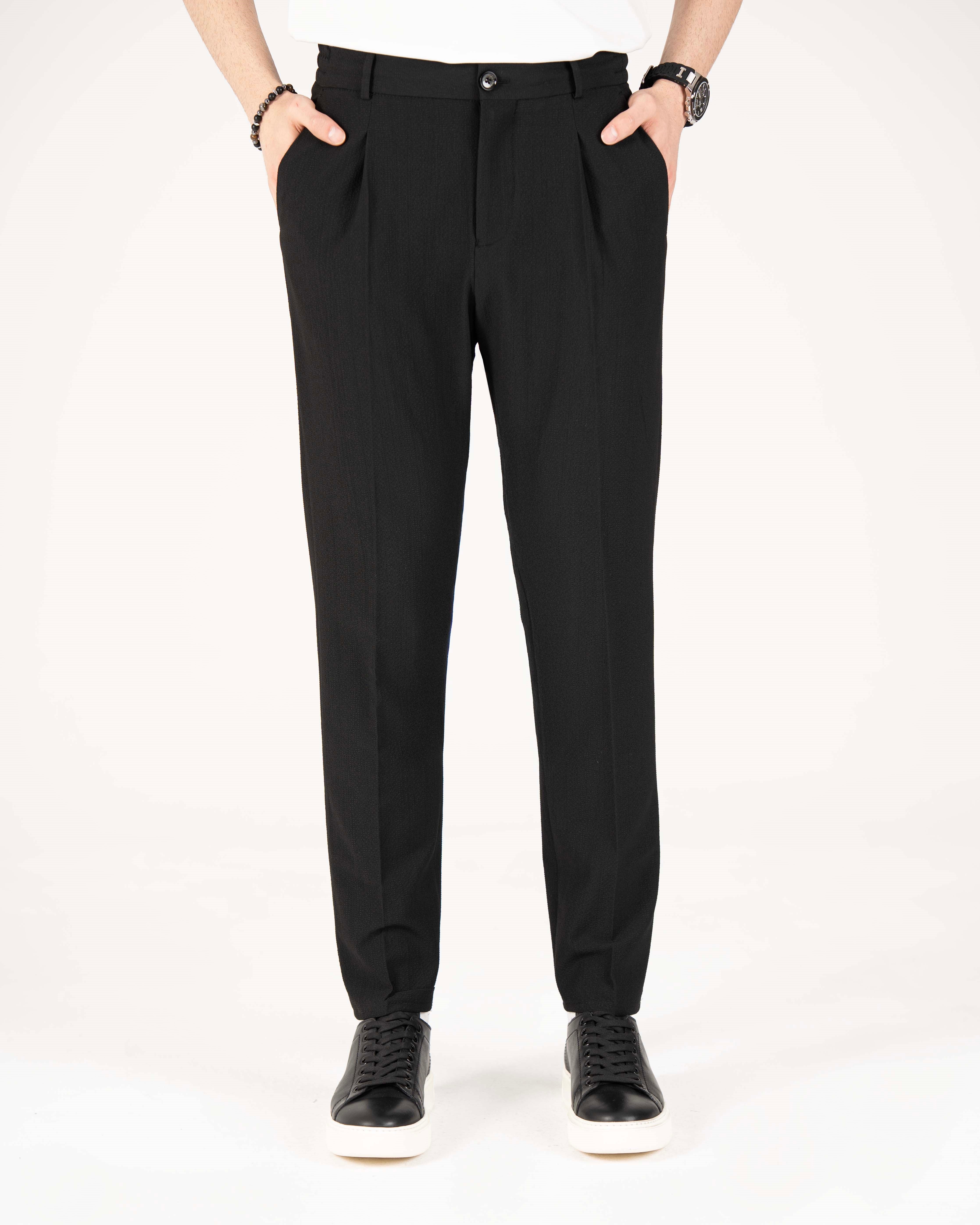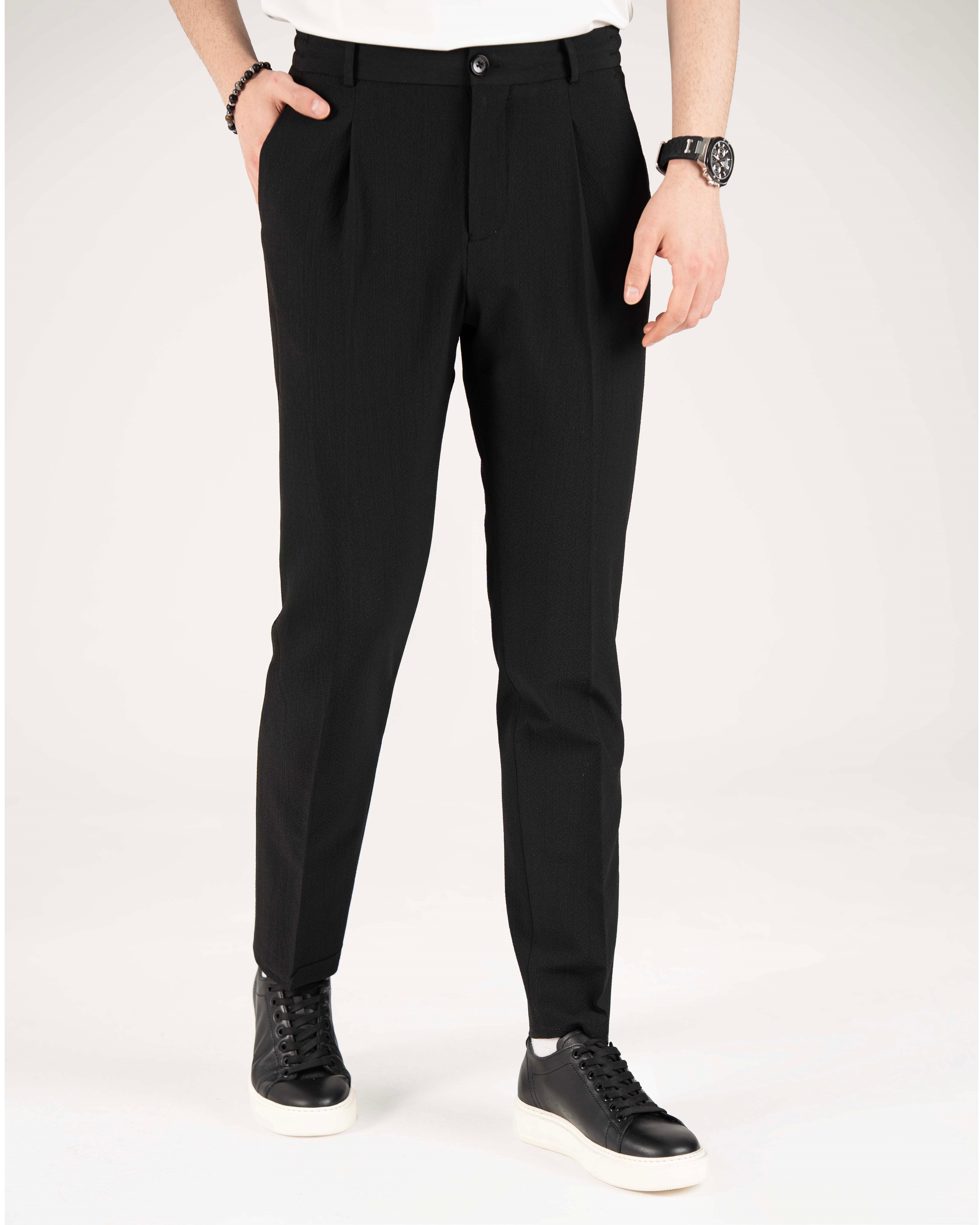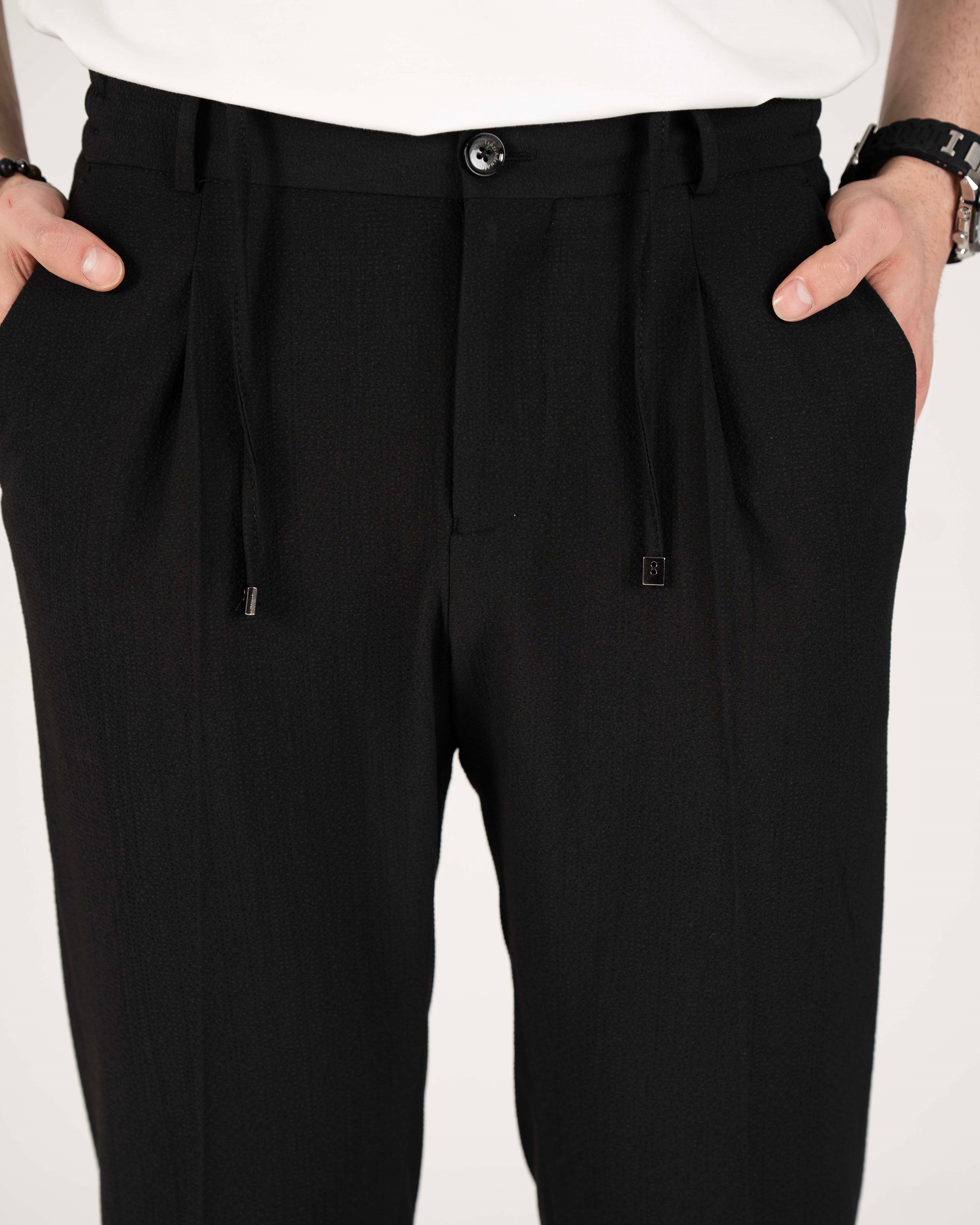 İtalyan stil slim fit erkek bel detaylı pantolon siyah T20039-01