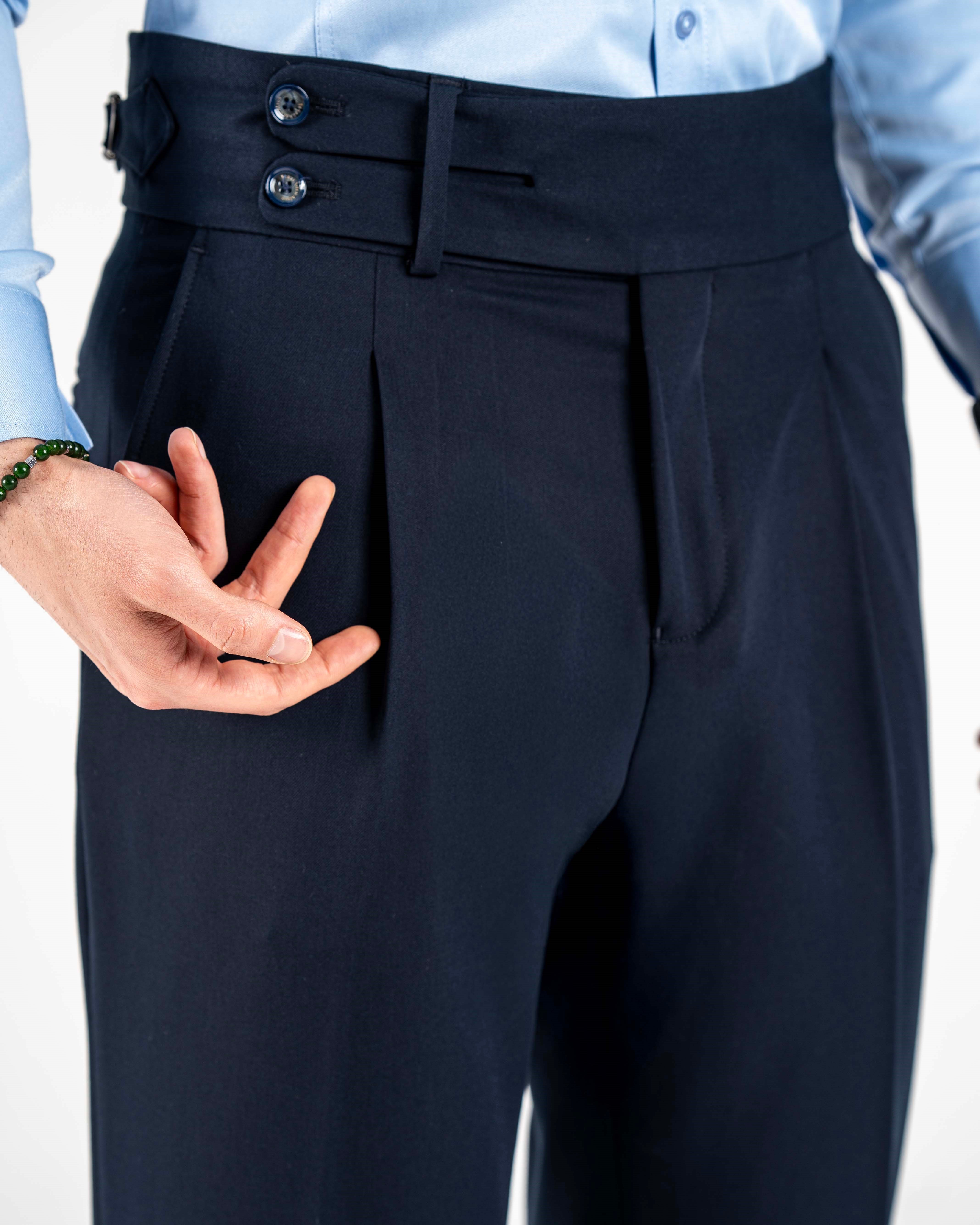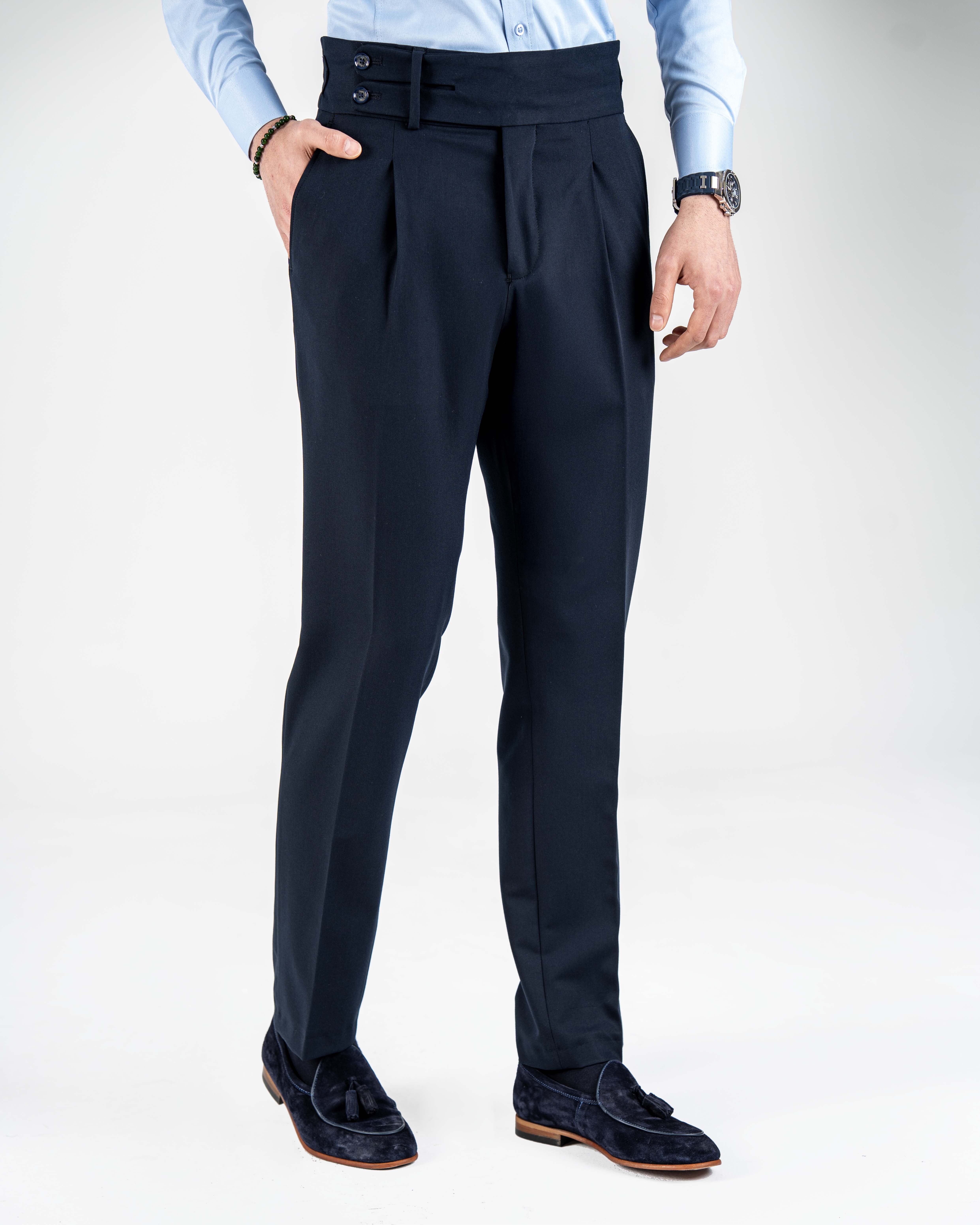 İtalyan stil slim fit erkek bel detaylı tokalı pantolon lacivert T20037-02