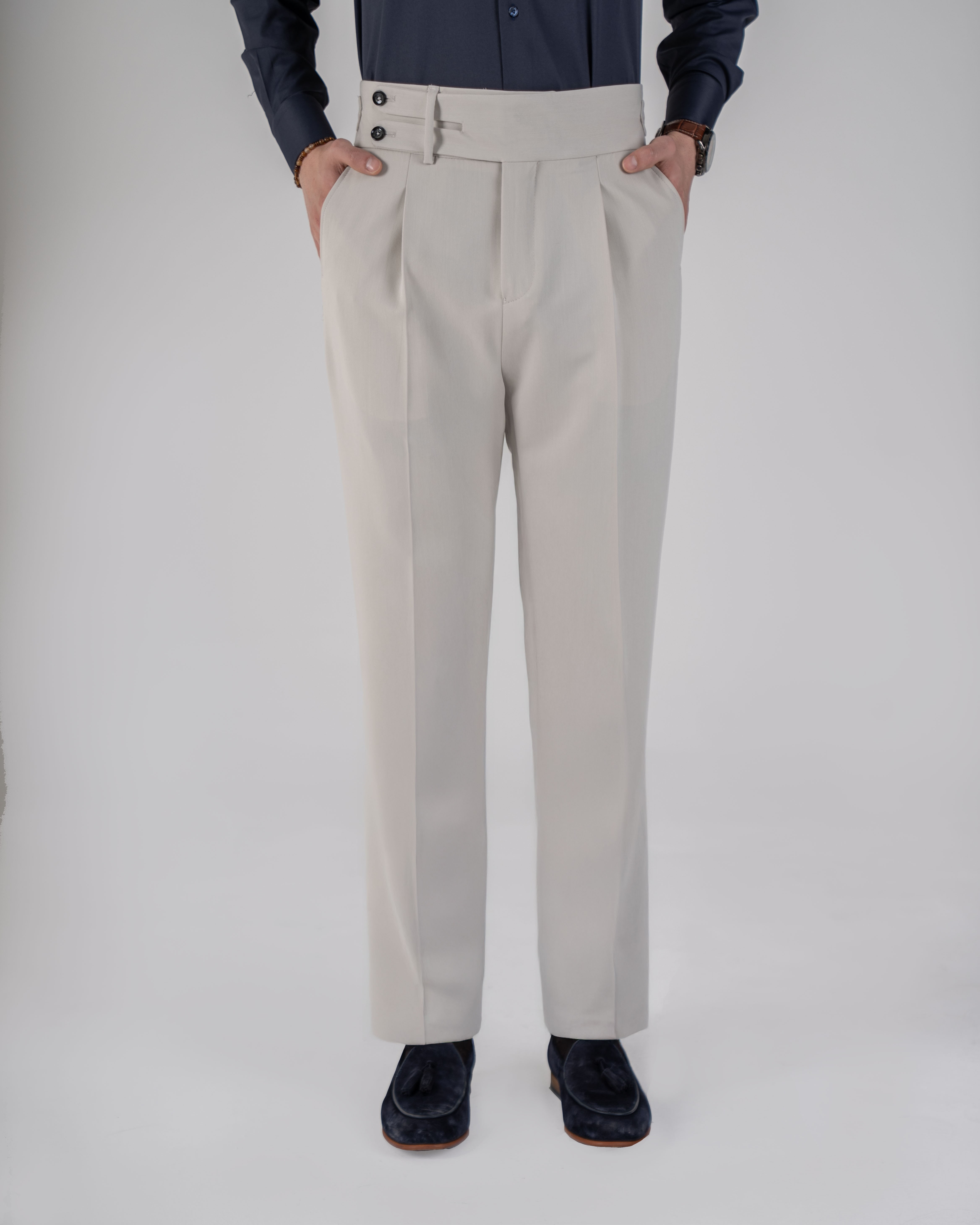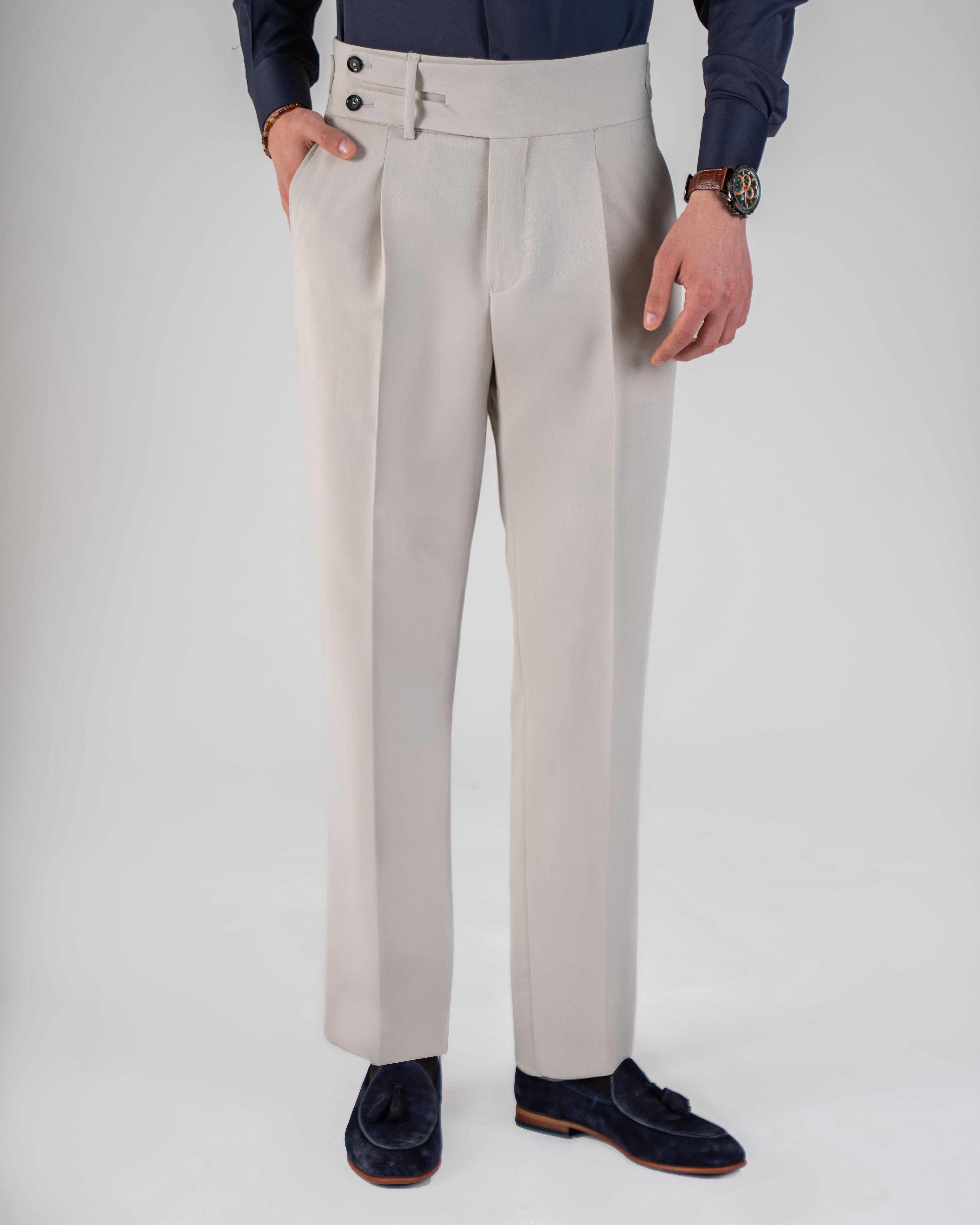 İtalyan stil slim fit erkek bel detaylı tokalı pantolon taş T20037-25