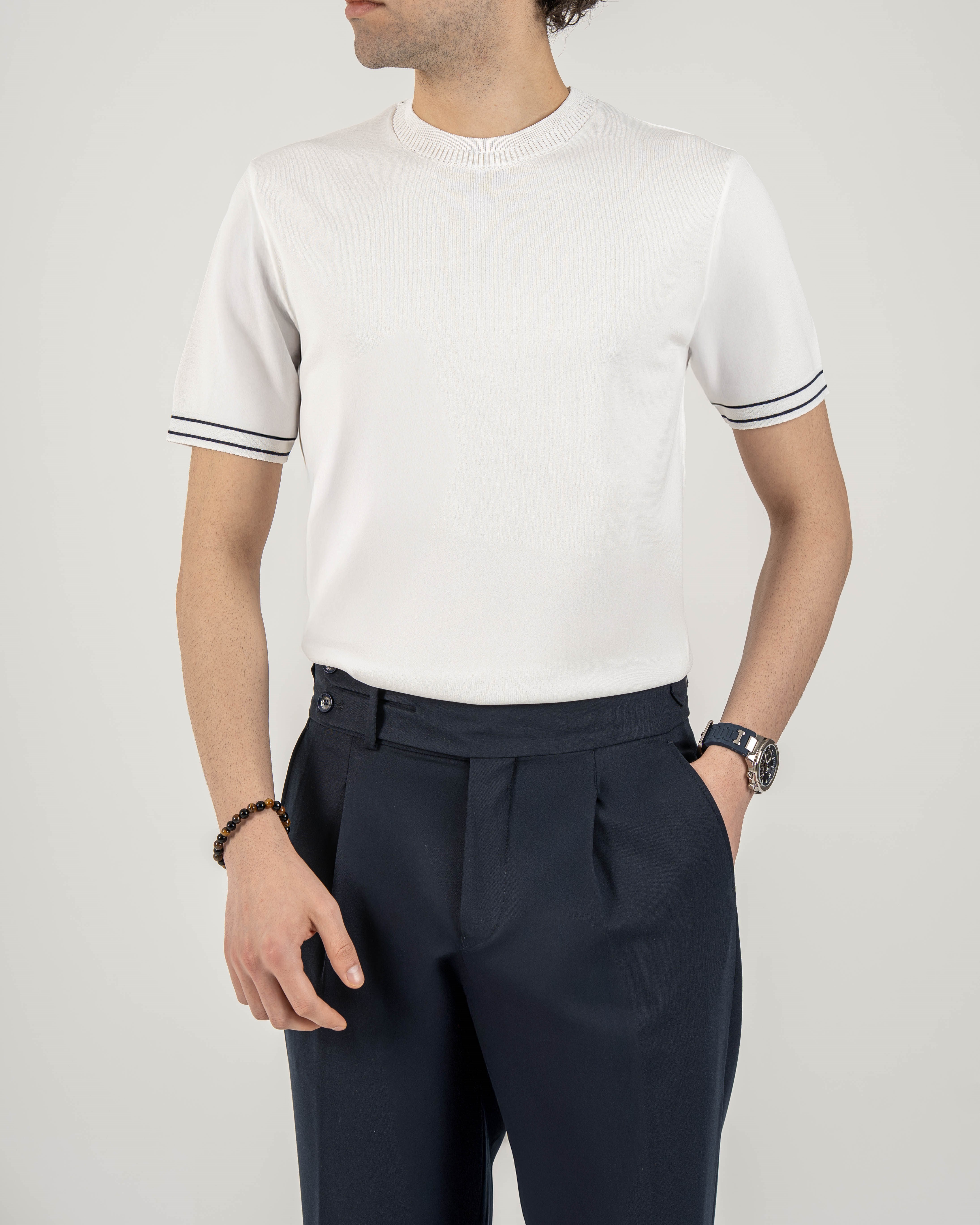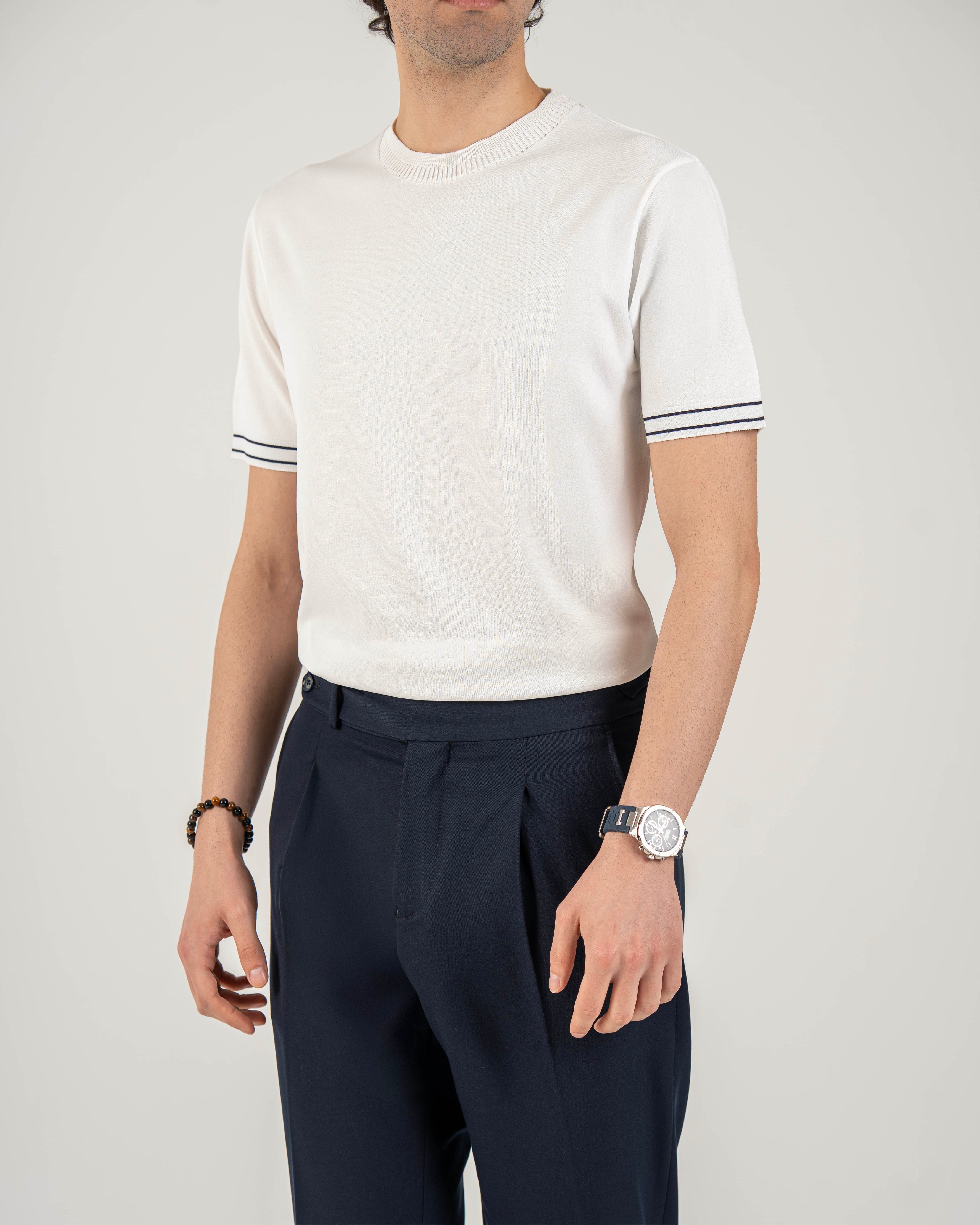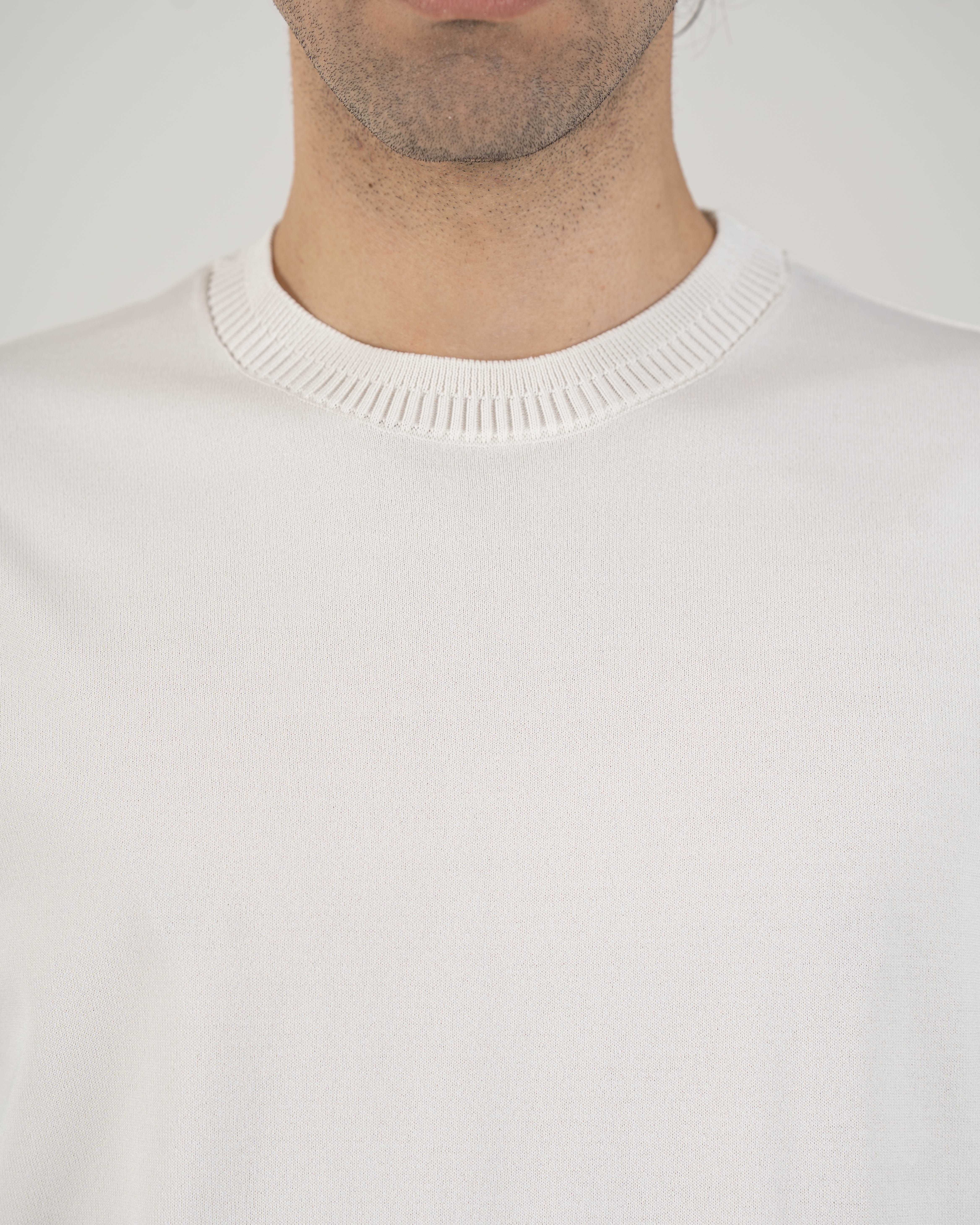 İtalyan stil slim fit erkek bisiklet yaka kısa kollu triko tişört ekru T20031-05