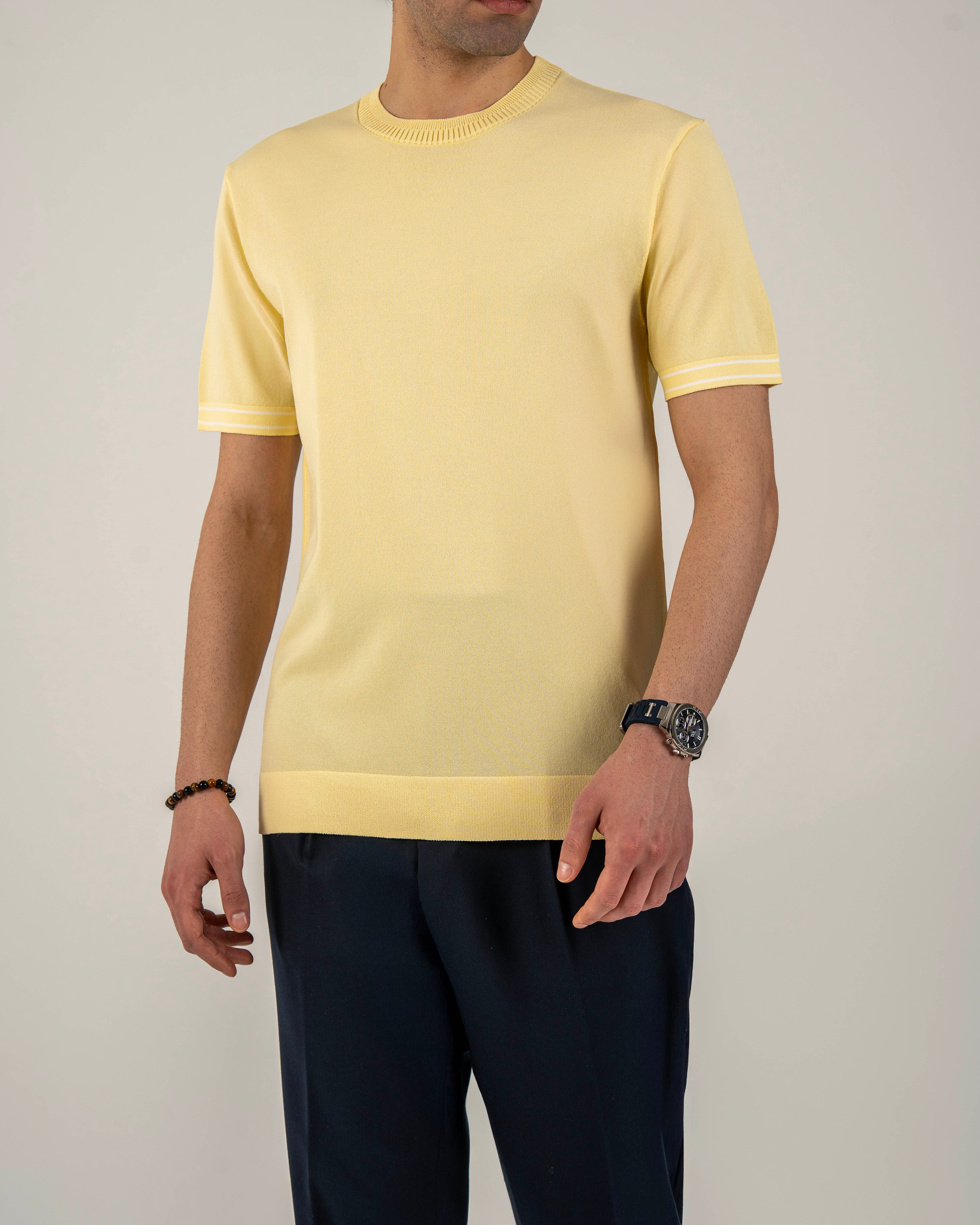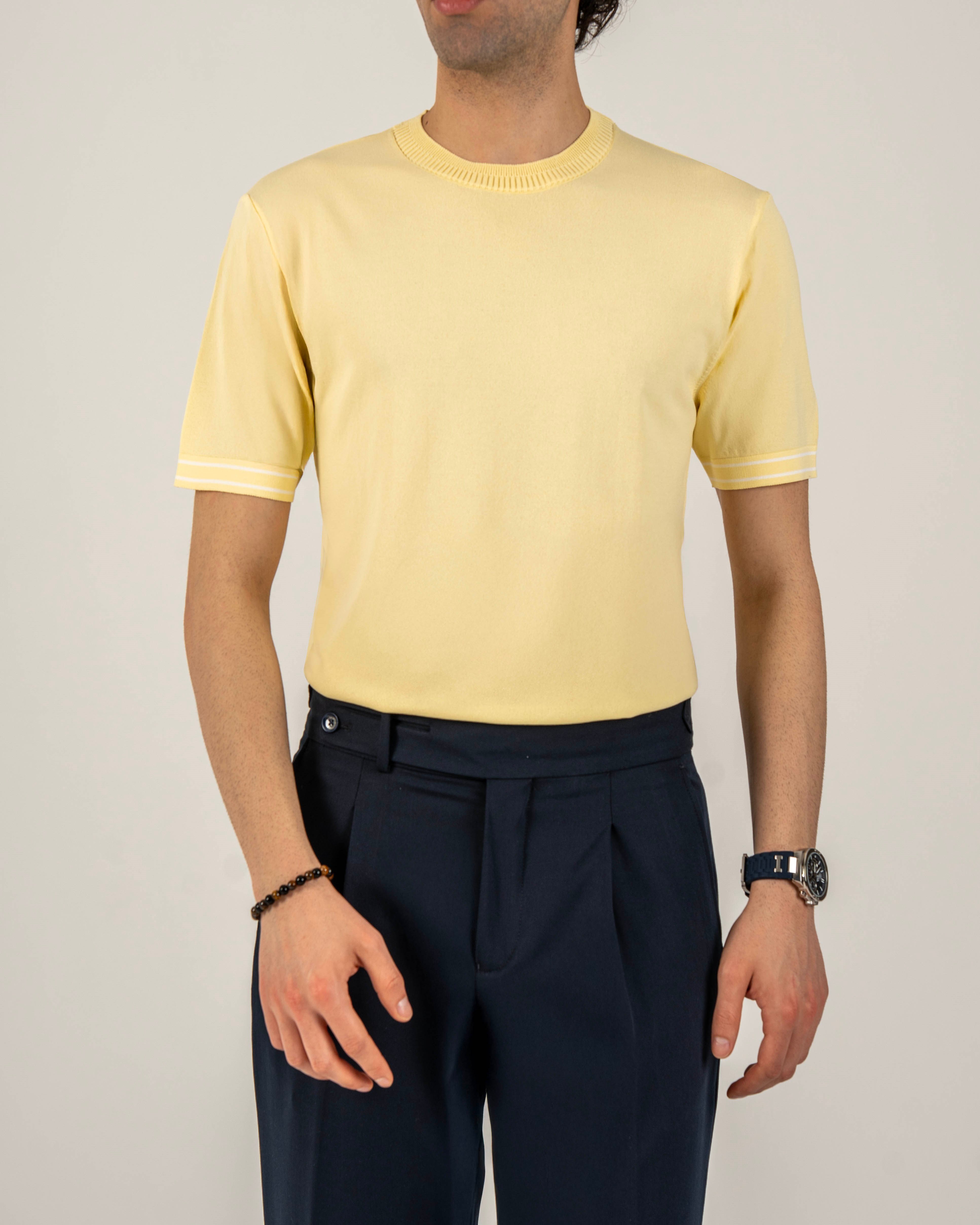İtalyan stil slim fit erkek bisiklet yaka kısa kollu triko tişört sarı T20031-23