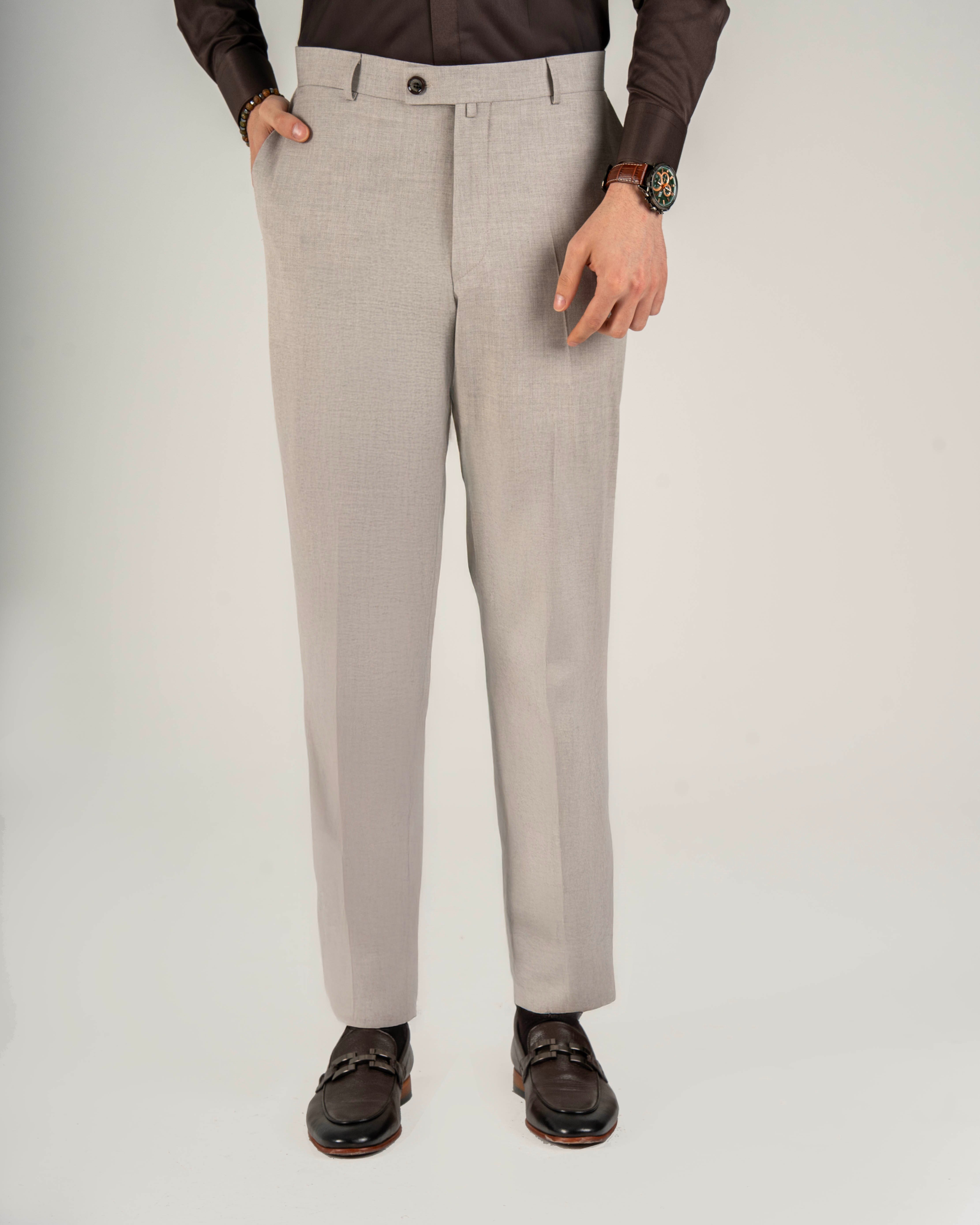 İtalyan stil slim fit erkek klasik kumaş pantolon bej T20092-09