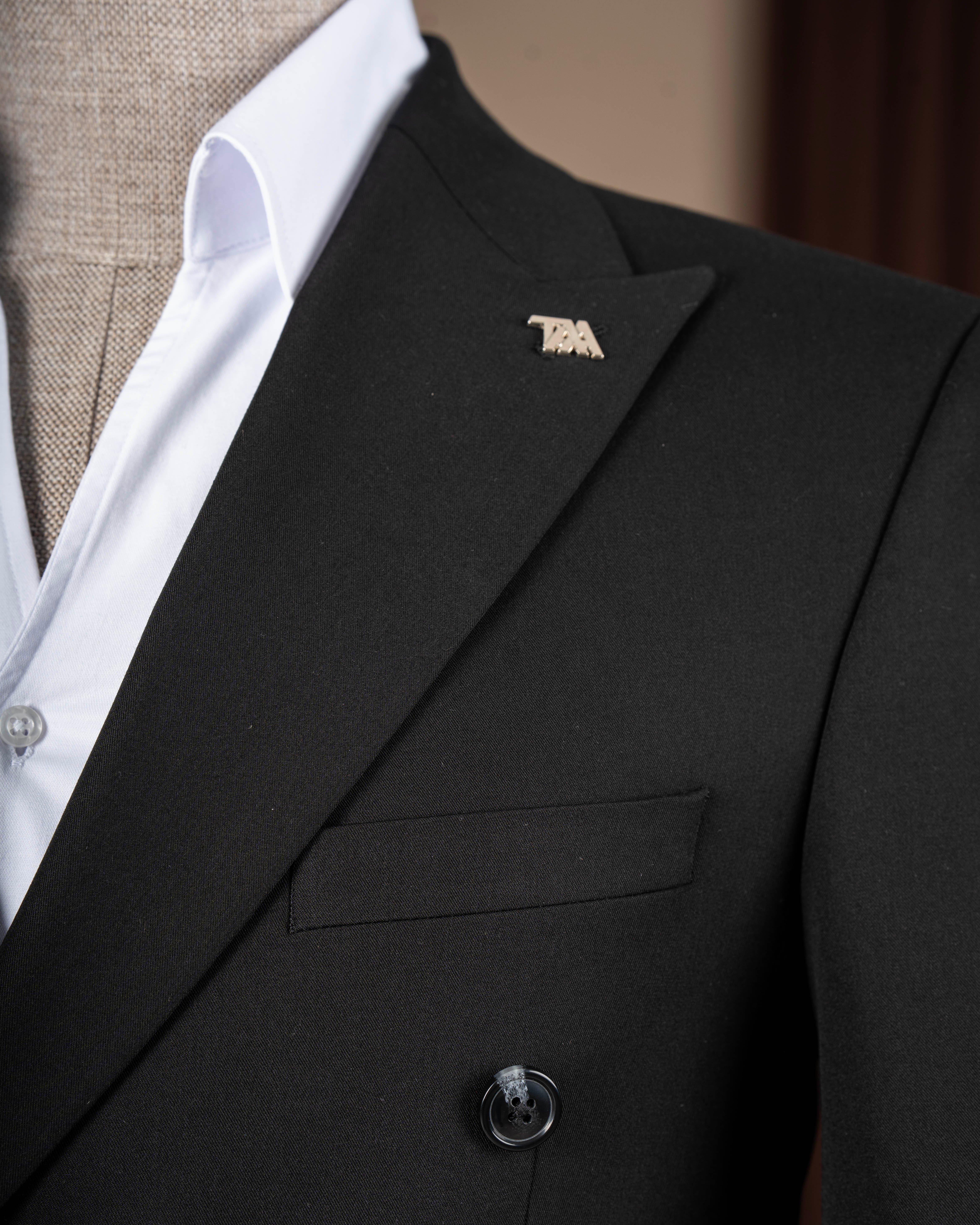 İtalyan stil slim fit erkek kruvaze ceket pantolon takım elbise siyah T20066-01