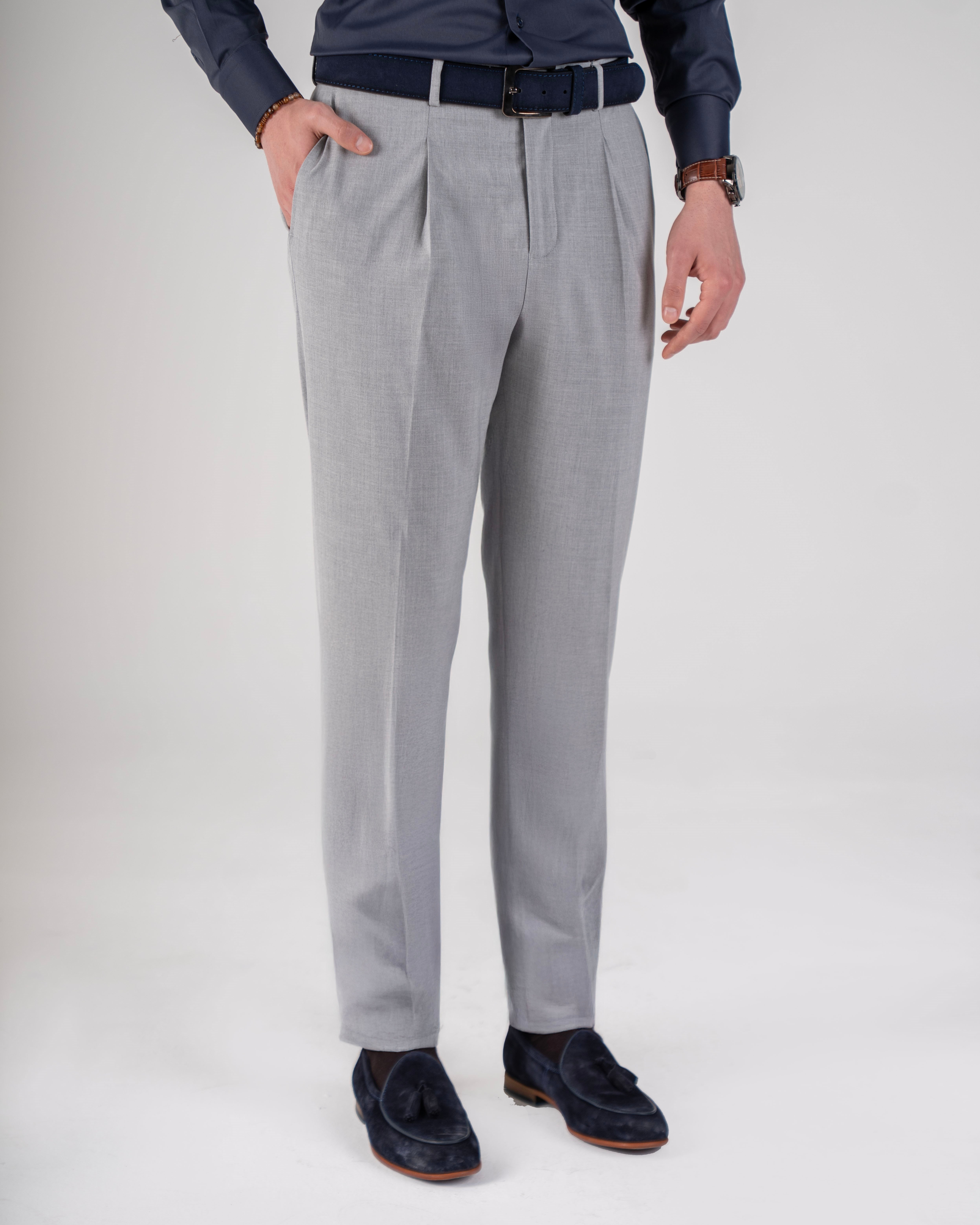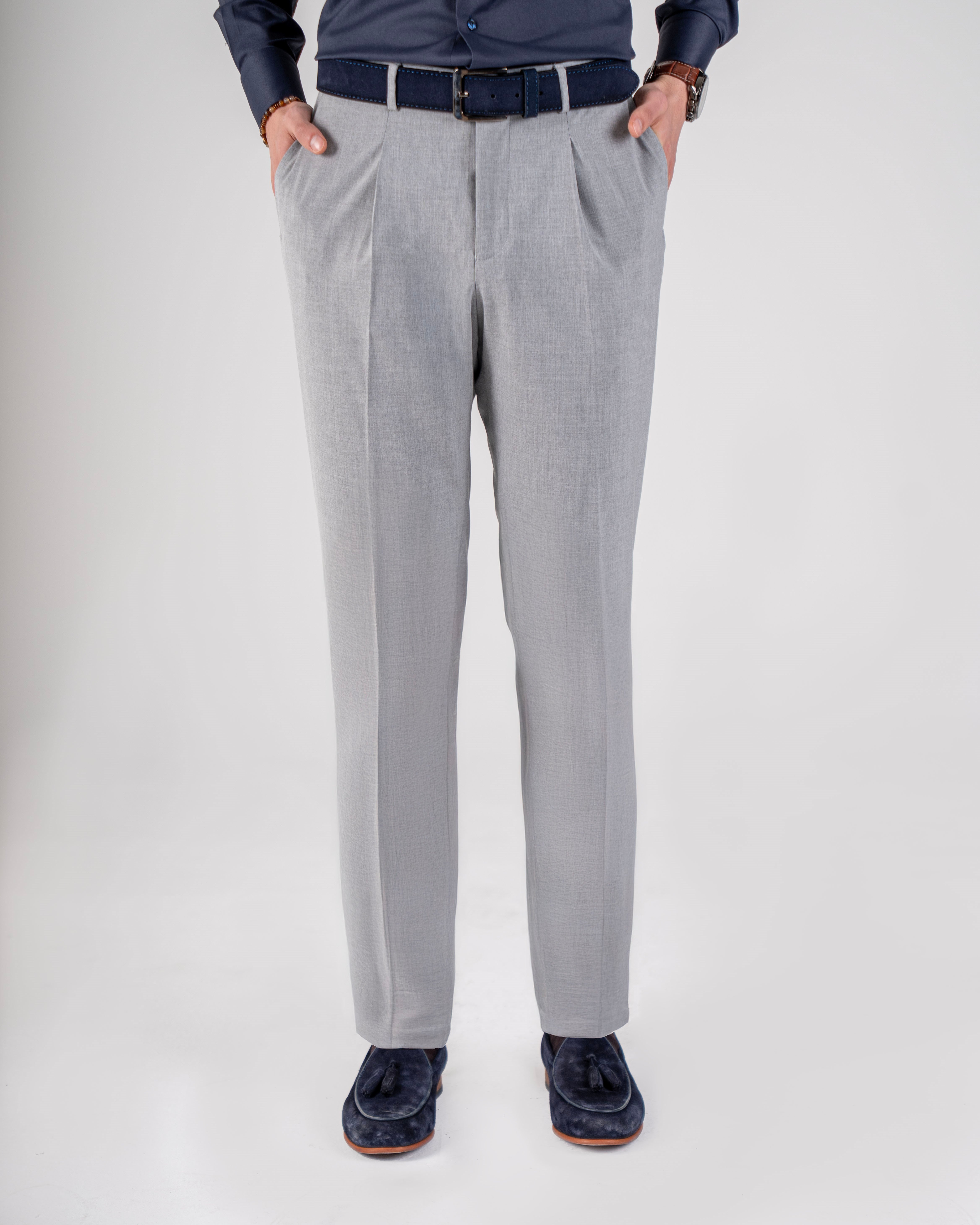 İtalyan stil slim fit erkek kumaş pantolon gri T20038-04
