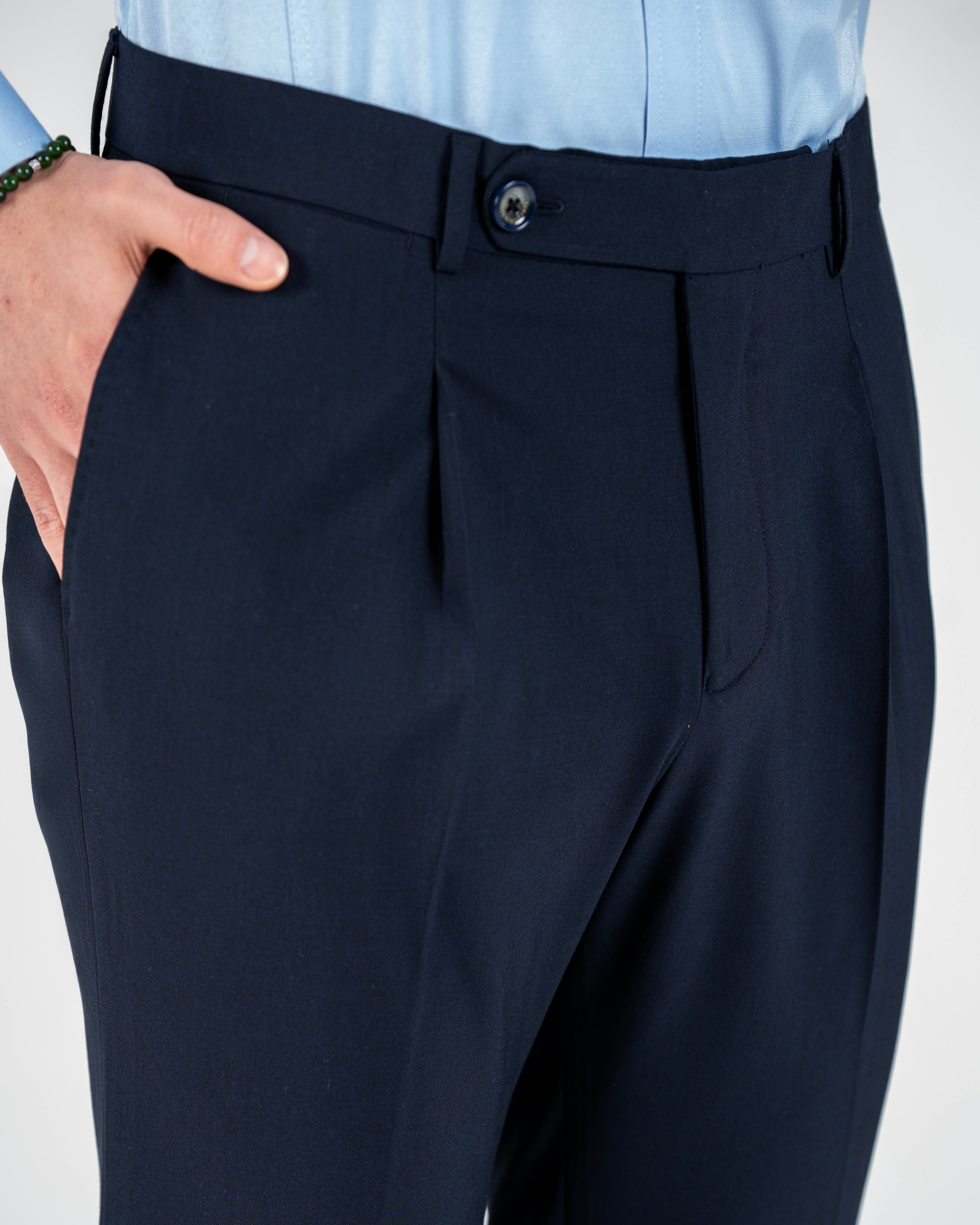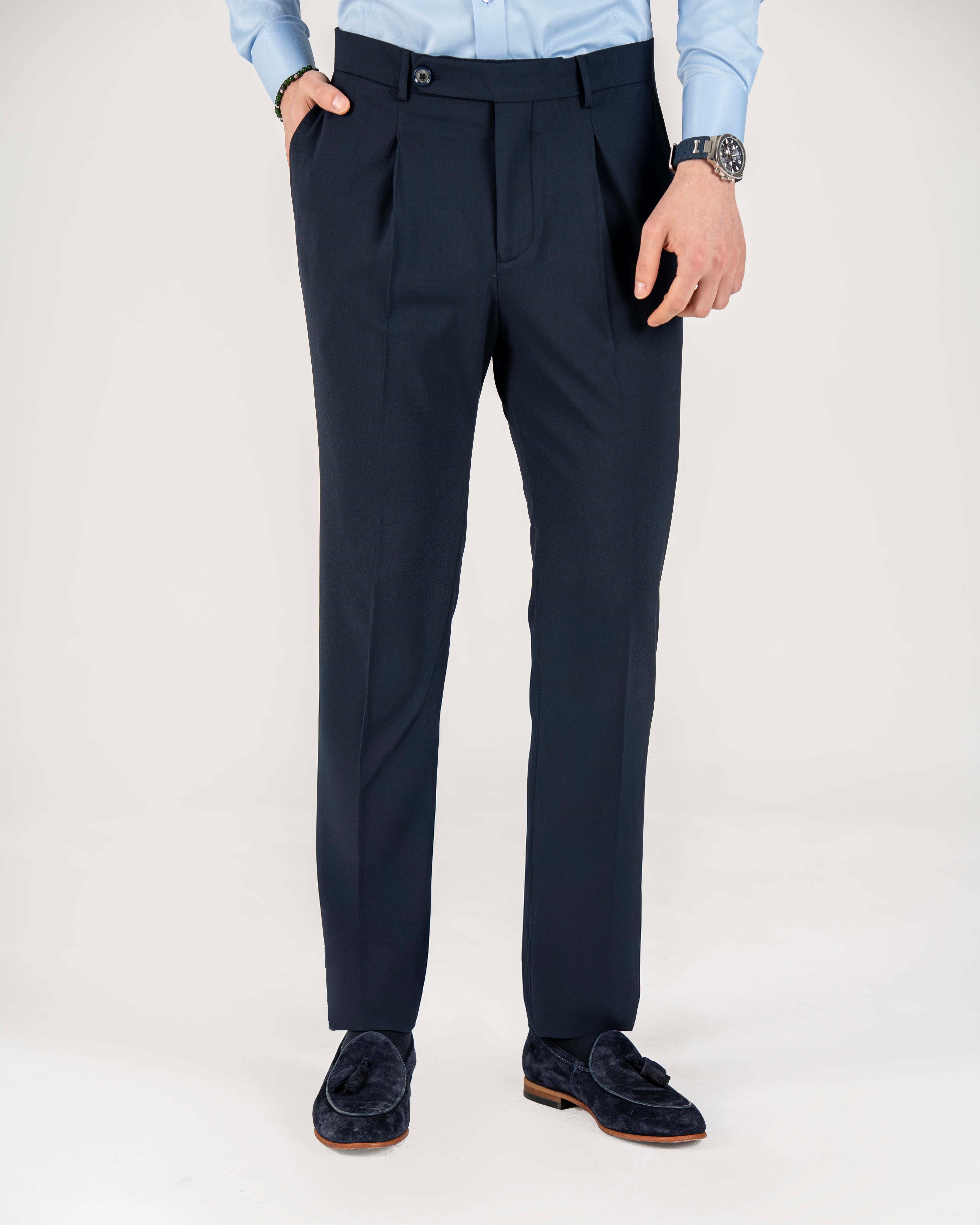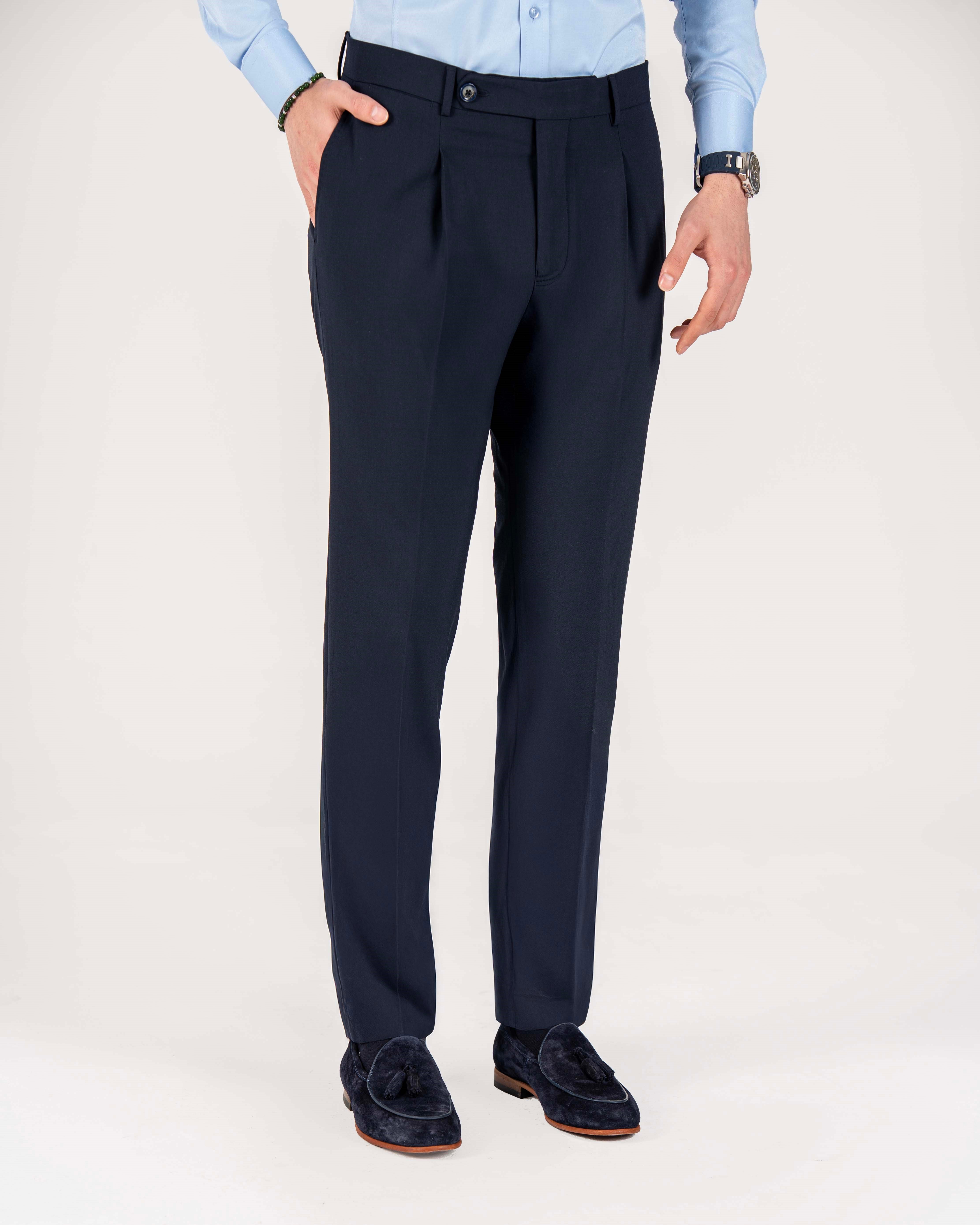 İtalyan stil slim fit erkek kumaş pantolon lacivert T20038-02