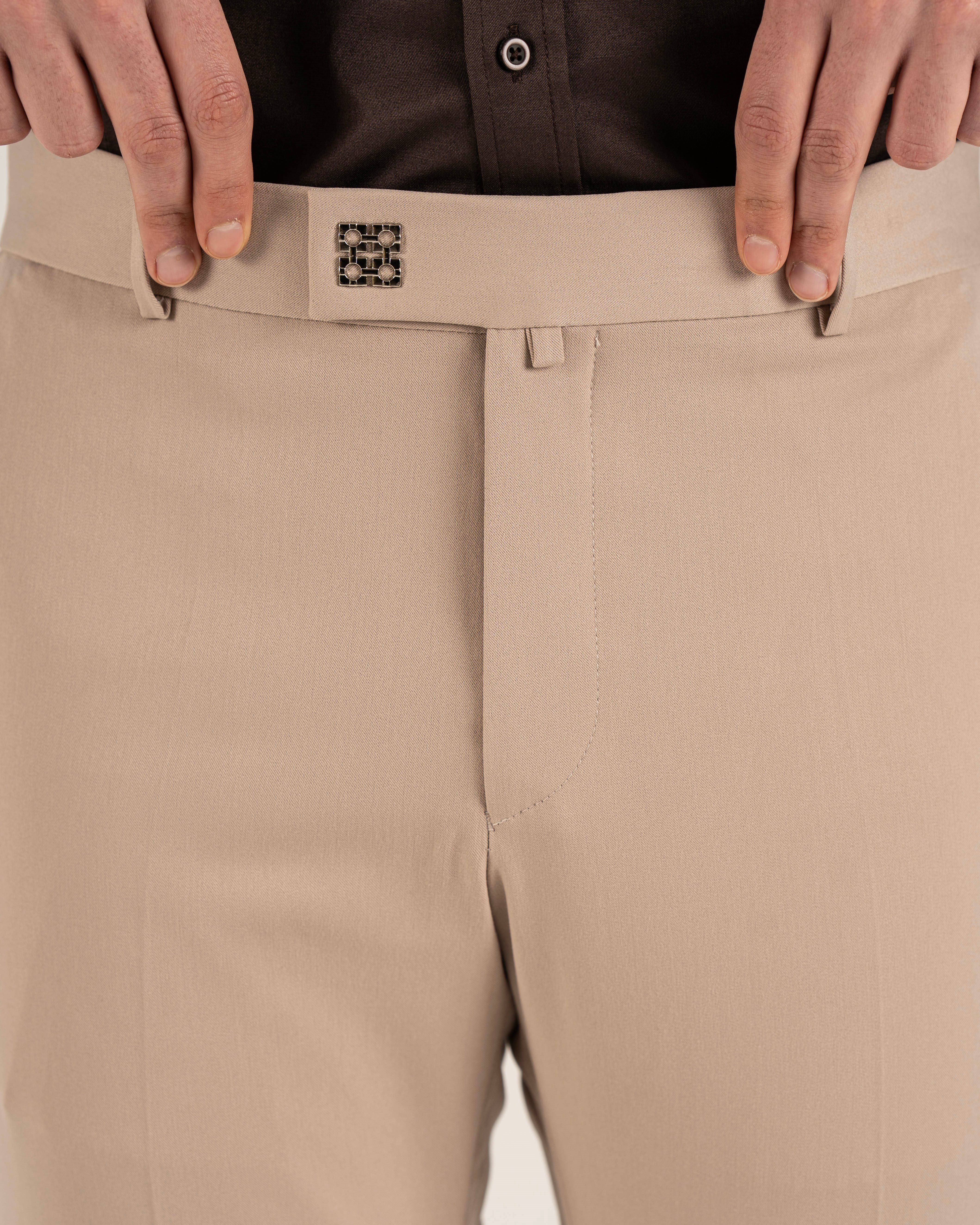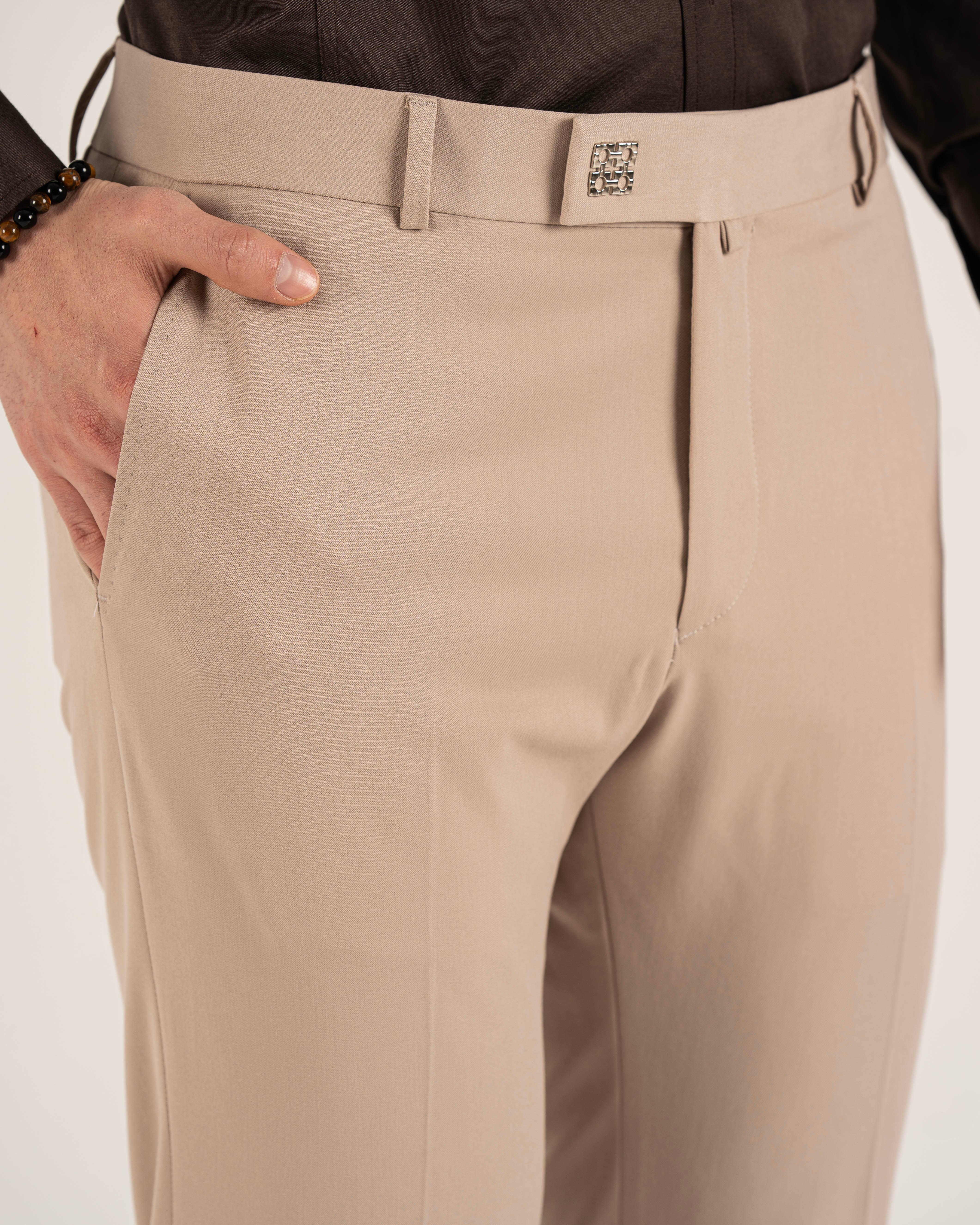 İtalyan stil slim fit erkek pantolon bej T14921