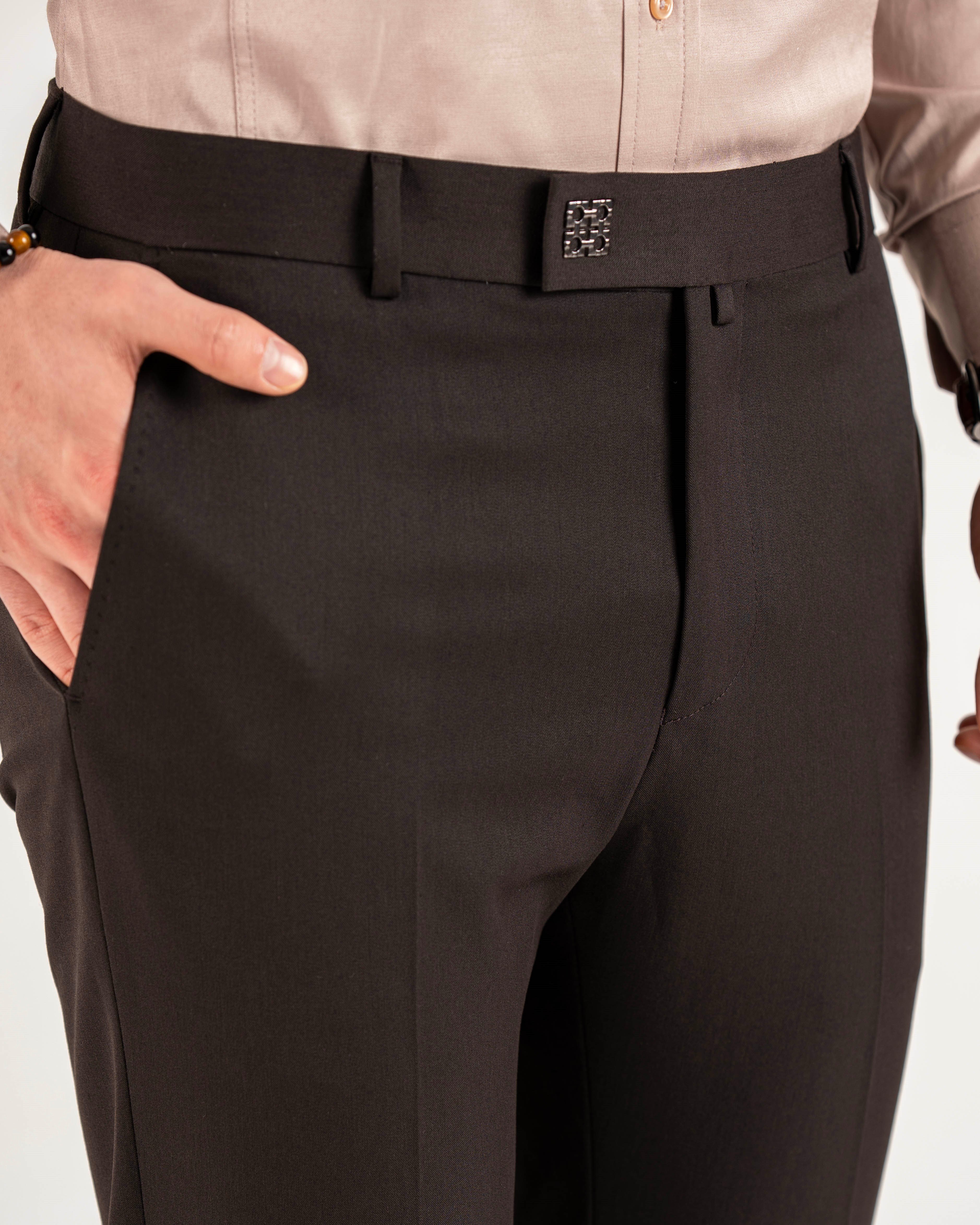 İtalyan stil slim fit erkek pantolon kahverengi T14922