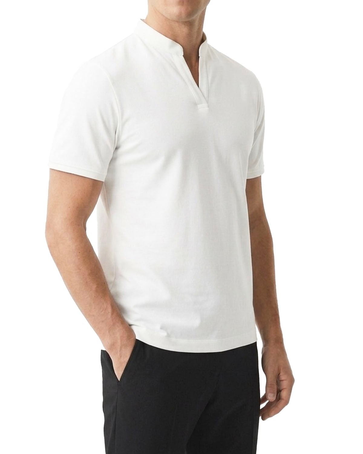 İtalyan stil slim fit erkek polo V yaka kısa kollu triko tişört beyaz T20045-07