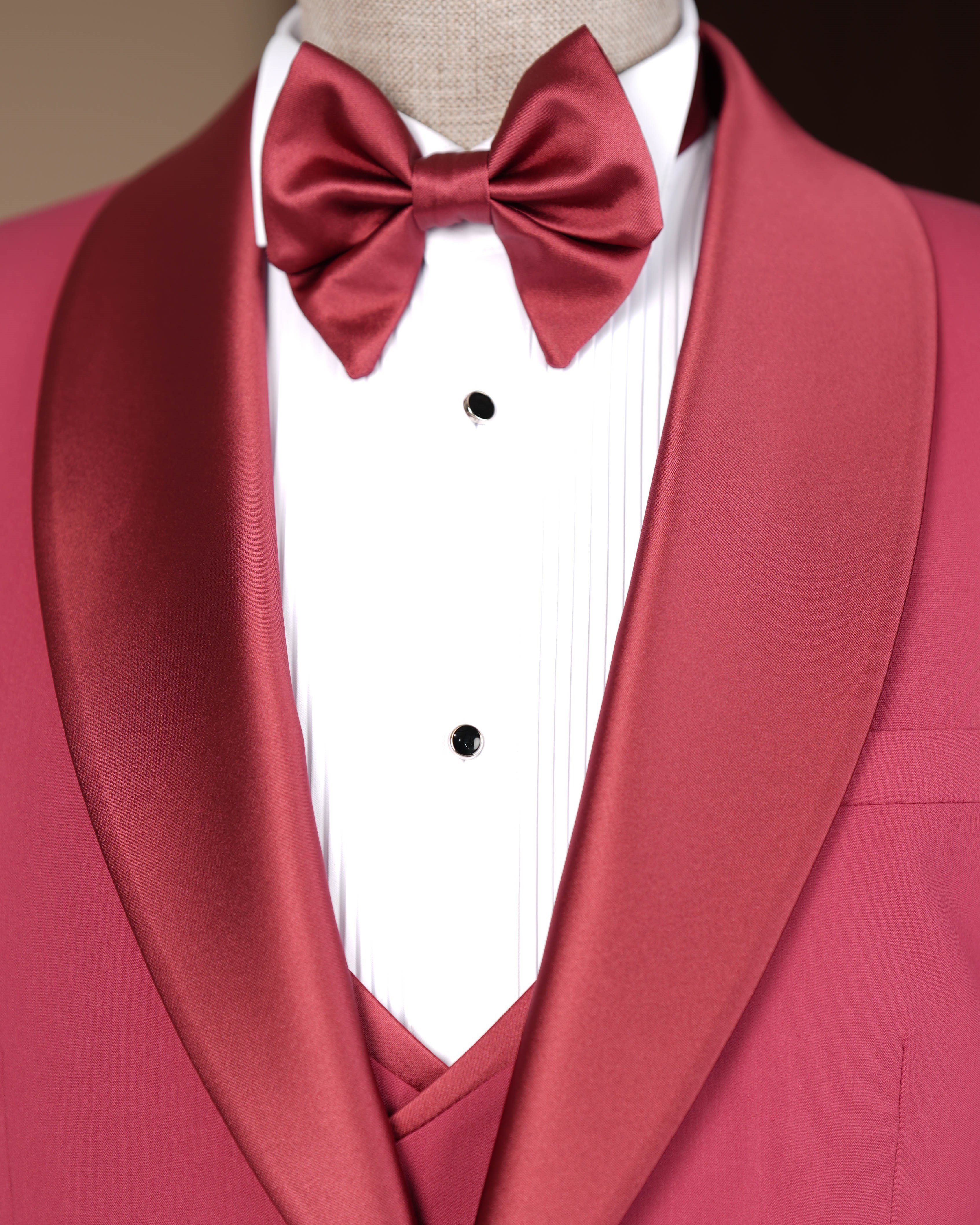 İtalyan stil slim fit erkek şal yaka ceket yelek pantolon damatlık set pembe T20067-20