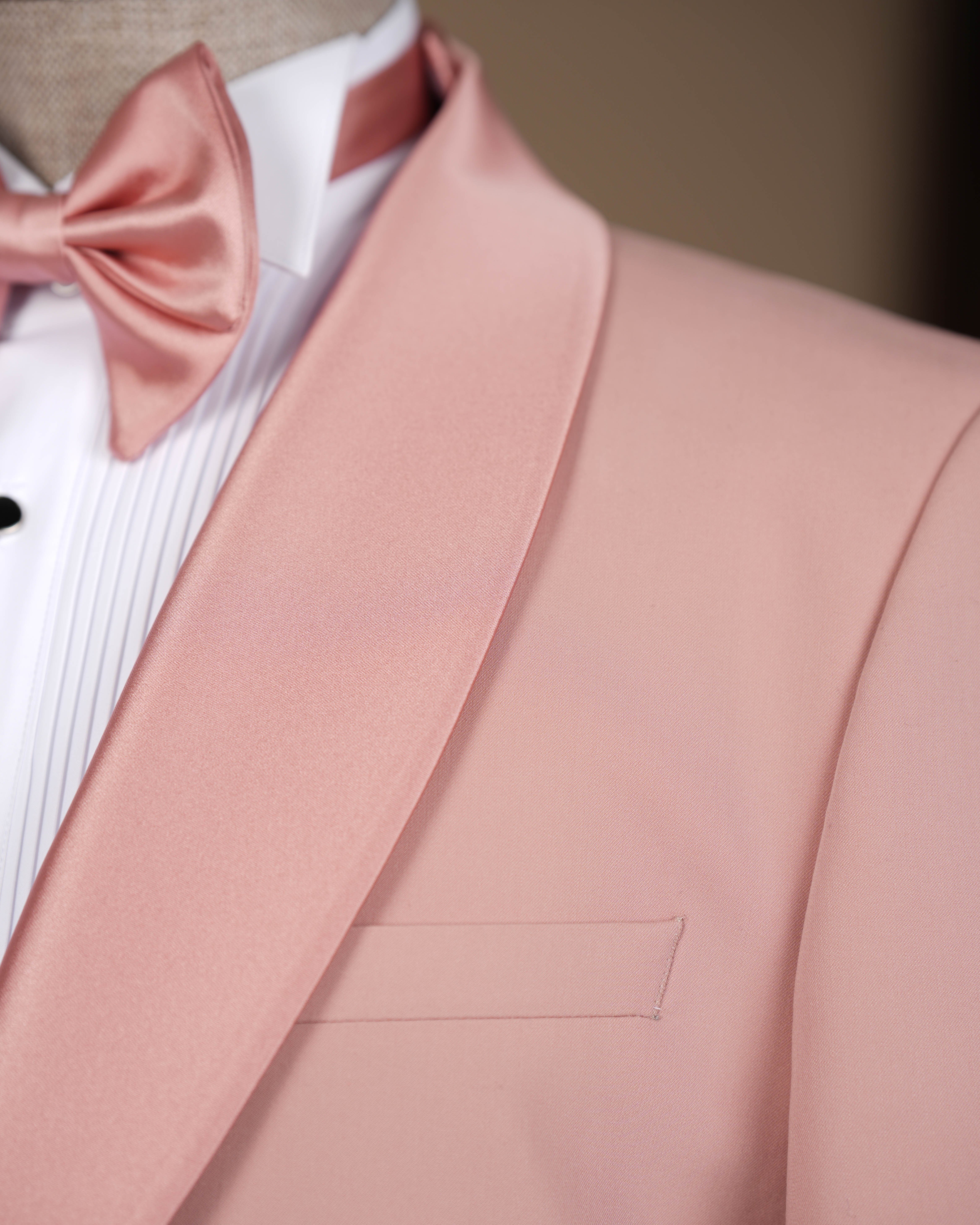 İtalyan stil slim fit erkek şal yaka ceket yelek pantolon damatlık set pudra T20067-21