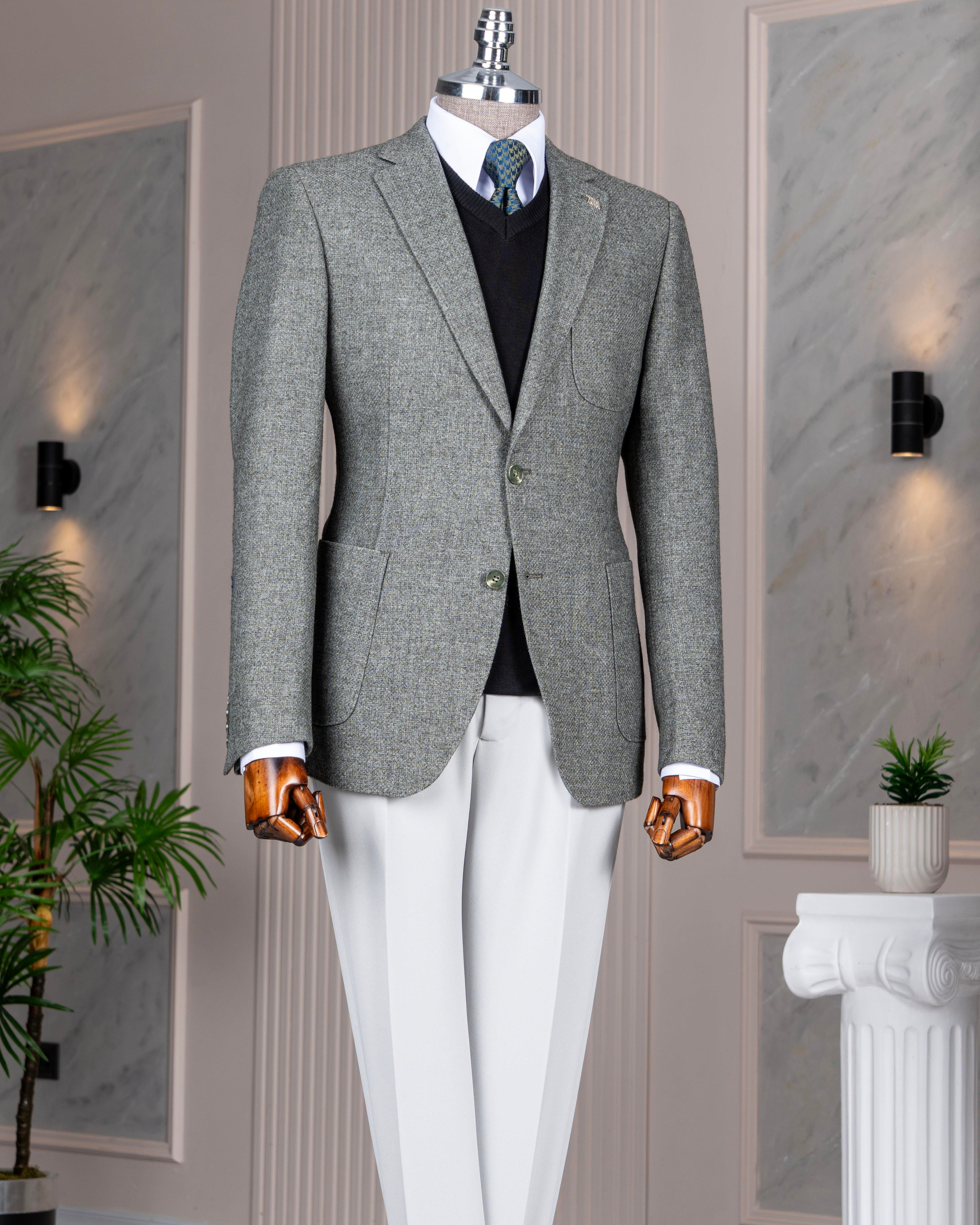 İtalyan stil slim fit mono yaka erkek tek ceket haki T14811