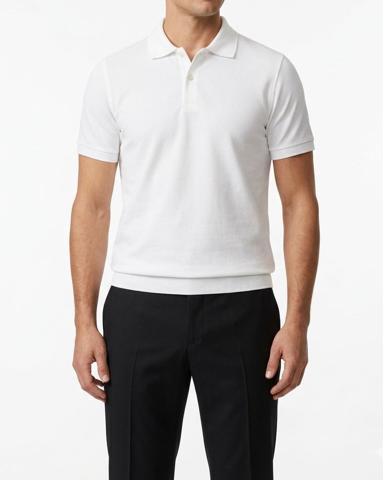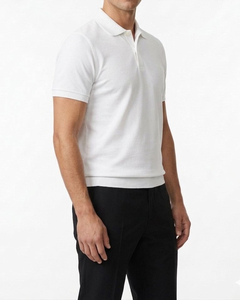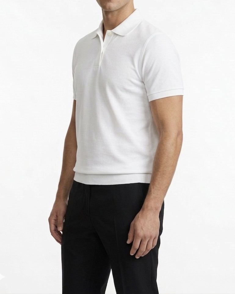 İtalyan stil slim fit polo yaka erkek tişört ekru T12676