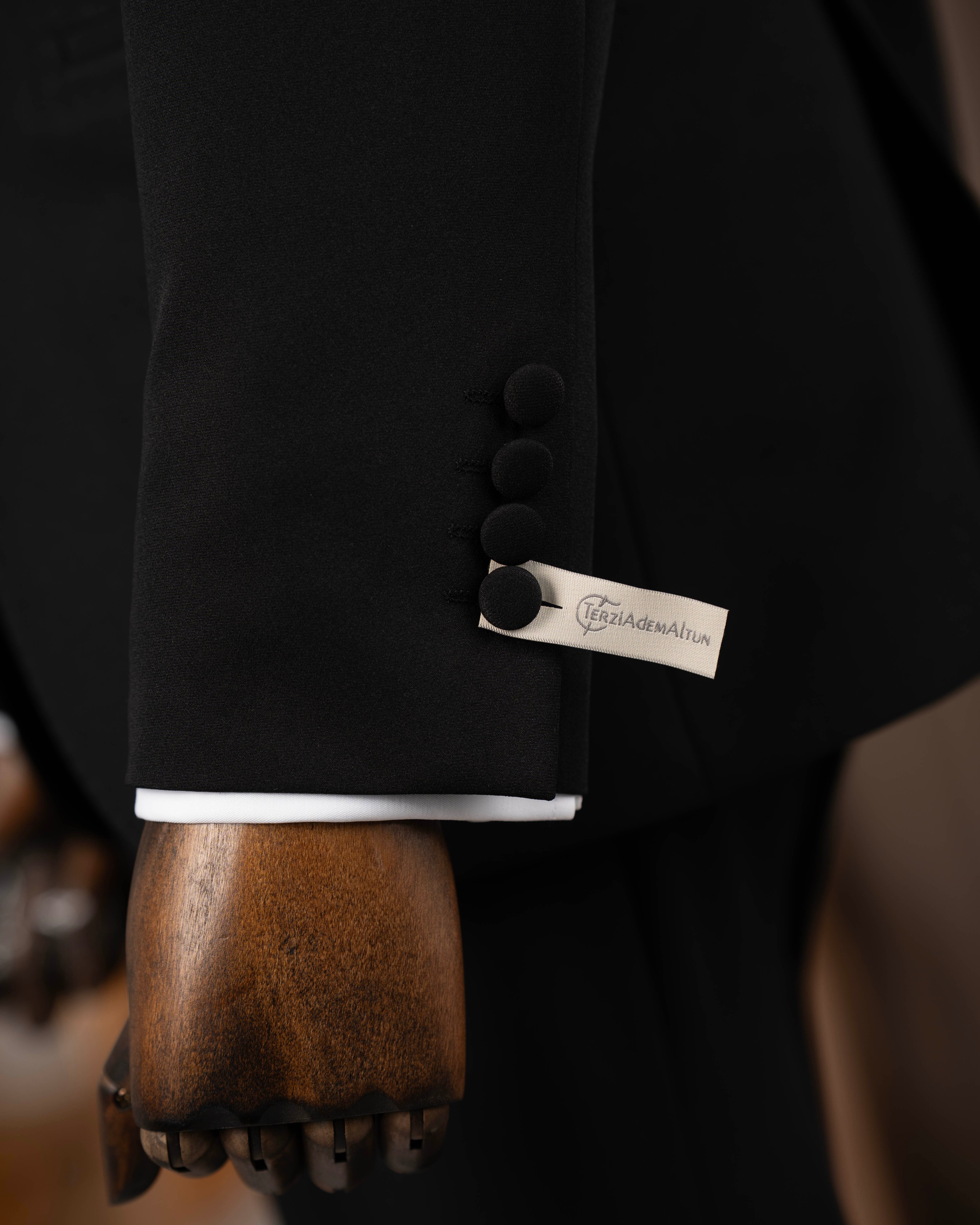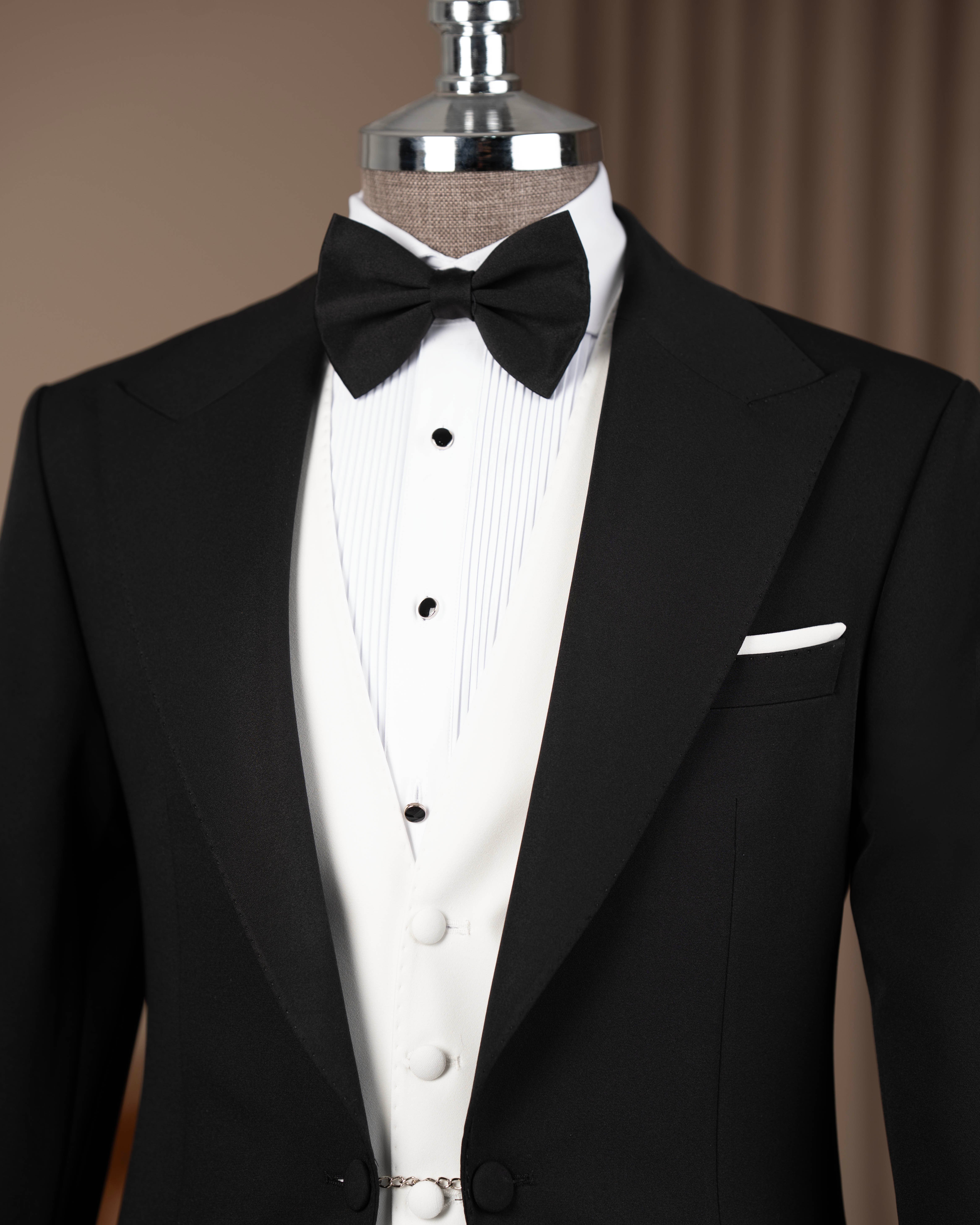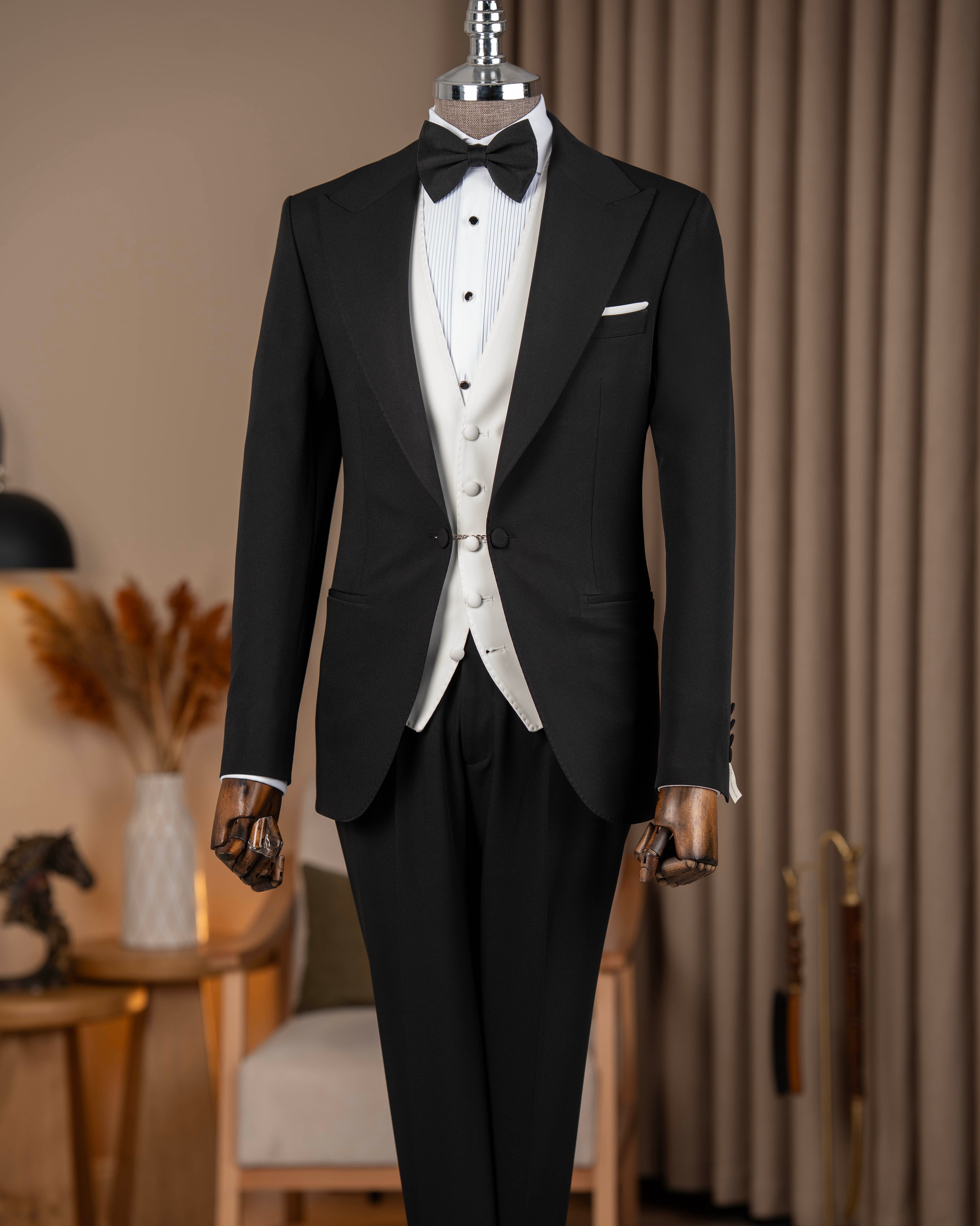 İtalyan stil slim fit sivri yaka ceket yelek pantolon damatlık set siyah T20027-01