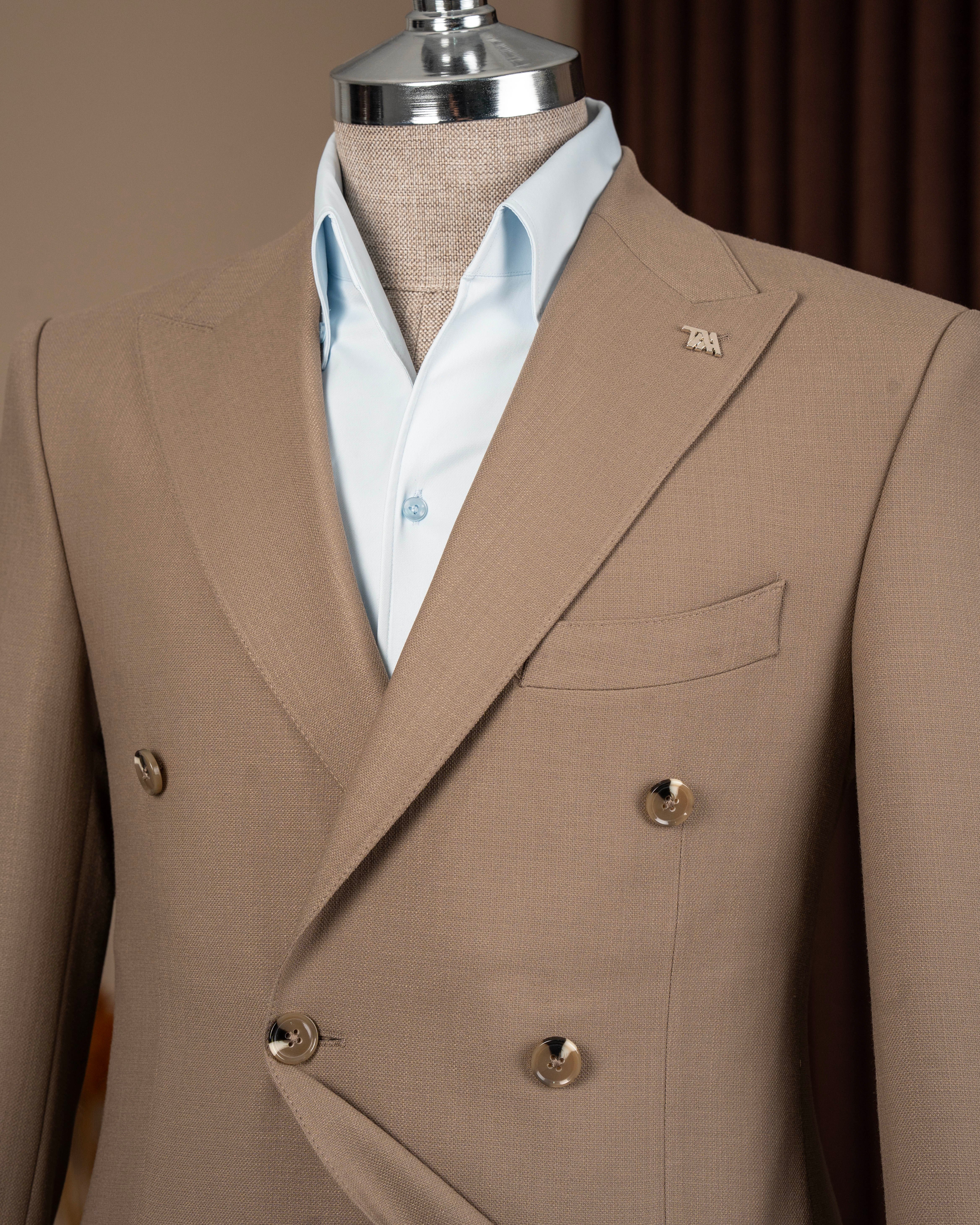 Slim fit erkek kruvaze sivri yaka ceket pantolon takım elbise haki T20097-06
