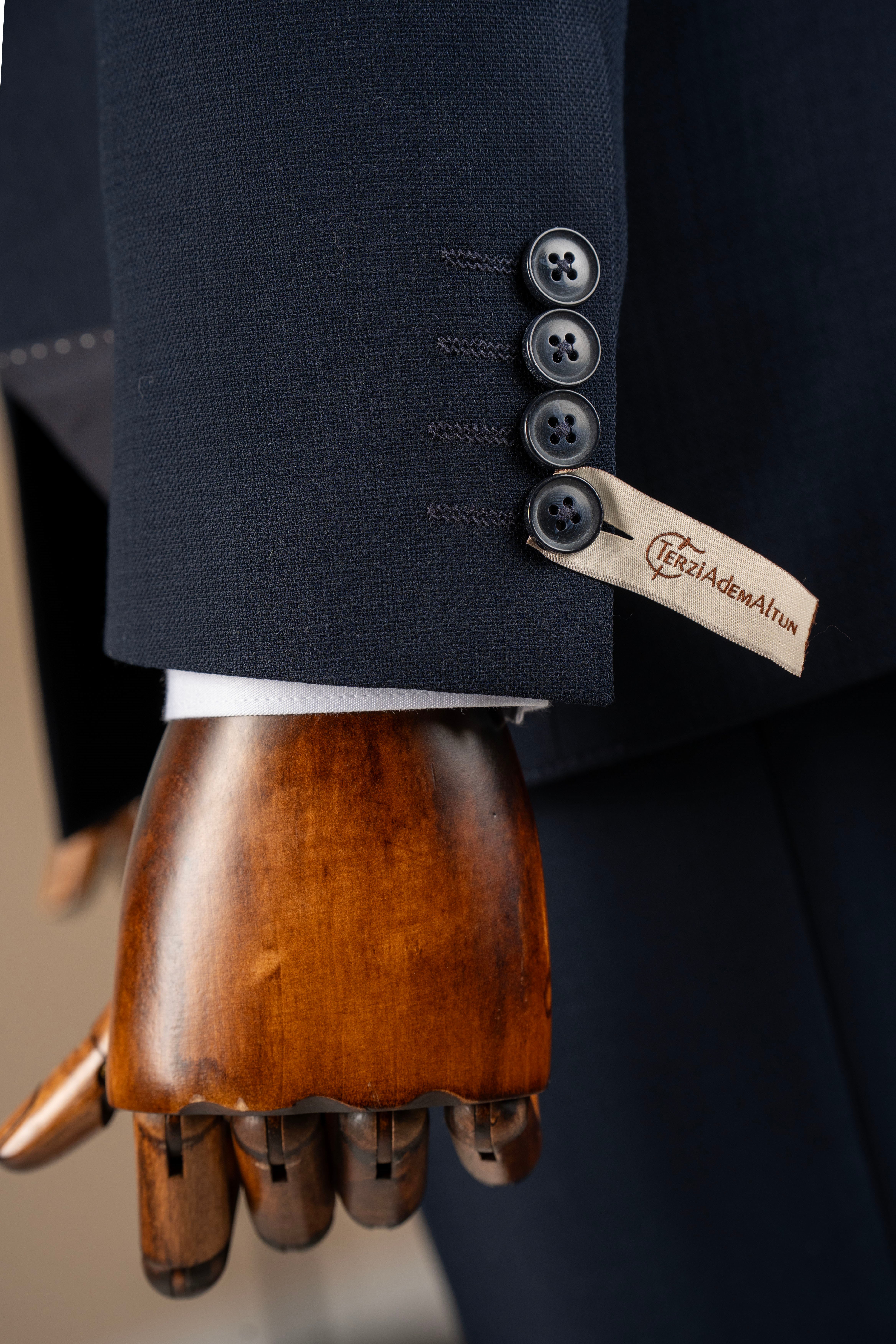 Slim fit erkek kruvaze sivri yaka ceket pantolon takım elbise lacivert T20097-02