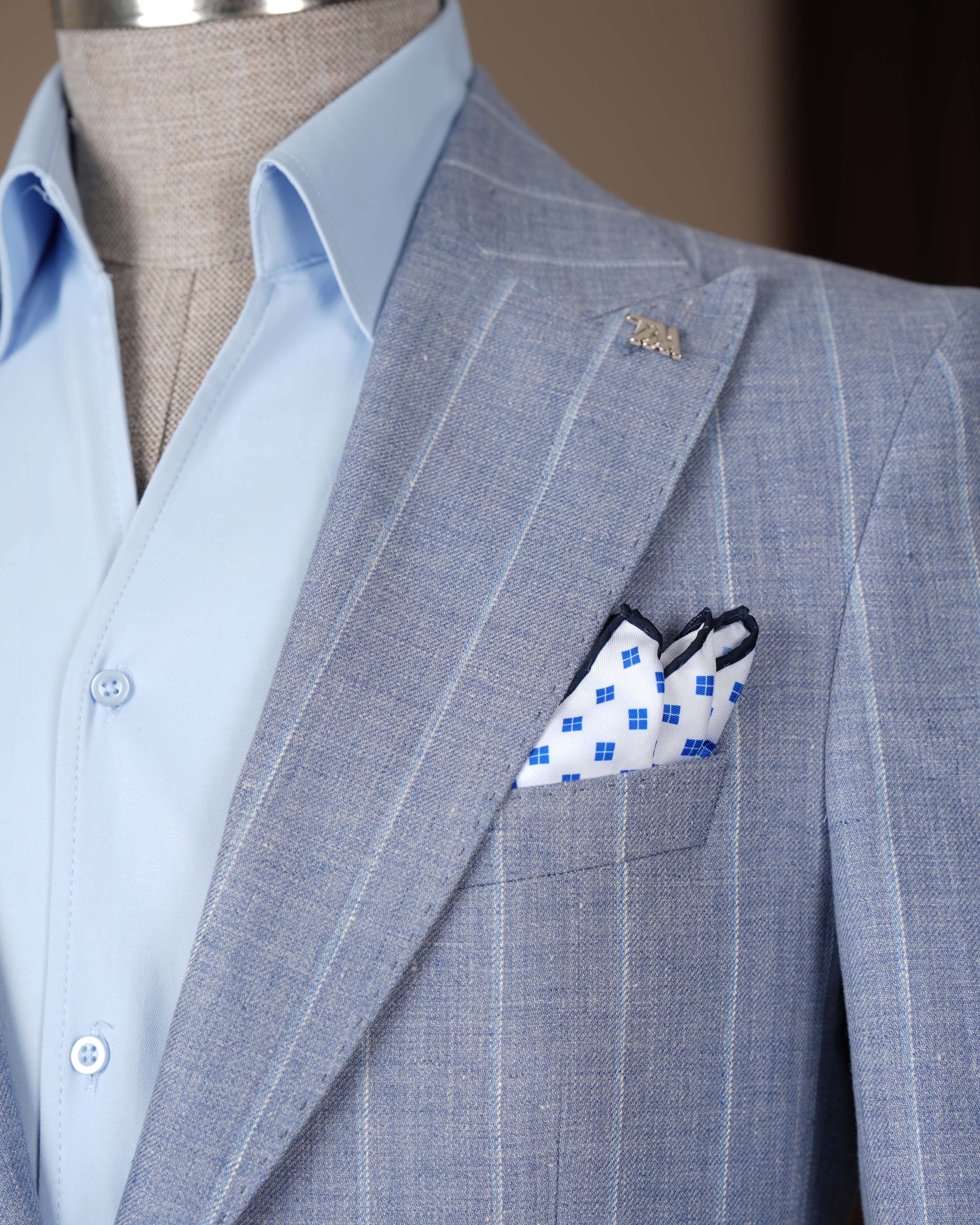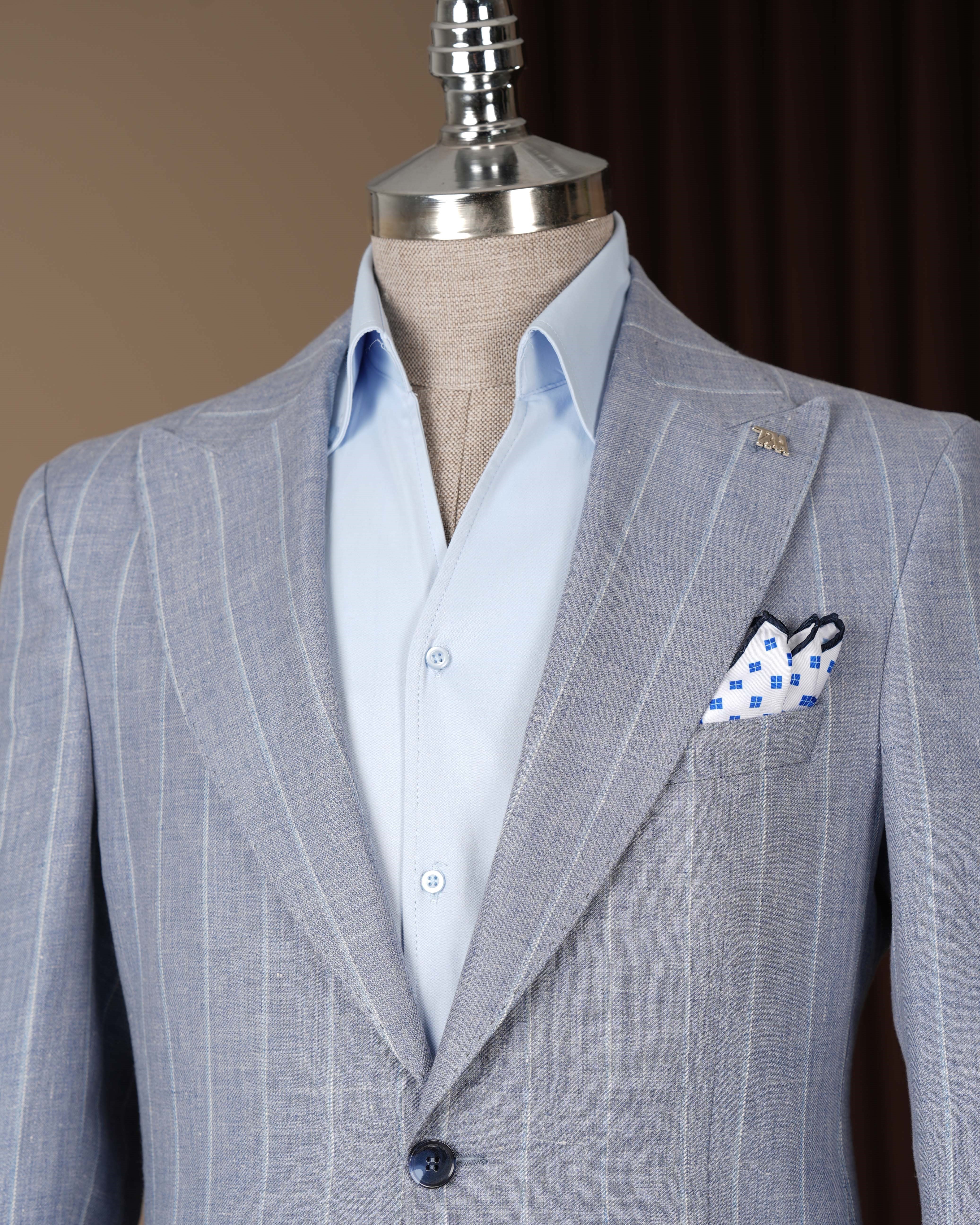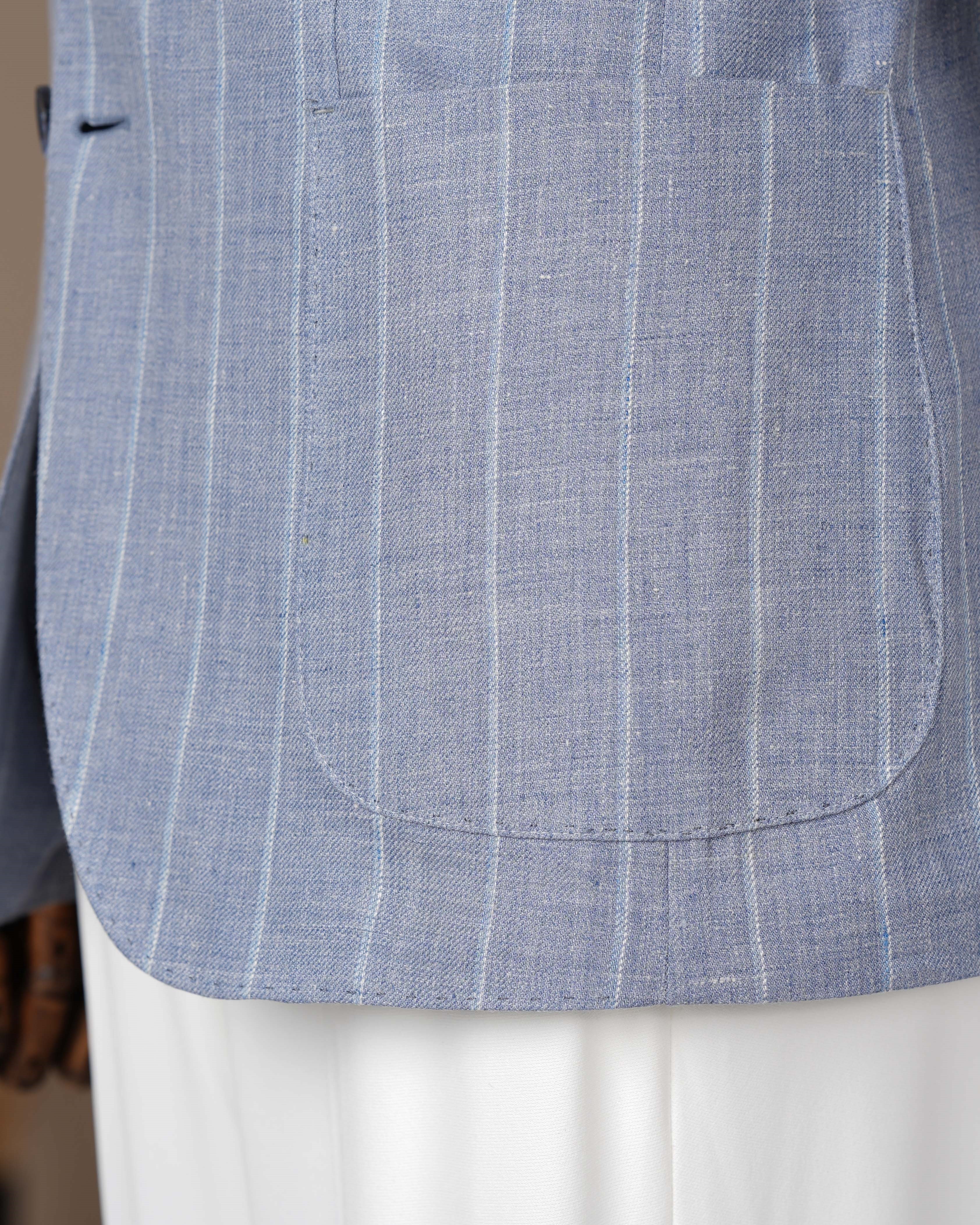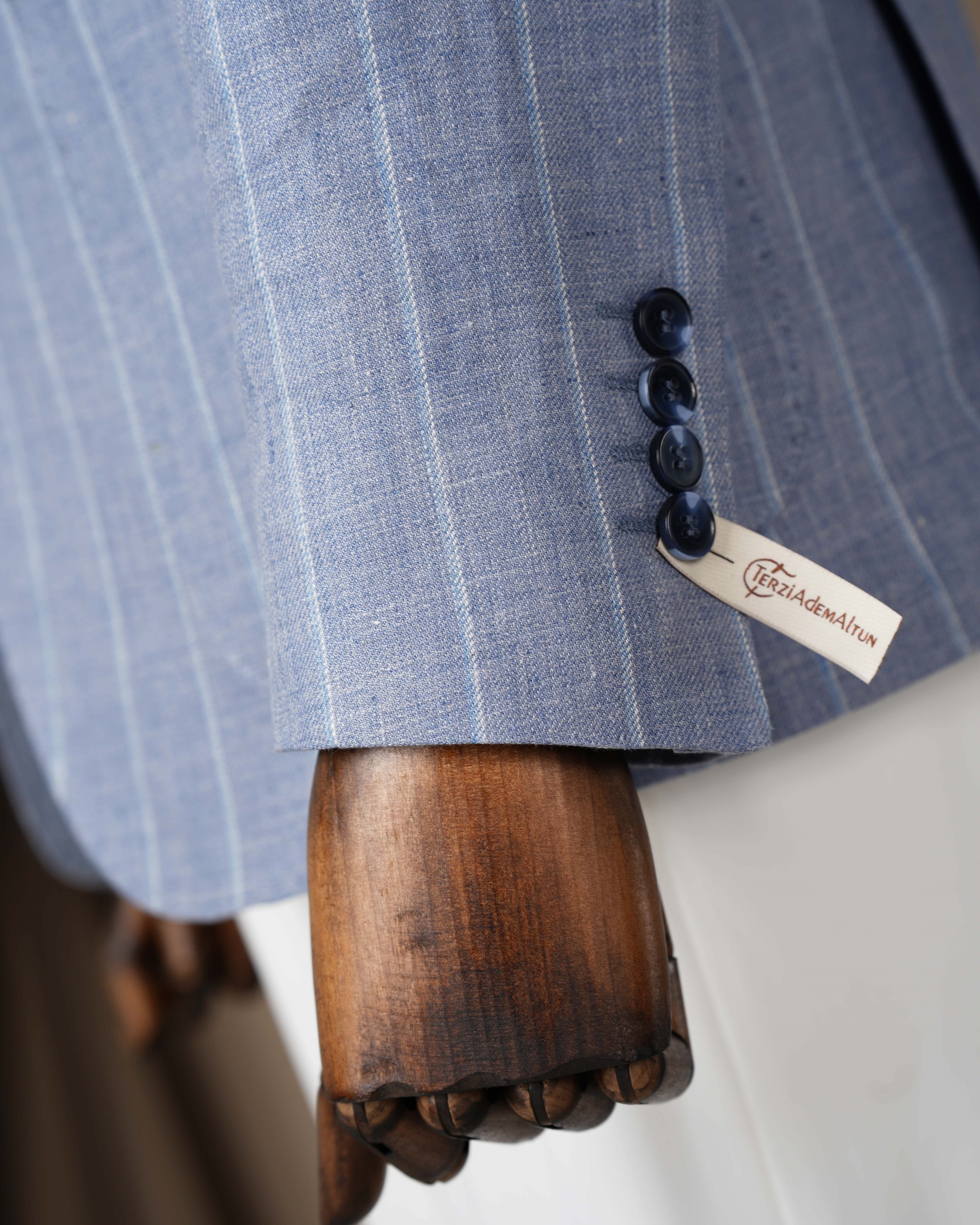 Slim fit torba cep sivri yaka keten ceket mavi T20104-19