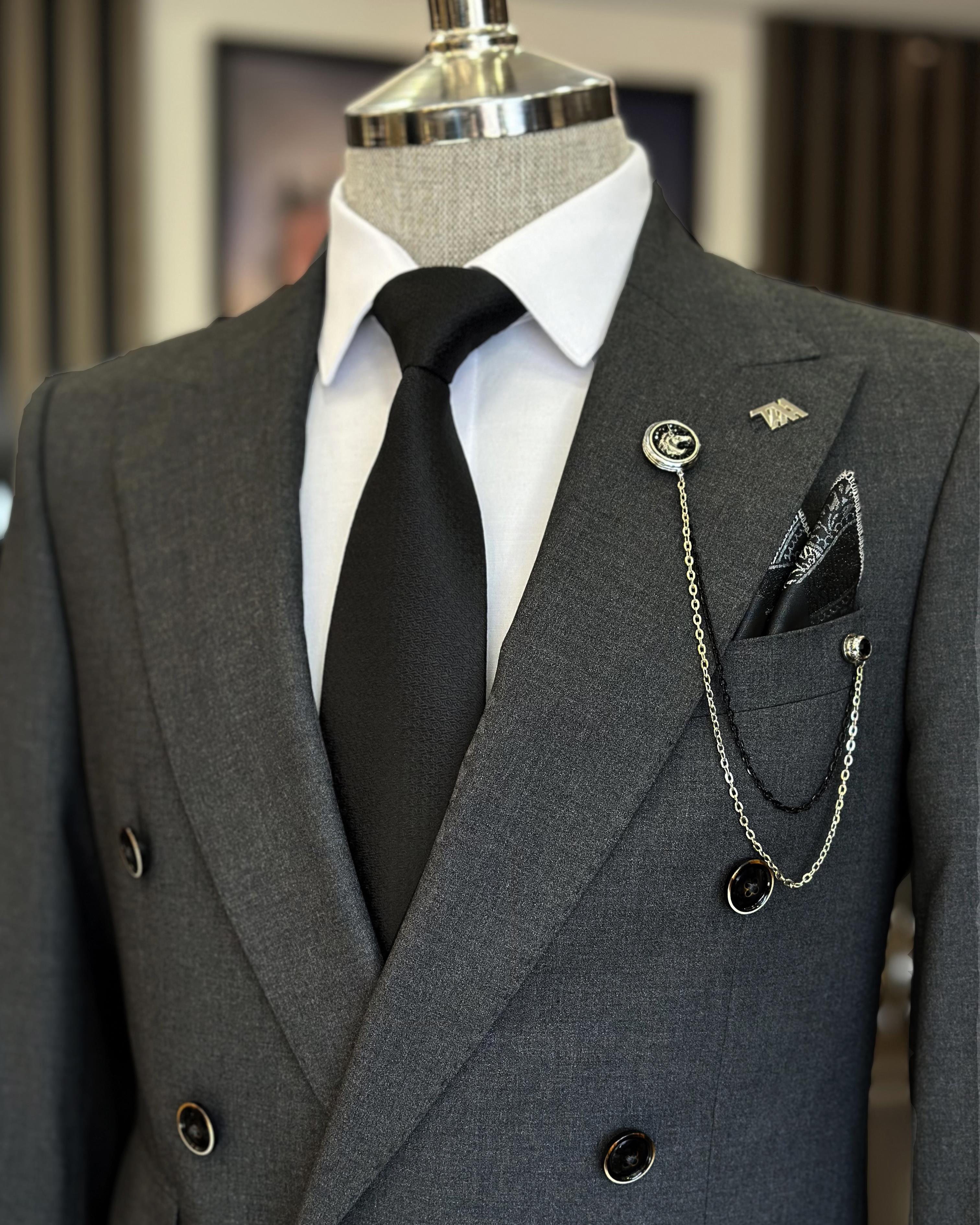 Italian style double breasted jacket trousers men's suit anthracite T11098