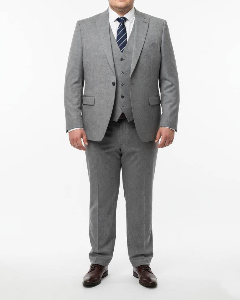 Italian style king size jacket vest trouser suit gray T12160