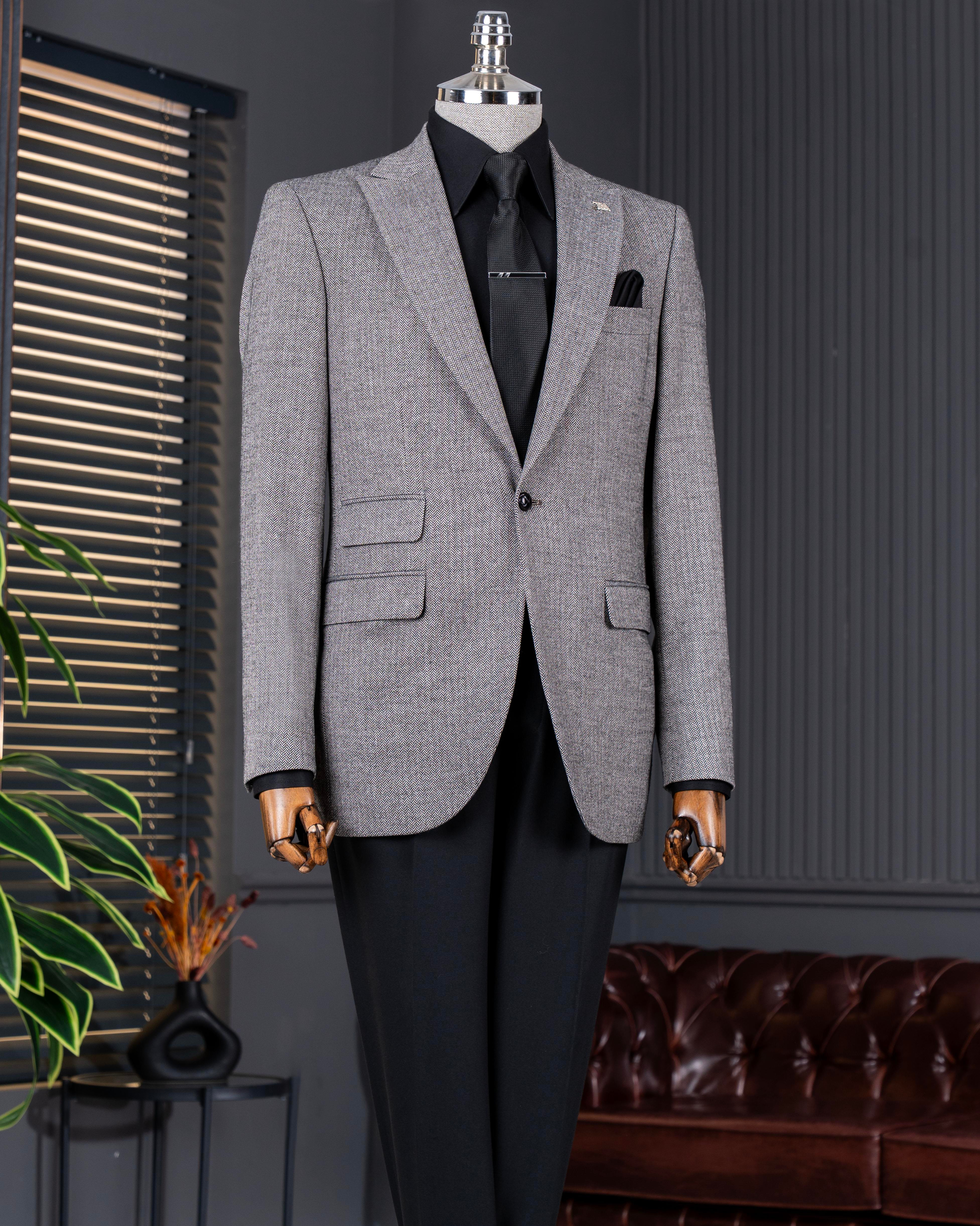 Italian style slim fit herringbone pattern double breasted men's jacket brown T13051