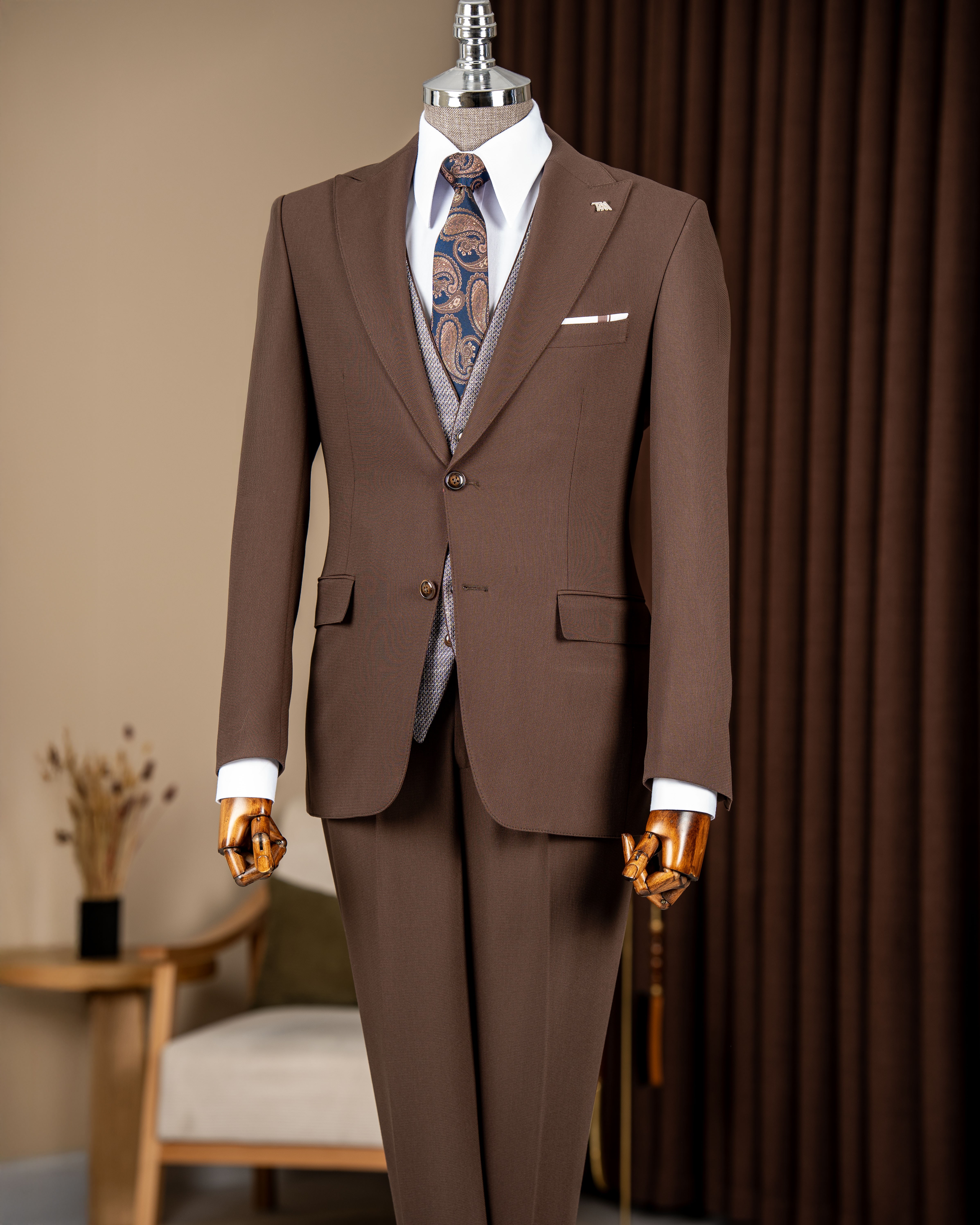 Ürün İçeriği: Ceket+Yelek+Pantolon Dahil Elbise kılıfından oluşmaktadır. Kalıp: Slim Fit Yıkama: Sadece Kuru Temizleme Kumal İçeriği: %69 Polyester-%24 Viscon%7 Elastan