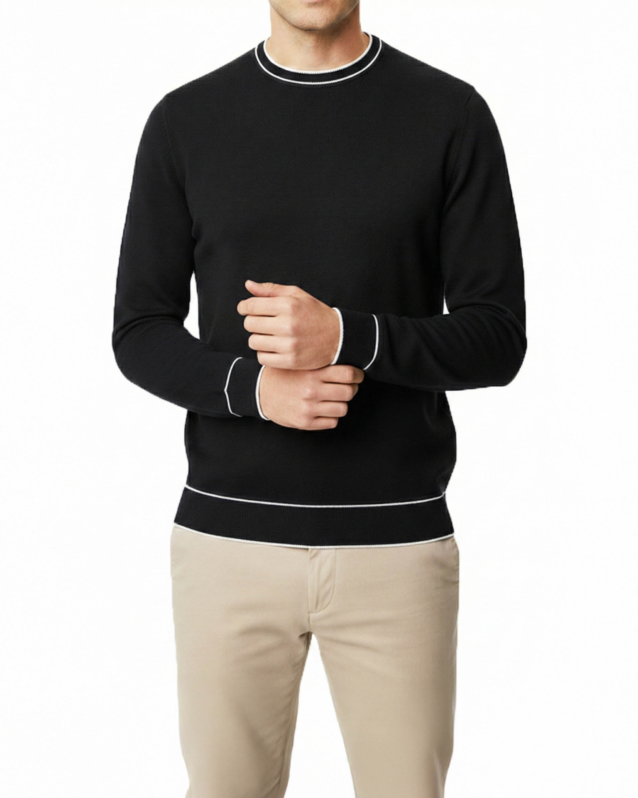 İtalyan stil slim fit bisiklet yaka triko kazak siyah T14501