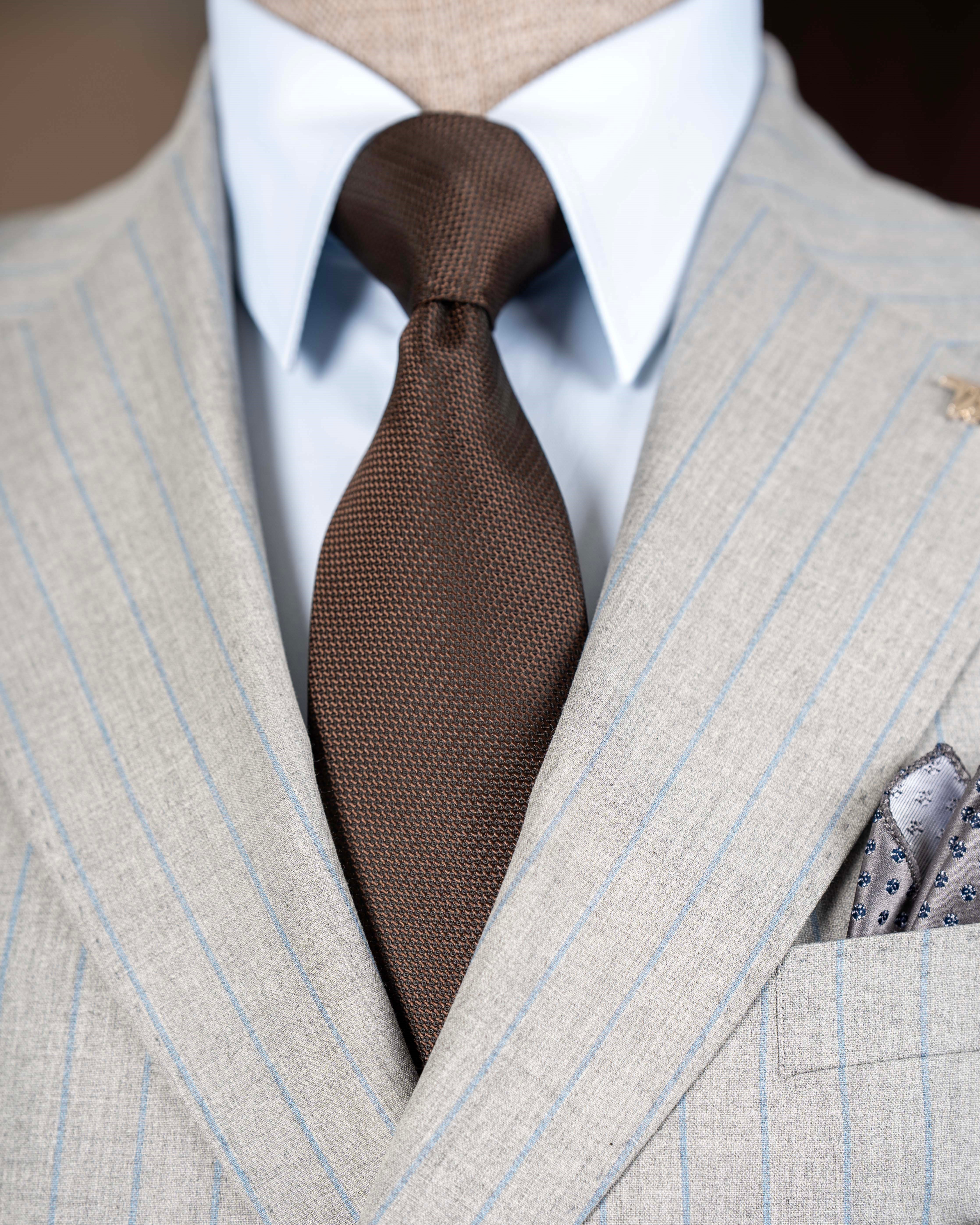 Slim fit erkek sivri yaka çizgili kruvaze ceket pantolon takım elbise vizon T20142-26